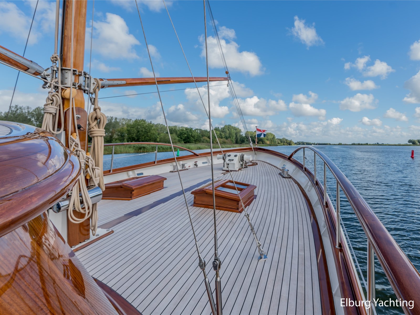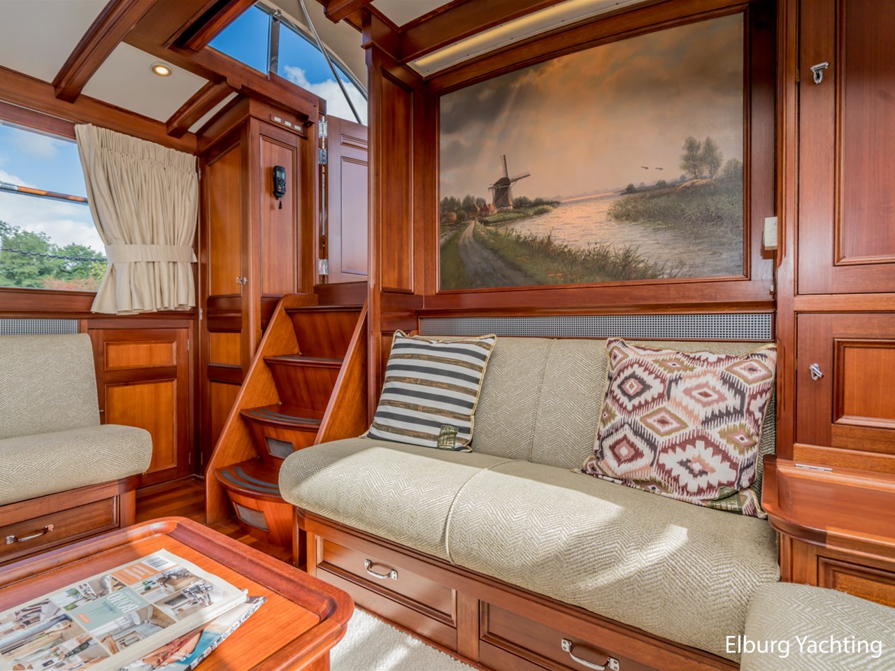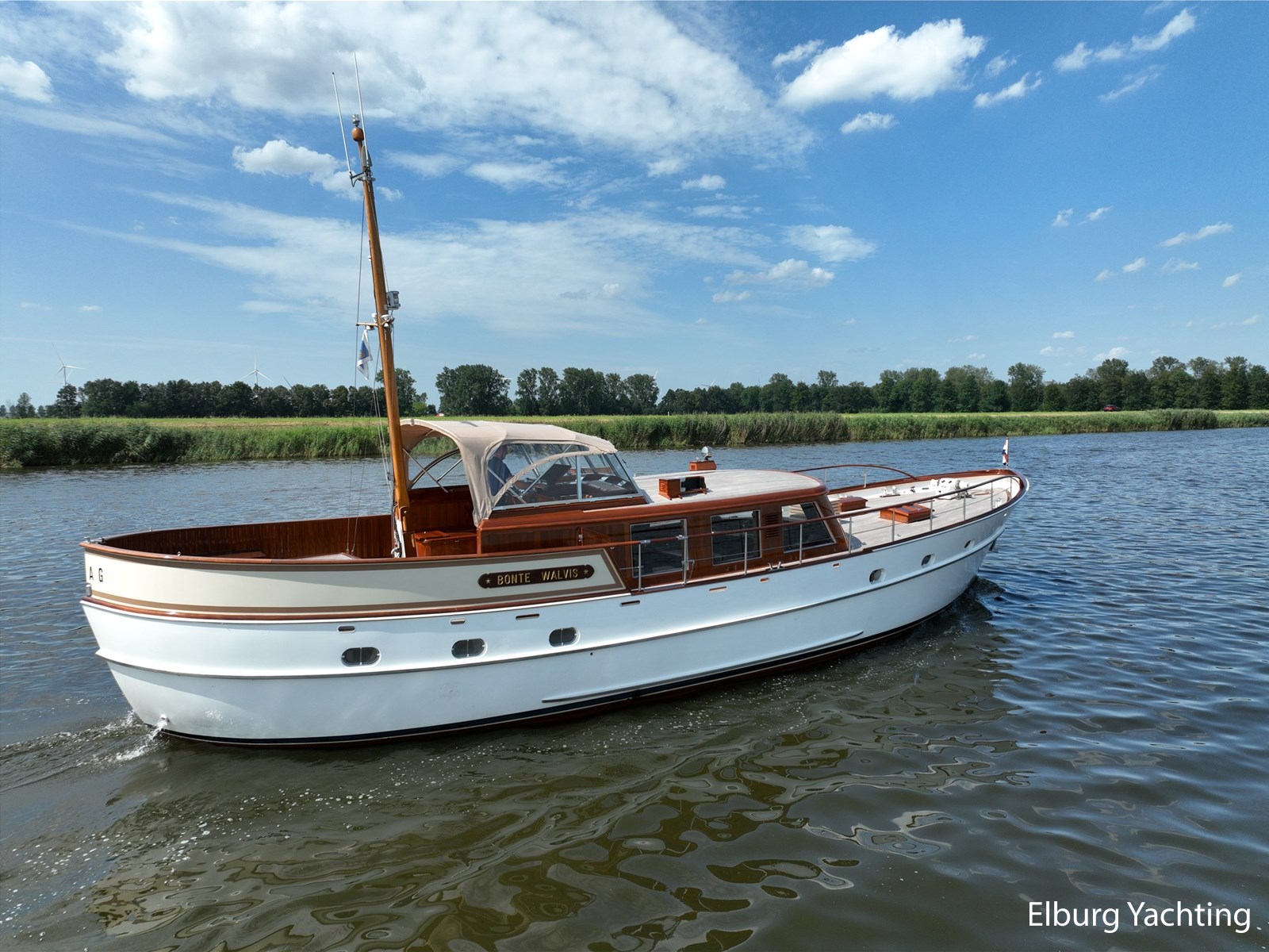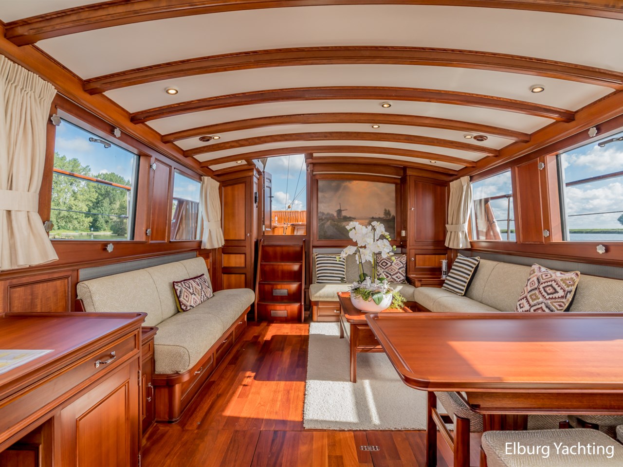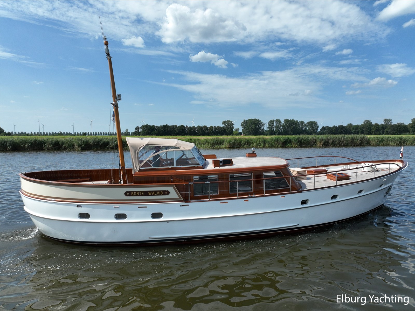 The Lunstroo 56 is a unique and one-of-a-kind piece of Dutch Craftsmanship, and a ture treasure to the long tradition of yachtbuilding that the Netherlands are known for. The vessel was launched in 1974, but has had a complete refit in 2015 at the Nicolaas Witsen yard, where no expense has been spared. The vessel has 2 x 135 hp new Perkins engines, which are known for their low revs and low noise level. During the refit, the following was carried out: New solid teak deck (22 mm), new teak cabin roof (15 mm), All varnished teak elements of the cabinroof superstructure are newly manufactured, chromed portholes, newly lined window frames, Entire electrical installation has been renewed incl. pumps and other equipment, new navigation equipment, new propeller shafts, propeller shaft bearings, thrust bearings and propellers. All tanks have been opened, cleaned and inspected. (Both diesel, water and waste water tanks.) Piping is measured by wall thickness. Hull newly painted in Awl Grip. All clear coat with impregnating resin and Double UV Coating from Dubbelcoat Van de IJssel. (with the exception of mast and boom), Morse engine control converted to electronic control, Kabola CV with hot water supply installed, new upholstery, new mattresses. The Lunstroo 56 has a lot of living space in the saloon and on the aft deck. It is a unique motor yacht with high-quality finish with modern comfort and new technology, suitable for a longer stay. stainless steel railing, stainless steel edge, spacious seating in the saloon, 7 berths, chrome windshield, rear entrance, 2 x escape hatch in the front, Miele washing machine, headroom approx. 2 meters, rear cabin suitable for crew cabin (including entrance engine room), well-insulated engine room. Stereo set BOSE Indoor and Outdoor (2015), Lowe TV + Lift (2015), CVO certificied, bilge alarm available in 3 zones. It's current owner has stored the front mast and added a winch for easy lowering of the back mast. In one of the front cabins one of the bunk beds was removed to create more space. Document description of the refit available on request. Clearance height with mast up approx. 8,40m and with folded mast and cockpit windows approx. 2,90m. Please Watch the Roundbilge Lunstroo 56 (Total Refit 2015) on YouTube: https://youtu.be/NfP3khQ4EaA For questions and / or to make an appointment, you are welcome at Elburg Yachting 7 days a week.