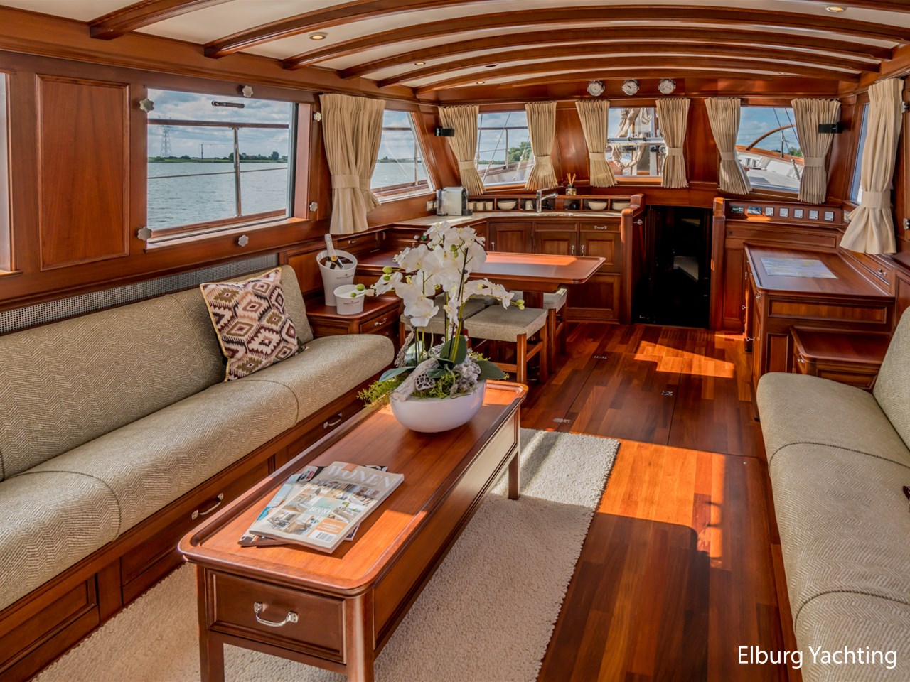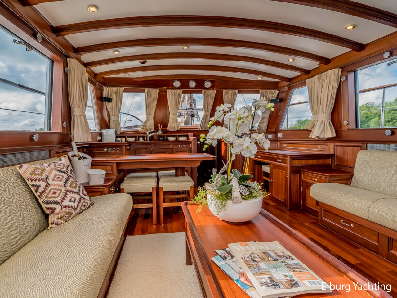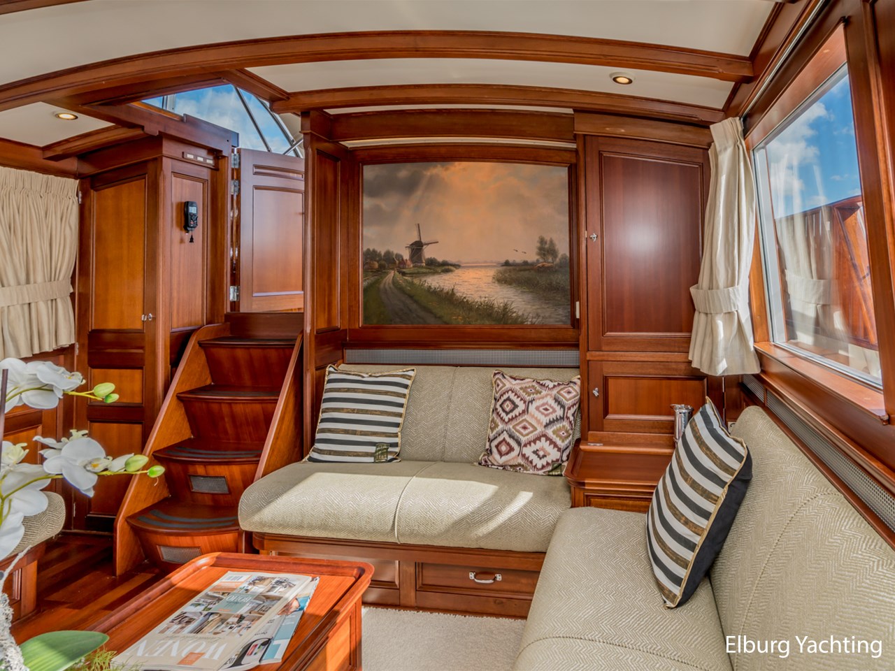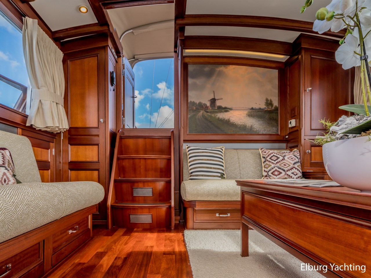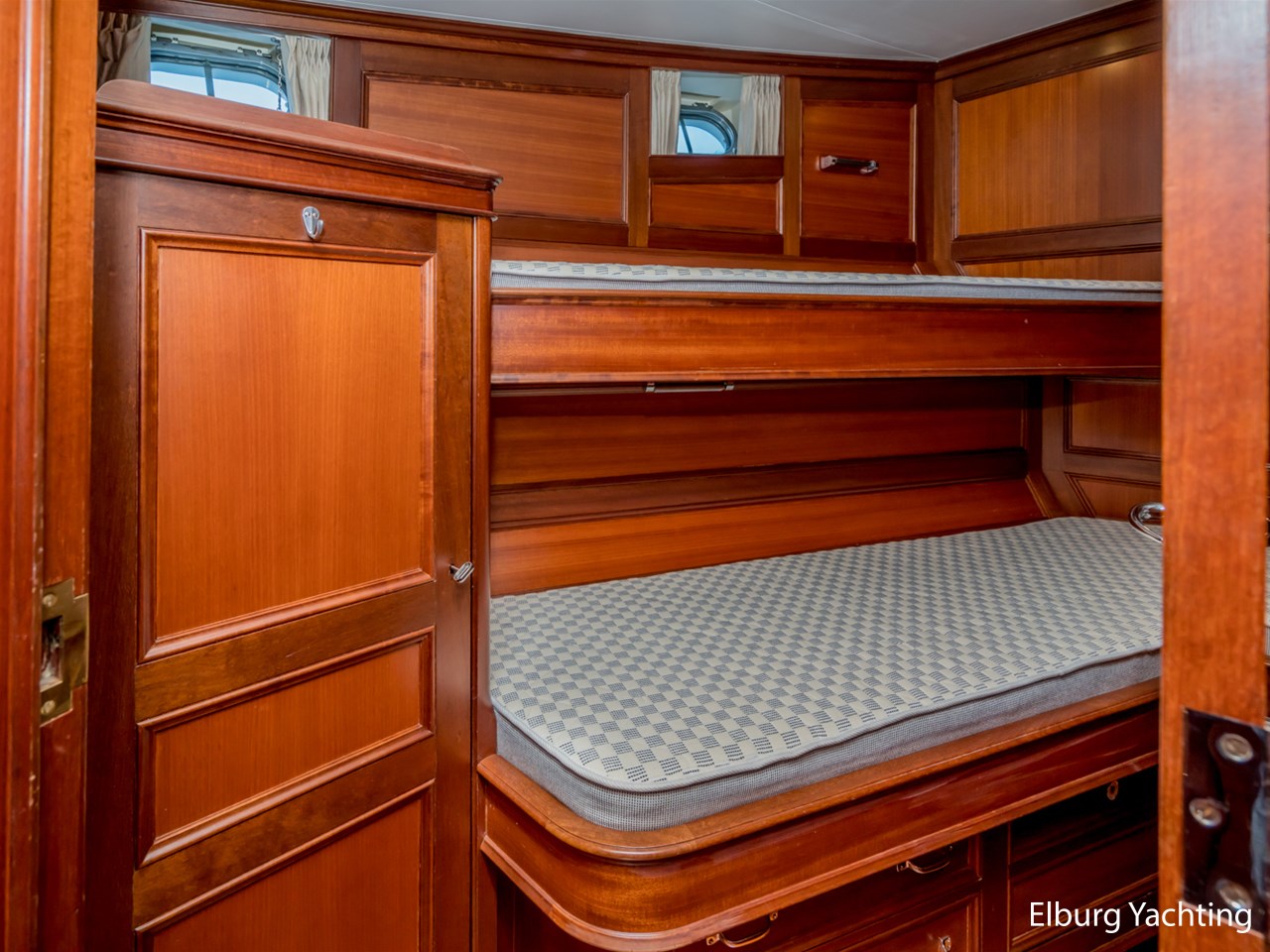 The Lunstroo 56 is a unique and one-of-a-kind piece of Dutch Craftsmanship, and a ture treasure to the long tradition of yachtbuilding that the Netherlands are known for. The vessel was launched in 1974, but has had a complete refit in 2015 at the Nicolaas Witsen yard, where no expense has been spared. The vessel has 2 x 135 hp new Perkins engines, which are known for their low revs and low noise level. During the refit, the following was carried out: New solid teak deck (22 mm), new teak cabin roof (15 mm), All varnished teak elements of the cabinroof superstructure are newly manufactured, chromed portholes, newly lined window frames, Entire electrical installation has been renewed incl. pumps and other equipment, new navigation equipment, new propeller shafts, propeller shaft bearings, thrust bearings and propellers. All tanks have been opened, cleaned and inspected. (Both diesel, water and waste water tanks.) Piping is measured by wall thickness. Hull newly painted in Awl Grip. All clear coat with impregnating resin and Double UV Coating from Dubbelcoat Van de IJssel. (with the exception of mast and boom), Morse engine control converted to electronic control, Kabola CV with hot water supply installed, new upholstery, new mattresses. The Lunstroo 56 has a lot of living space in the saloon and on the aft deck. It is a unique motor yacht with high-quality finish with modern comfort and new technology, suitable for a longer stay. stainless steel railing, stainless steel edge, spacious seating in the saloon, 7 berths, chrome windshield, rear entrance, 2 x escape hatch in the front, Miele washing machine, headroom approx. 2 meters, rear cabin suitable for crew cabin (including entrance engine room), well-insulated engine room. Stereo set BOSE Indoor and Outdoor (2015), Lowe TV + Lift (2015), CVO certificied, bilge alarm available in 3 zones. It's current owner has stored the front mast and added a winch for easy lowering of the back mast. In one of the front cabins one of the bunk beds was removed to create more space. Document description of the refit available on request. Clearance height with mast up approx. 8,40m and with folded mast and cockpit windows approx. 2,90m. Please Watch the Roundbilge Lunstroo 56 (Total Refit 2015) on YouTube: https://youtu.be/NfP3khQ4EaA For questions and / or to make an appointment, you are welcome at Elburg Yachting 7 days a week.