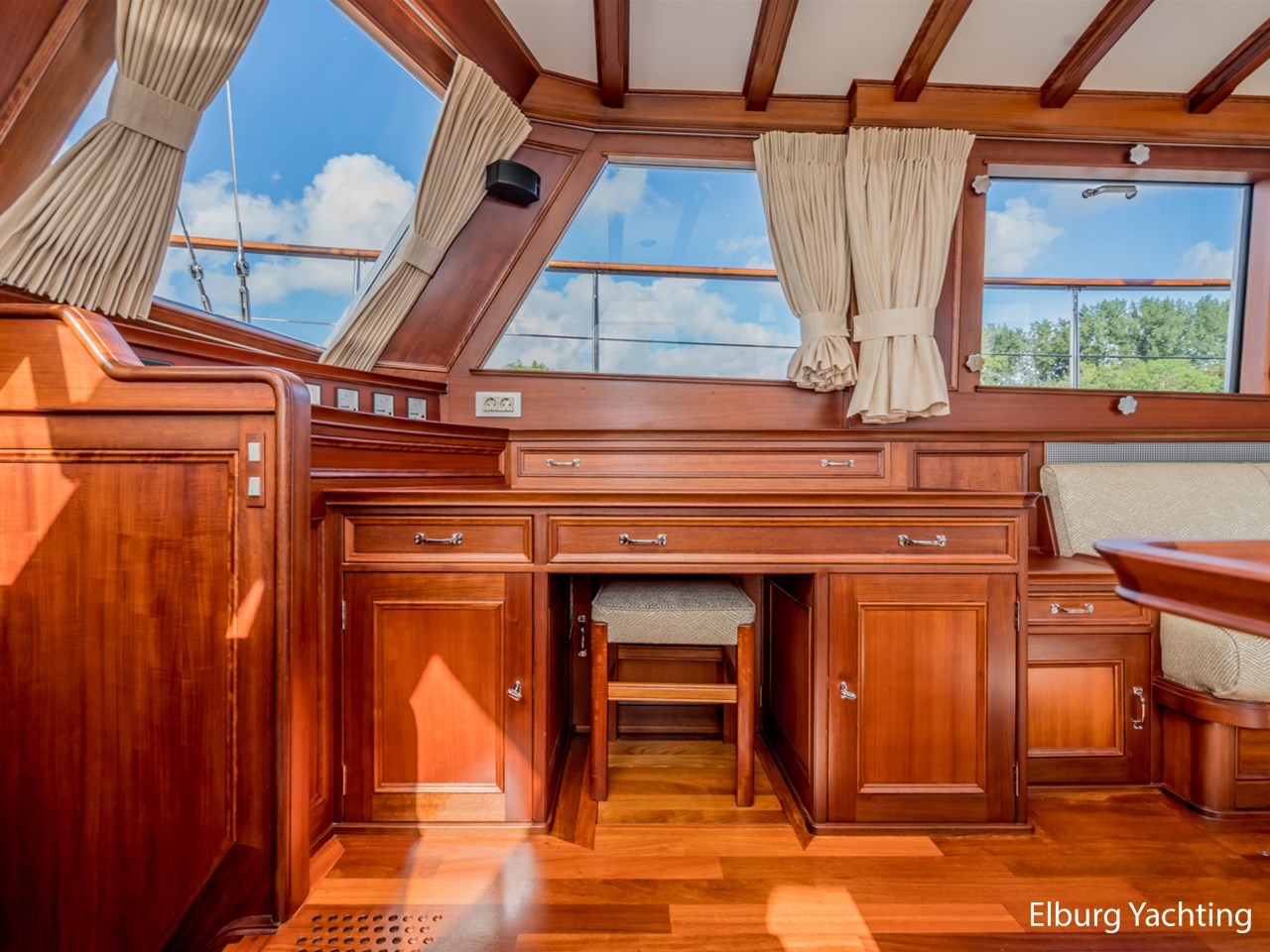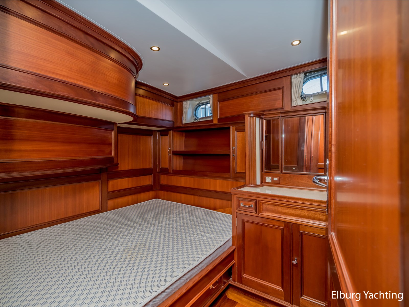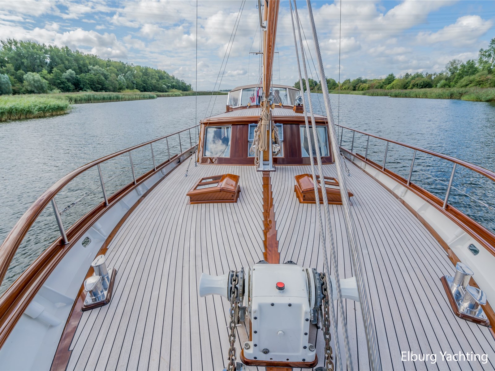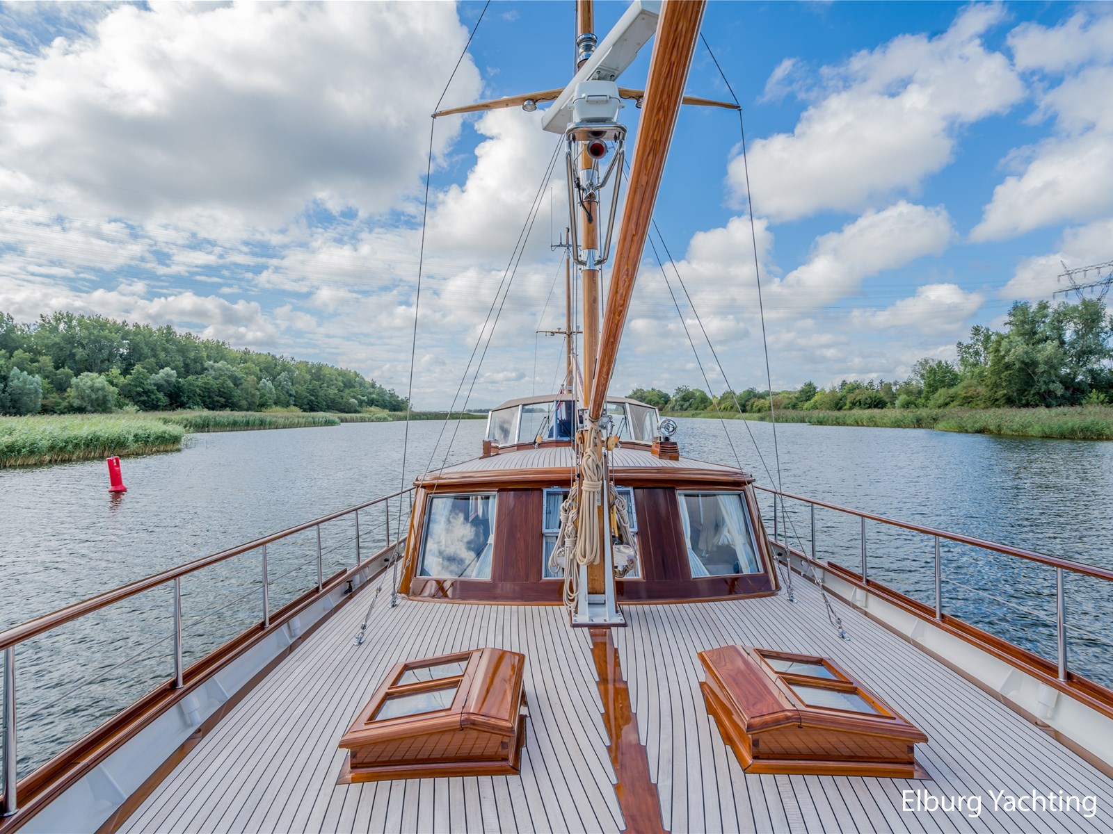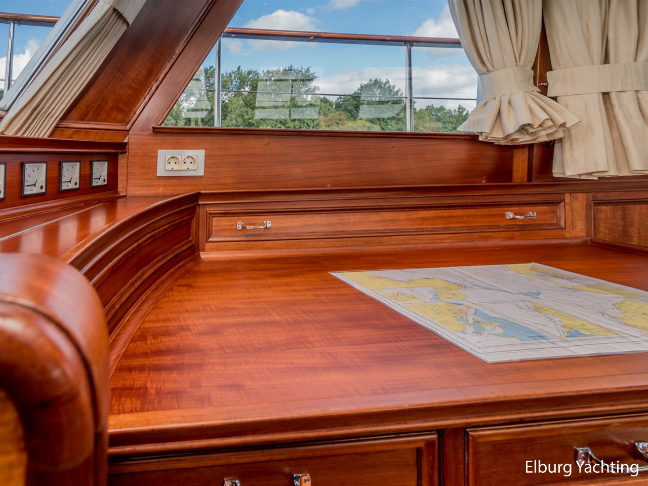 The Lunstroo 56 is a unique and one-of-a-kind piece of Dutch Craftsmanship, and a ture treasure to the long tradition of yachtbuilding that the Netherlands are known for. The vessel was launched in 1974, but has had a complete refit in 2015 at the Nicolaas Witsen yard, where no expense has been spared. The vessel has 2 x 135 hp new Perkins engines, which are known for their low revs and low noise level. During the refit, the following was carried out: New solid teak deck (22 mm), new teak cabin roof (15 mm), All varnished teak elements of the cabinroof superstructure are newly manufactured, chromed portholes, newly lined window frames, Entire electrical installation has been renewed incl. pumps and other equipment, new navigation equipment, new propeller shafts, propeller shaft bearings, thrust bearings and propellers. All tanks have been opened, cleaned and inspected. (Both diesel, water and waste water tanks.) Piping is measured by wall thickness. Hull newly painted in Awl Grip. All clear coat with impregnating resin and Double UV Coating from Dubbelcoat Van de IJssel. (with the exception of mast and boom), Morse engine control converted to electronic control, Kabola CV with hot water supply installed, new upholstery, new mattresses. The Lunstroo 56 has a lot of living space in the saloon and on the aft deck. It is a unique motor yacht with high-quality finish with modern comfort and new technology, suitable for a longer stay. stainless steel railing, stainless steel edge, spacious seating in the saloon, 7 berths, chrome windshield, rear entrance, 2 x escape hatch in the front, Miele washing machine, headroom approx. 2 meters, rear cabin suitable for crew cabin (including entrance engine room), well-insulated engine room. Stereo set BOSE Indoor and Outdoor (2015), Lowe TV + Lift (2015), CVO certificied, bilge alarm available in 3 zones. It's current owner has stored the front mast and added a winch for easy lowering of the back mast. In one of the front cabins one of the bunk beds was removed to create more space. Document description of the refit available on request. Clearance height with mast up approx. 8,40m and with folded mast and cockpit windows approx. 2,90m. Please Watch the Roundbilge Lunstroo 56 (Total Refit 2015) on YouTube: https://youtu.be/NfP3khQ4EaA For questions and / or to make an appointment, you are welcome at Elburg Yachting 7 days a week.
