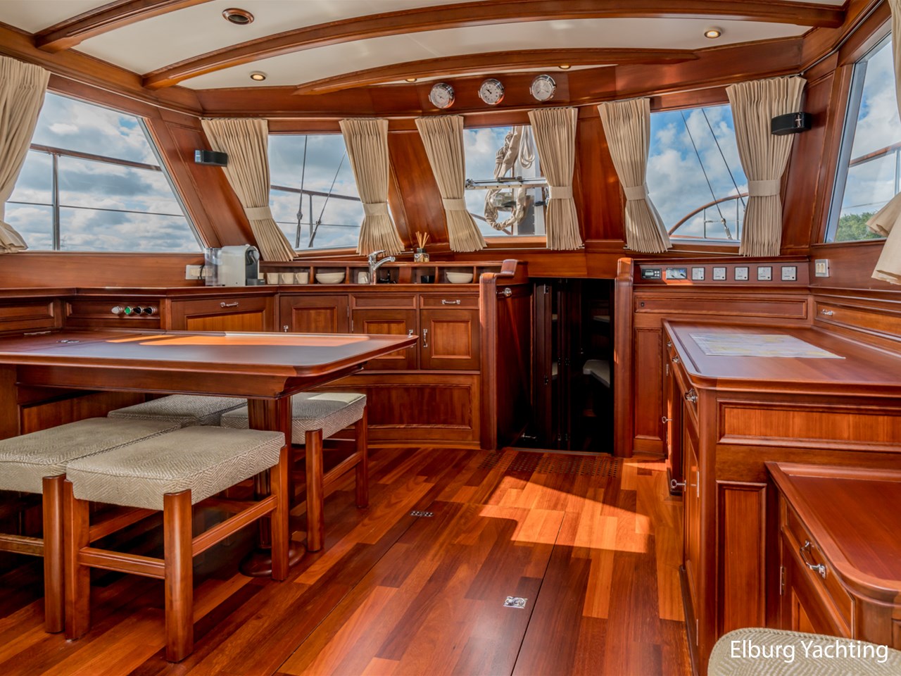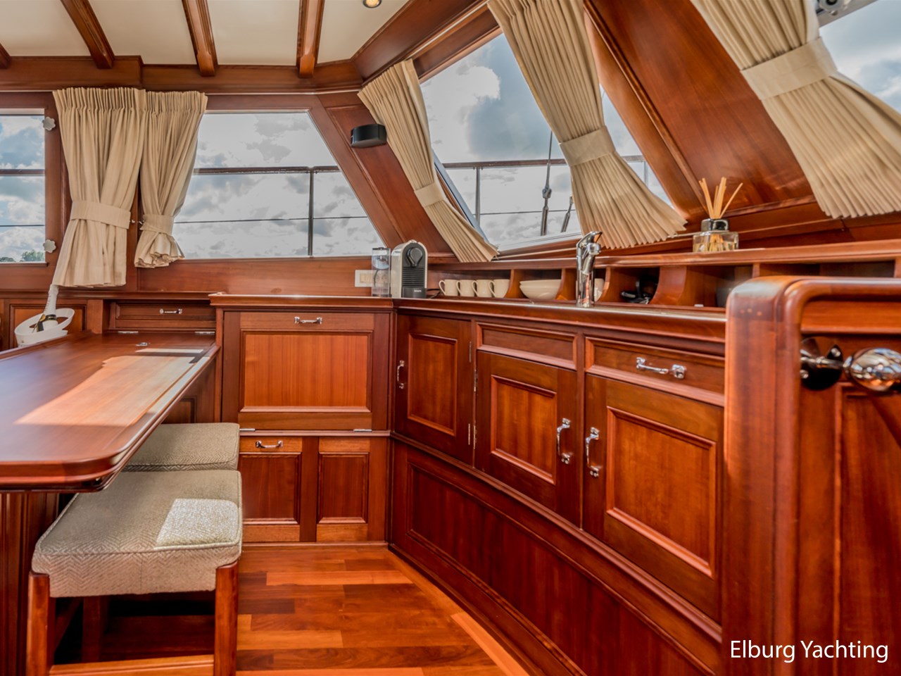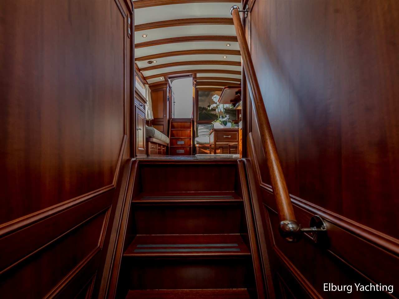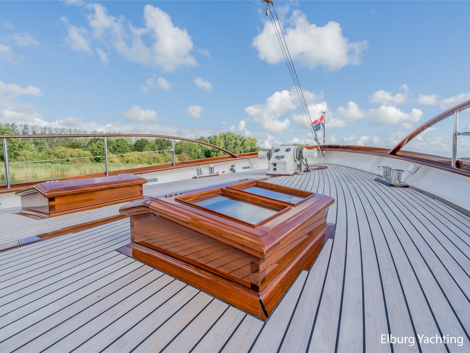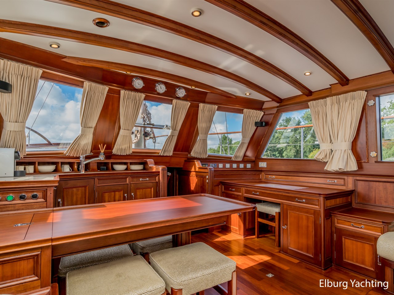 The Lunstroo 56 is a unique and one-of-a-kind piece of Dutch Craftsmanship, and a ture treasure to the long tradition of yachtbuilding that the Netherlands are known for. The vessel was launched in 1974, but has had a complete refit in 2015 at the Nicolaas Witsen yard, where no expense has been spared. The vessel has 2 x 135 hp new Perkins engines, which are known for their low revs and low noise level. During the refit, the following was carried out: New solid teak deck (22 mm), new teak cabin roof (15 mm), All varnished teak elements of the cabinroof superstructure are newly manufactured, chromed portholes, newly lined window frames, Entire electrical installation has been renewed incl. pumps and other equipment, new navigation equipment, new propeller shafts, propeller shaft bearings, thrust bearings and propellers. All tanks have been opened, cleaned and inspected. (Both diesel, water and waste water tanks.) Piping is measured by wall thickness. Hull newly painted in Awl Grip. All clear coat with impregnating resin and Double UV Coating from Dubbelcoat Van de IJssel. (with the exception of mast and boom), Morse engine control converted to electronic control, Kabola CV with hot water supply installed, new upholstery, new mattresses. The Lunstroo 56 has a lot of living space in the saloon and on the aft deck. It is a unique motor yacht with high-quality finish with modern comfort and new technology, suitable for a longer stay. stainless steel railing, stainless steel edge, spacious seating in the saloon, 7 berths, chrome windshield, rear entrance, 2 x escape hatch in the front, Miele washing machine, headroom approx. 2 meters, rear cabin suitable for crew cabin (including entrance engine room), well-insulated engine room. Stereo set BOSE Indoor and Outdoor (2015), Lowe TV + Lift (2015), CVO certificied, bilge alarm available in 3 zones. It's current owner has stored the front mast and added a winch for easy lowering of the back mast. In one of the front cabins one of the bunk beds was removed to create more space. Document description of the refit available on request. Clearance height with mast up approx. 8,40m and with folded mast and cockpit windows approx. 2,90m. Please Watch the Roundbilge Lunstroo 56 (Total Refit 2015) on YouTube: https://youtu.be/NfP3khQ4EaA For questions and / or to make an appointment, you are welcome at Elburg Yachting 7 days a week.