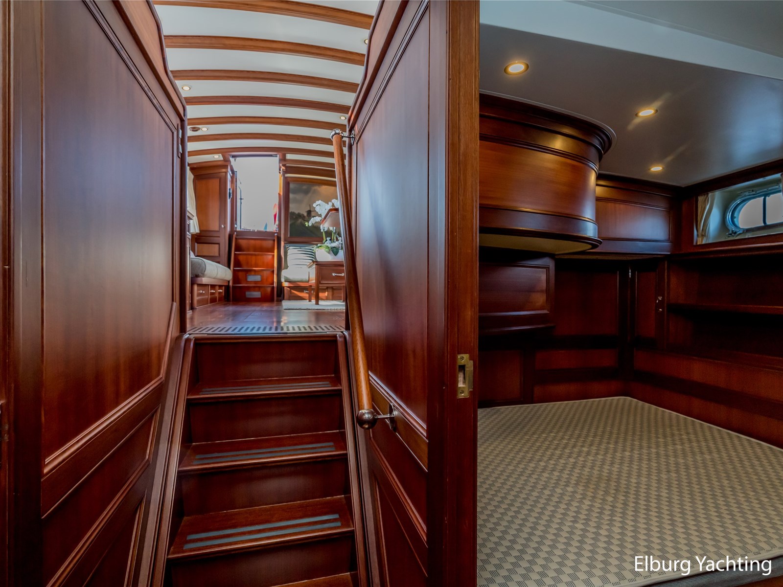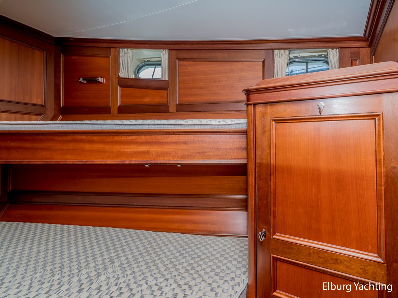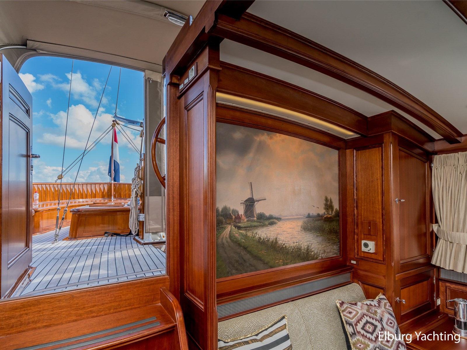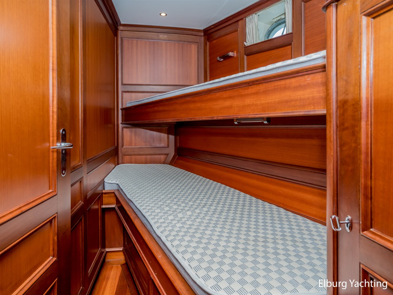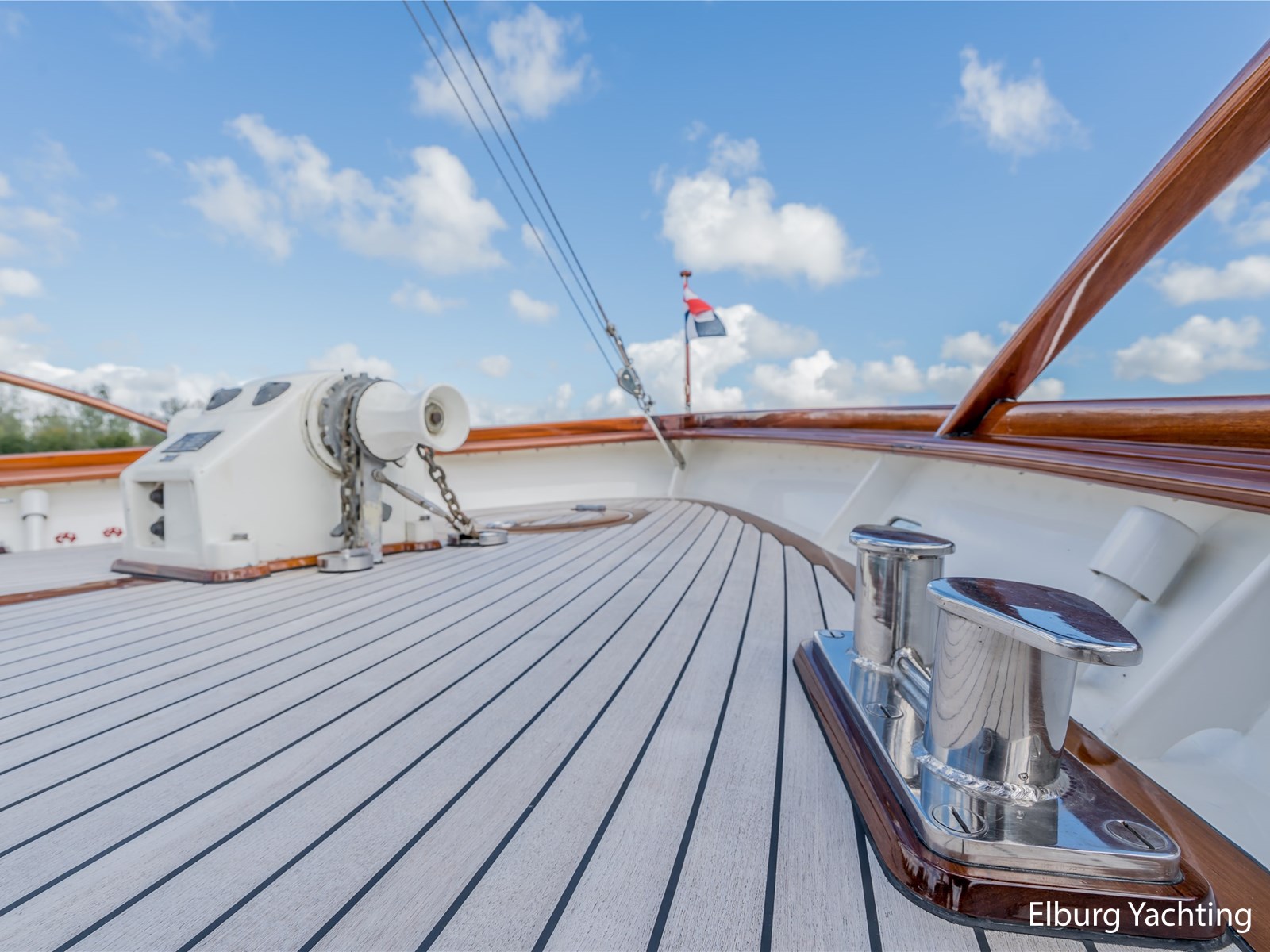 The Lunstroo 56 is a unique and one-of-a-kind piece of Dutch Craftsmanship, and a ture treasure to the long tradition of yachtbuilding that the Netherlands are known for. The vessel was launched in 1974, but has had a complete refit in 2015 at the Nicolaas Witsen yard, where no expense has been spared. The vessel has 2 x 135 hp new Perkins engines, which are known for their low revs and low noise level. During the refit, the following was carried out: New solid teak deck (22 mm), new teak cabin roof (15 mm), All varnished teak elements of the cabinroof superstructure are newly manufactured, chromed portholes, newly lined window frames, Entire electrical installation has been renewed incl. pumps and other equipment, new navigation equipment, new propeller shafts, propeller shaft bearings, thrust bearings and propellers. All tanks have been opened, cleaned and inspected. (Both diesel, water and waste water tanks.) Piping is measured by wall thickness. Hull newly painted in Awl Grip. All clear coat with impregnating resin and Double UV Coating from Dubbelcoat Van de IJssel. (with the exception of mast and boom), Morse engine control converted to electronic control, Kabola CV with hot water supply installed, new upholstery, new mattresses. The Lunstroo 56 has a lot of living space in the saloon and on the aft deck. It is a unique motor yacht with high-quality finish with modern comfort and new technology, suitable for a longer stay. stainless steel railing, stainless steel edge, spacious seating in the saloon, 7 berths, chrome windshield, rear entrance, 2 x escape hatch in the front, Miele washing machine, headroom approx. 2 meters, rear cabin suitable for crew cabin (including entrance engine room), well-insulated engine room. Stereo set BOSE Indoor and Outdoor (2015), Lowe TV + Lift (2015), CVO certificied, bilge alarm available in 3 zones. It's current owner has stored the front mast and added a winch for easy lowering of the back mast. In one of the front cabins one of the bunk beds was removed to create more space. Document description of the refit available on request. Clearance height with mast up approx. 8,40m and with folded mast and cockpit windows approx. 2,90m. Please Watch the Roundbilge Lunstroo 56 (Total Refit 2015) on YouTube: https://youtu.be/NfP3khQ4EaA For questions and / or to make an appointment, you are welcome at Elburg Yachting 7 days a week.