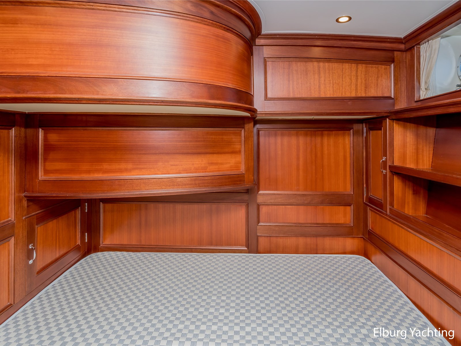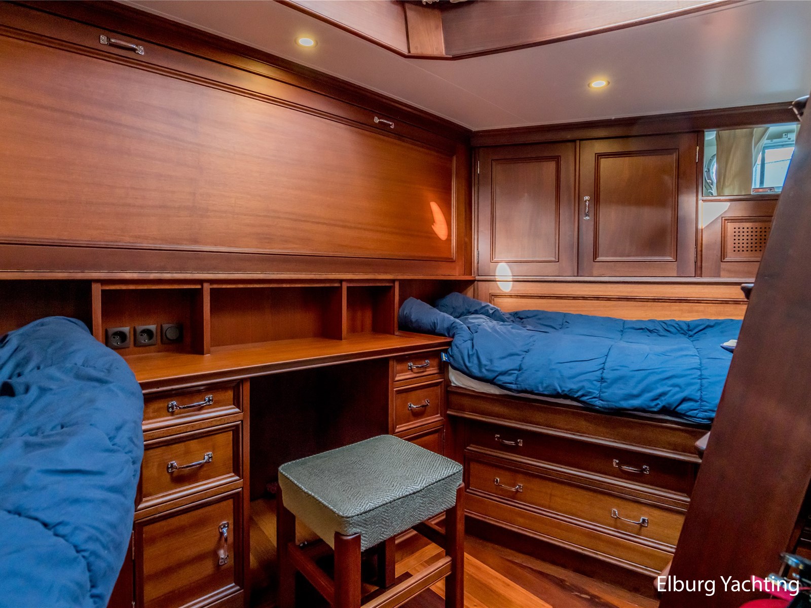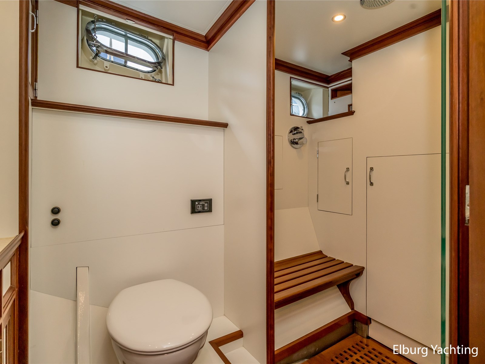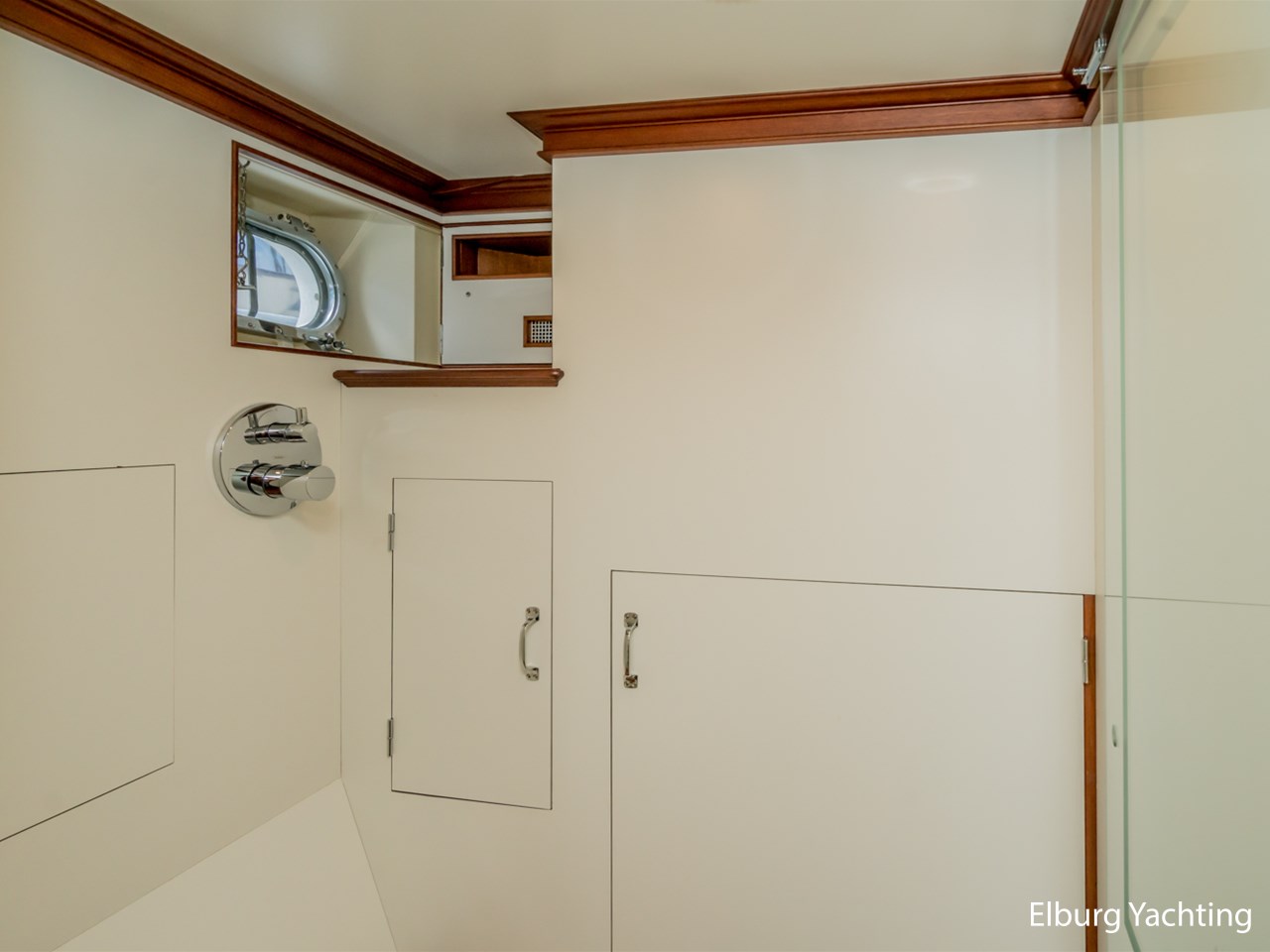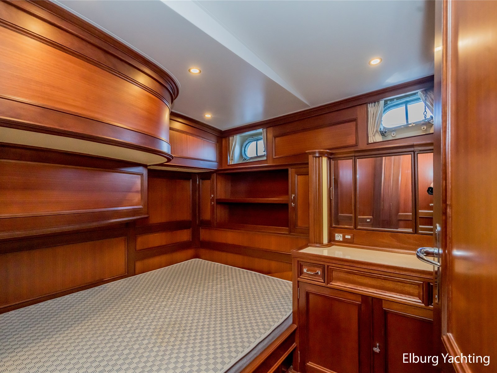 The Lunstroo 56 is a unique and one-of-a-kind piece of Dutch Craftsmanship, and a ture treasure to the long tradition of yachtbuilding that the Netherlands are known for. The vessel was launched in 1974, but has had a complete refit in 2015 at the Nicolaas Witsen yard, where no expense has been spared. The vessel has 2 x 135 hp new Perkins engines, which are known for their low revs and low noise level. During the refit, the following was carried out: New solid teak deck (22 mm), new teak cabin roof (15 mm), All varnished teak elements of the cabinroof superstructure are newly manufactured, chromed portholes, newly lined window frames, Entire electrical installation has been renewed incl. pumps and other equipment, new navigation equipment, new propeller shafts, propeller shaft bearings, thrust bearings and propellers. All tanks have been opened, cleaned and inspected. (Both diesel, water and waste water tanks.) Piping is measured by wall thickness. Hull newly painted in Awl Grip. All clear coat with impregnating resin and Double UV Coating from Dubbelcoat Van de IJssel. (with the exception of mast and boom), Morse engine control converted to electronic control, Kabola CV with hot water supply installed, new upholstery, new mattresses. The Lunstroo 56 has a lot of living space in the saloon and on the aft deck. It is a unique motor yacht with high-quality finish with modern comfort and new technology, suitable for a longer stay. stainless steel railing, stainless steel edge, spacious seating in the saloon, 7 berths, chrome windshield, rear entrance, 2 x escape hatch in the front, Miele washing machine, headroom approx. 2 meters, rear cabin suitable for crew cabin (including entrance engine room), well-insulated engine room. Stereo set BOSE Indoor and Outdoor (2015), Lowe TV + Lift (2015), CVO certificied, bilge alarm available in 3 zones. It's current owner has stored the front mast and added a winch for easy lowering of the back mast. In one of the front cabins one of the bunk beds was removed to create more space. Document description of the refit available on request. Clearance height with mast up approx. 8,40m and with folded mast and cockpit windows approx. 2,90m. Please Watch the Roundbilge Lunstroo 56 (Total Refit 2015) on YouTube: https://youtu.be/NfP3khQ4EaA For questions and / or to make an appointment, you are welcome at Elburg Yachting 7 days a week.