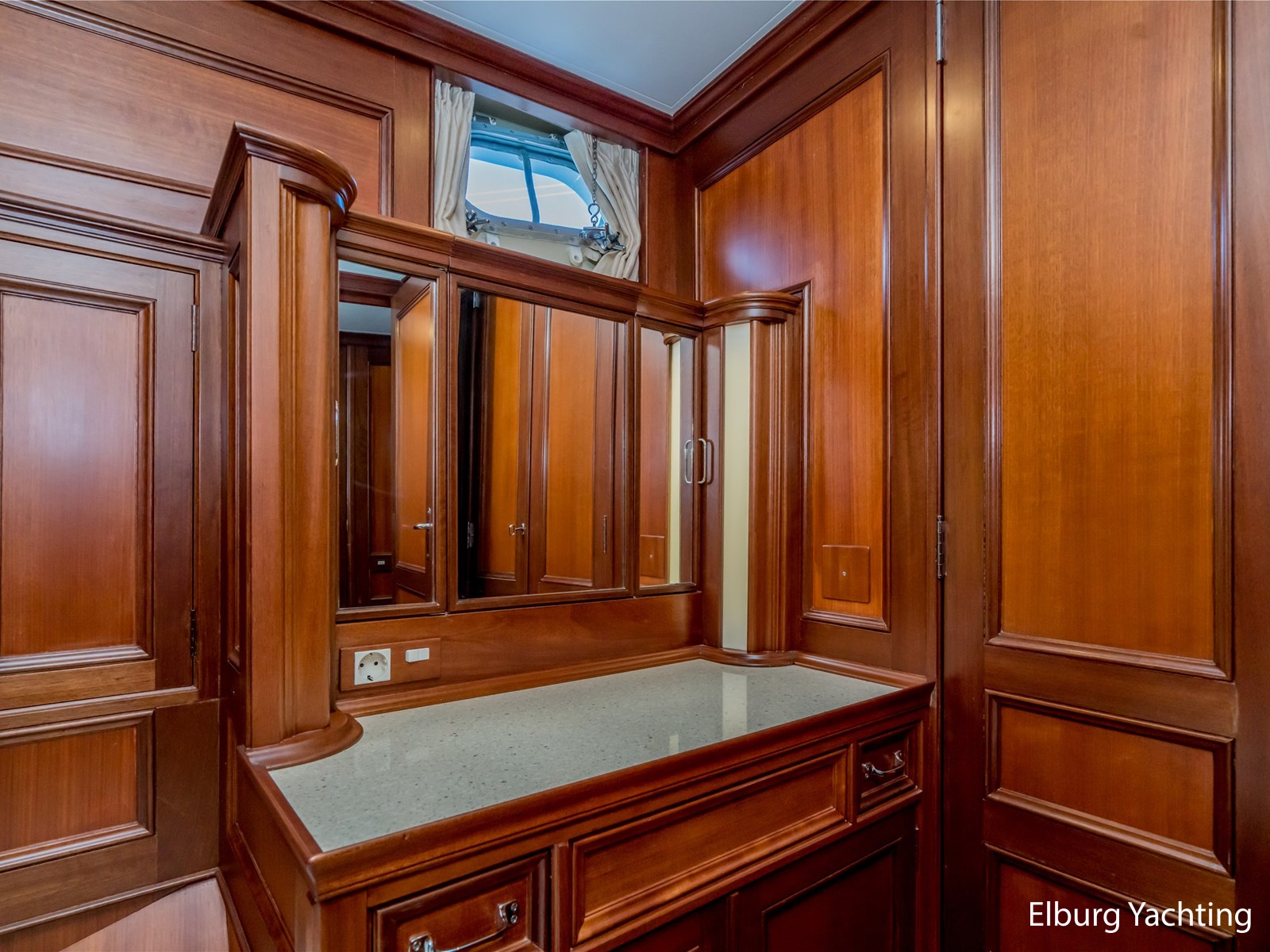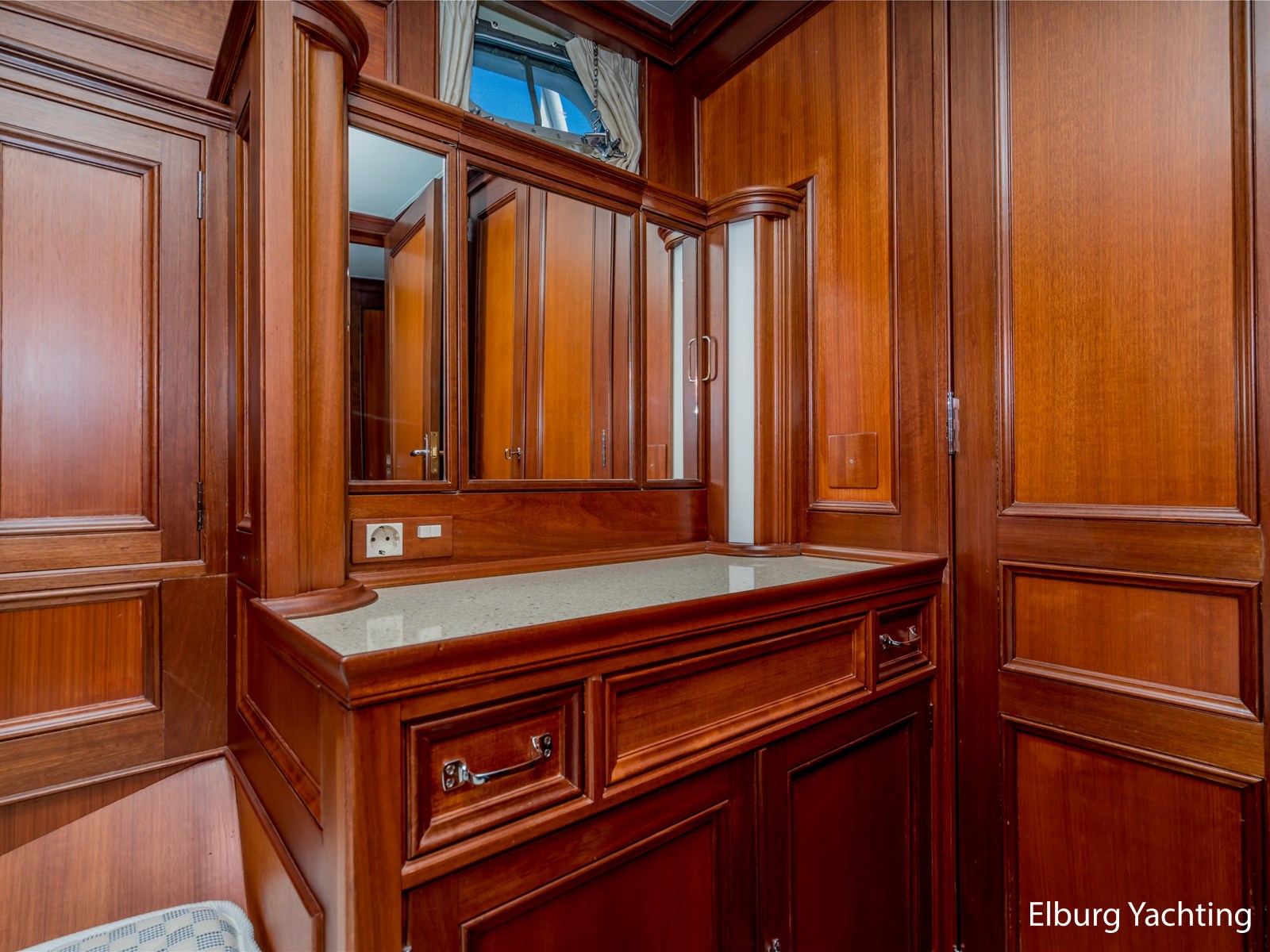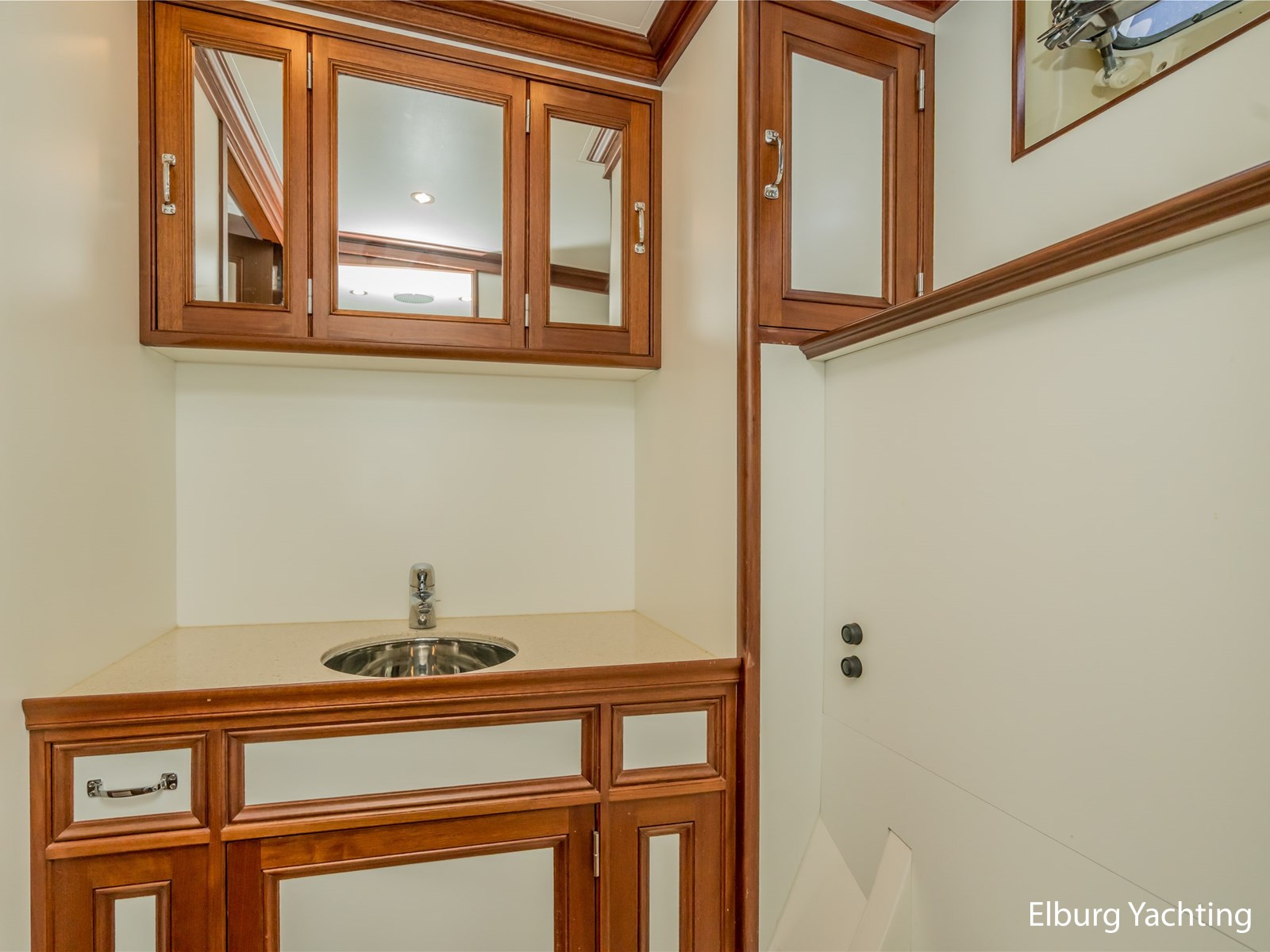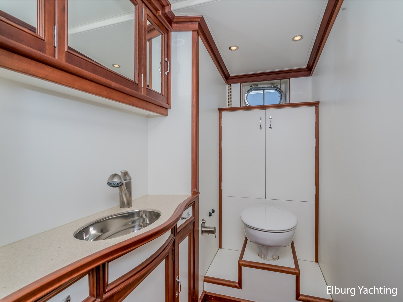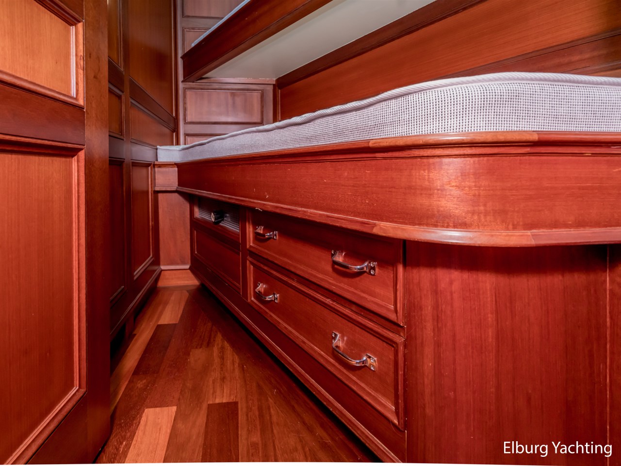 The Lunstroo 56 is a unique and one-of-a-kind piece of Dutch Craftsmanship, and a ture treasure to the long tradition of yachtbuilding that the Netherlands are known for. The vessel was launched in 1974, but has had a complete refit in 2015 at the Nicolaas Witsen yard, where no expense has been spared. The vessel has 2 x 135 hp new Perkins engines, which are known for their low revs and low noise level. During the refit, the following was carried out: New solid teak deck (22 mm), new teak cabin roof (15 mm), All varnished teak elements of the cabinroof superstructure are newly manufactured, chromed portholes, newly lined window frames, Entire electrical installation has been renewed incl. pumps and other equipment, new navigation equipment, new propeller shafts, propeller shaft bearings, thrust bearings and propellers. All tanks have been opened, cleaned and inspected. (Both diesel, water and waste water tanks.) Piping is measured by wall thickness. Hull newly painted in Awl Grip. All clear coat with impregnating resin and Double UV Coating from Dubbelcoat Van de IJssel. (with the exception of mast and boom), Morse engine control converted to electronic control, Kabola CV with hot water supply installed, new upholstery, new mattresses. The Lunstroo 56 has a lot of living space in the saloon and on the aft deck. It is a unique motor yacht with high-quality finish with modern comfort and new technology, suitable for a longer stay. stainless steel railing, stainless steel edge, spacious seating in the saloon, 7 berths, chrome windshield, rear entrance, 2 x escape hatch in the front, Miele washing machine, headroom approx. 2 meters, rear cabin suitable for crew cabin (including entrance engine room), well-insulated engine room. Stereo set BOSE Indoor and Outdoor (2015), Lowe TV + Lift (2015), CVO certificied, bilge alarm available in 3 zones. It's current owner has stored the front mast and added a winch for easy lowering of the back mast. In one of the front cabins one of the bunk beds was removed to create more space. Document description of the refit available on request. Clearance height with mast up approx. 8,40m and with folded mast and cockpit windows approx. 2,90m. Please Watch the Roundbilge Lunstroo 56 (Total Refit 2015) on YouTube: https://youtu.be/NfP3khQ4EaA For questions and / or to make an appointment, you are welcome at Elburg Yachting 7 days a week.