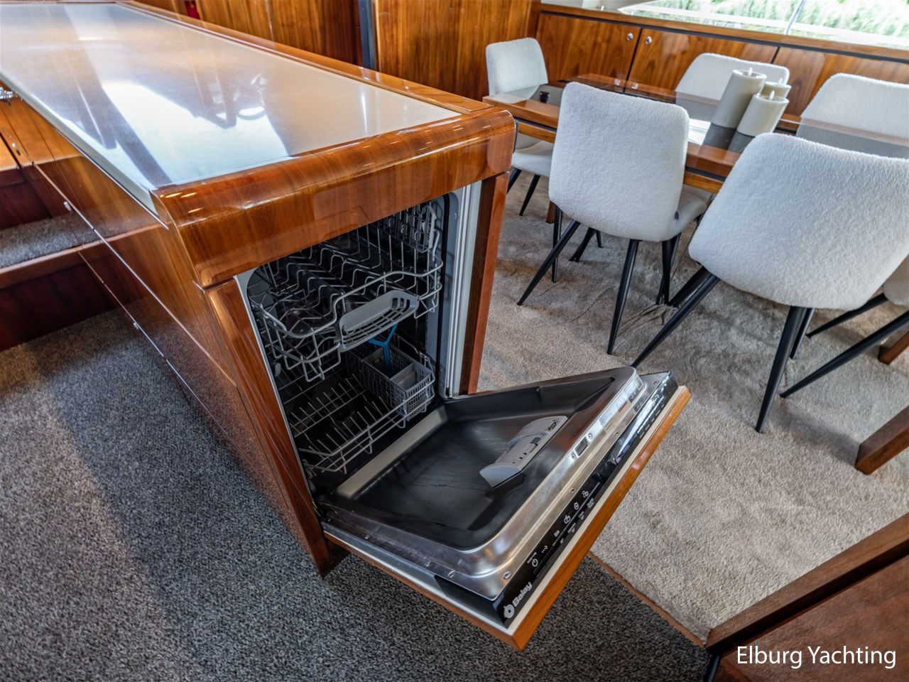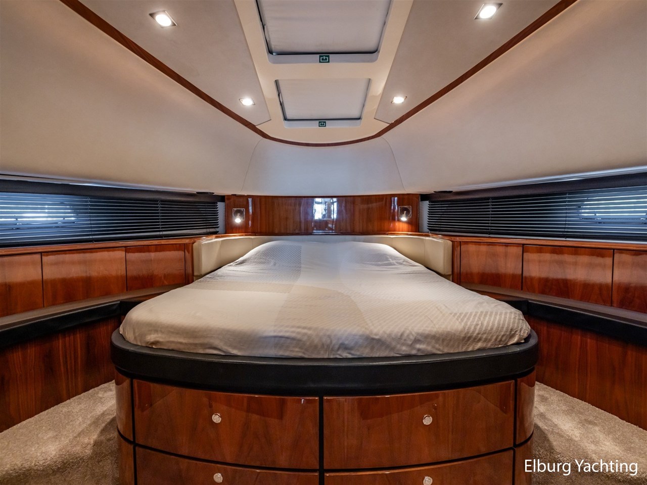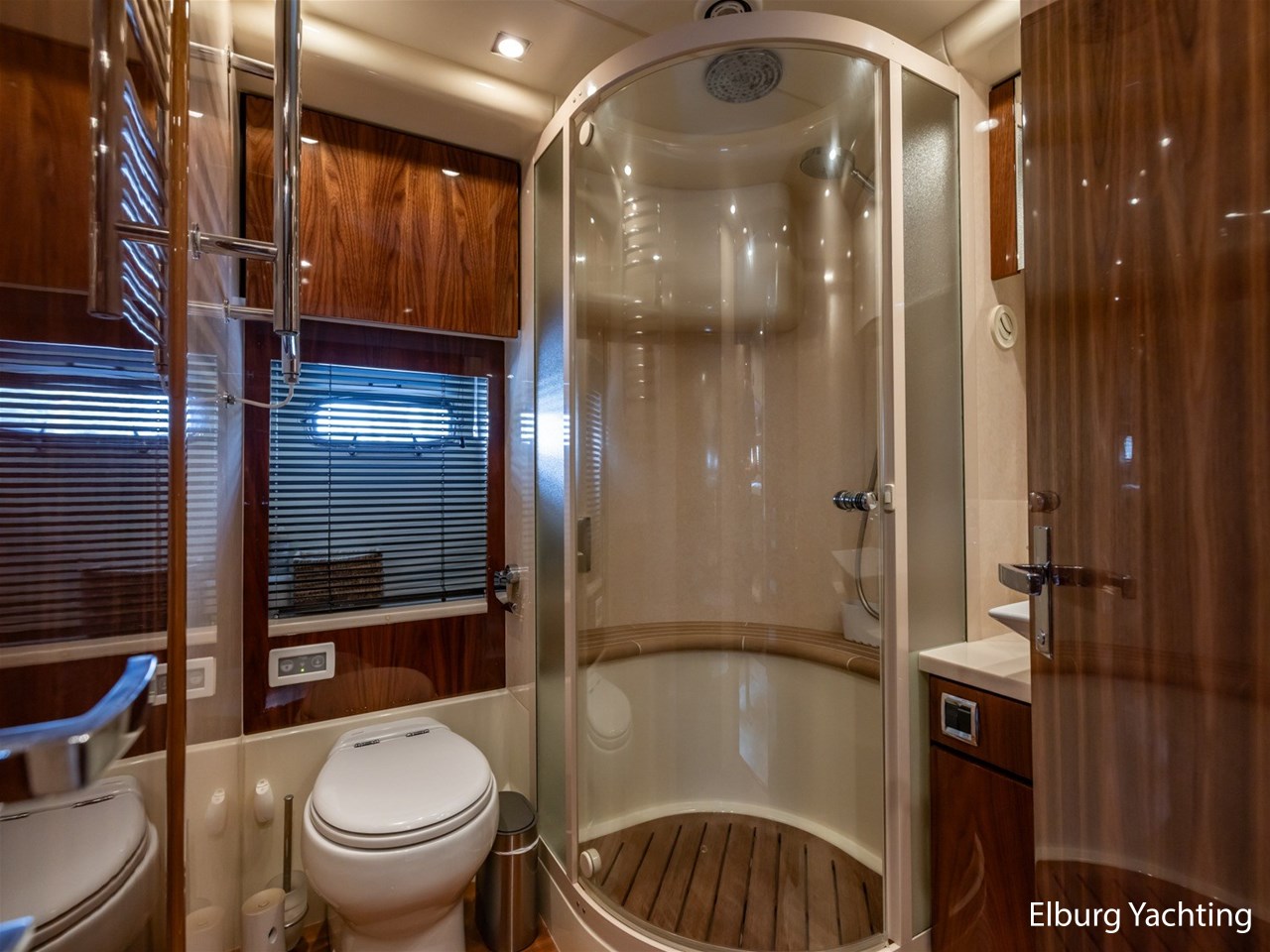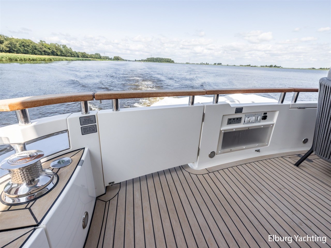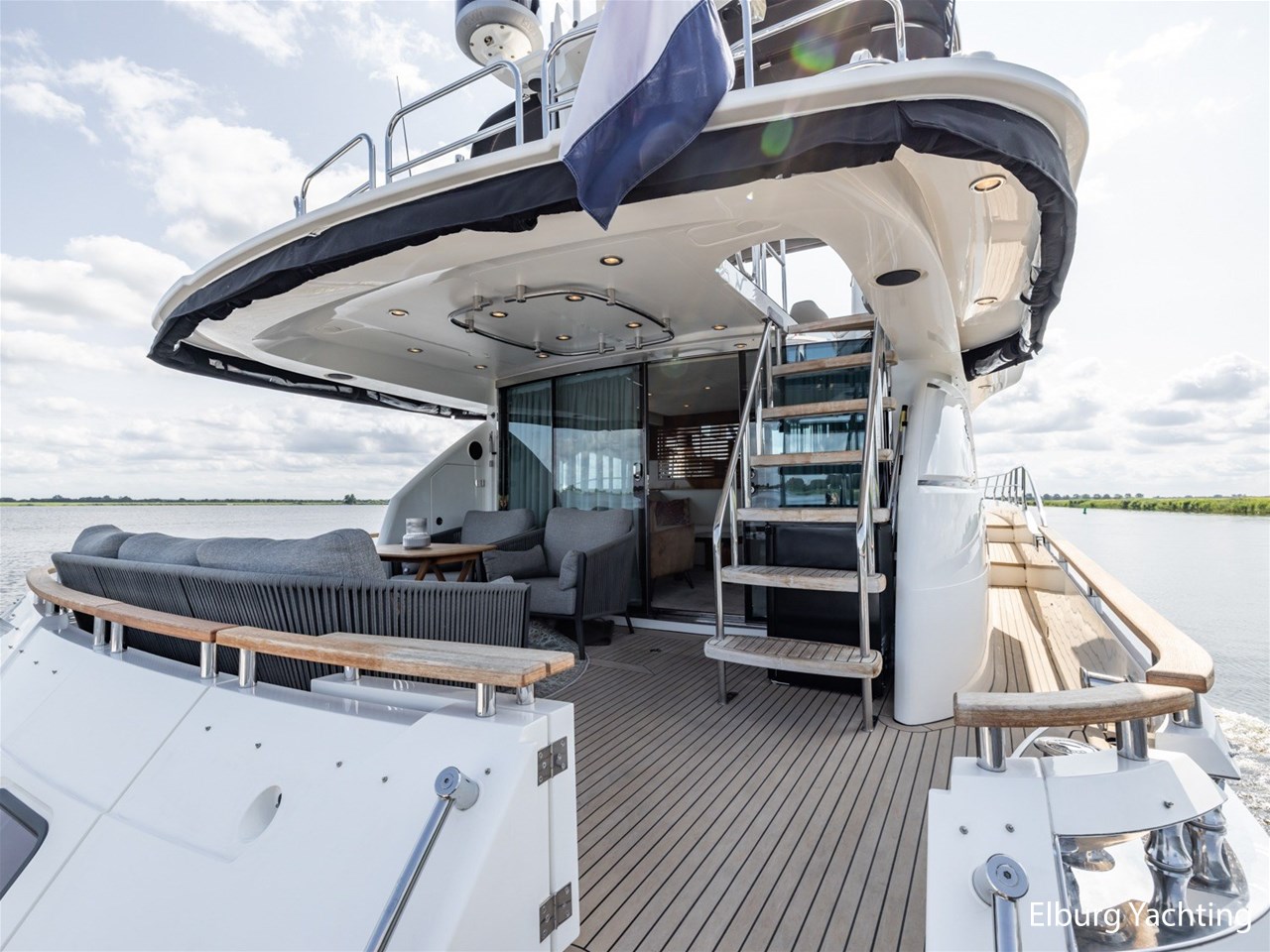 This Fairline Squadron 70 with flybridge is a sport, fast-going GRP built motor yacht. The yacht is very complete and has a luxurious high-quality finish. Recently in 2023/2024, the yacht has undergone a professional update in which the complete upholstery both inside and outside and the tent around the aft deck have been renewed, carpet in the interior has been renewed and the various wall panels have been reupholstered, synthetic permateak has been applied around the side and aft decks, new Raymarine navigation equipment has been installed, service has been carried out on both main engines and the generator. The Fairline has four spacious cabins, three of which have en-suite bathrooms and are all built to the highest standards. The owner's cabin is located amidships with beautiful windows on both sides for a great view on water level. In the aft ship there is a comfortable 2-person (crew) cabin with private bathroom. Luxurious and stylish interior. Spacious open cockpit with sliding door to the saloon, by opening the sliding door the interior space can be expanded even further. The open cockpit can be completely closed off by means of a tent with removable parts, so that the living space on board can be optimally used. The saloon has an L-shaped sofa with 2 lounge chairs and a 6-person dining table, Loewe TV on lift and drink bar. This Fairline Squadron 70 is equipped with walnut interior with high-gloss finish, electrically operated slats, alcantara ceilings, sun blinds around the saloon exterior windows. The yacht is equiped with a full bimini over the flybridge, exterior lighting, 'lazy' stairs to the flybridge, large sunbed on foredeck with foldable awning, dishwasher, Samsung washing machine (2023), Samsung dryer (2023), 2 x electric capstans on the aft deck, trim tabs, flybridge covers, removable shower on the bathing platform, underwater lighting, loose bench with two chairs on the aft deck, WiFi on board (SIM card not included), TVs with chromecast, Bose audio system in saloon, rear view camera via plotter, 2-person sunbed on the flybridge.