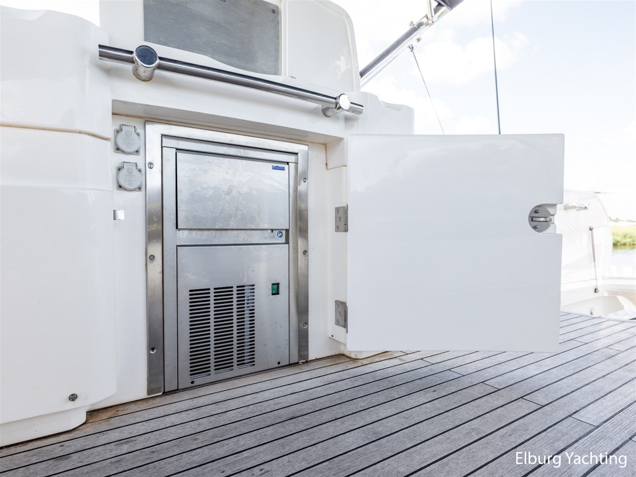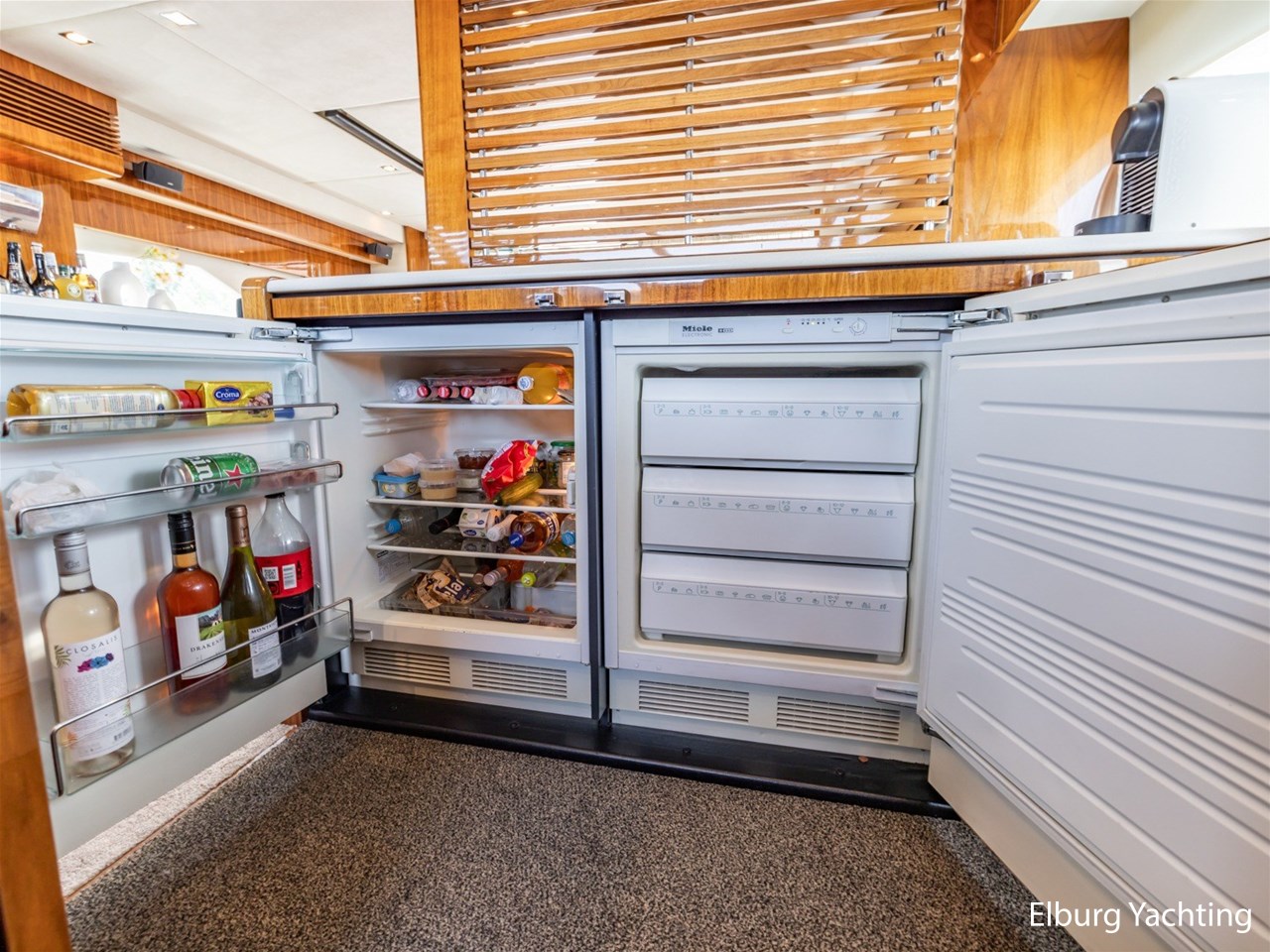 Separated fridge and freezer in galley + fridge nearby steering position + fridge on aft deck + fridge on flybridge