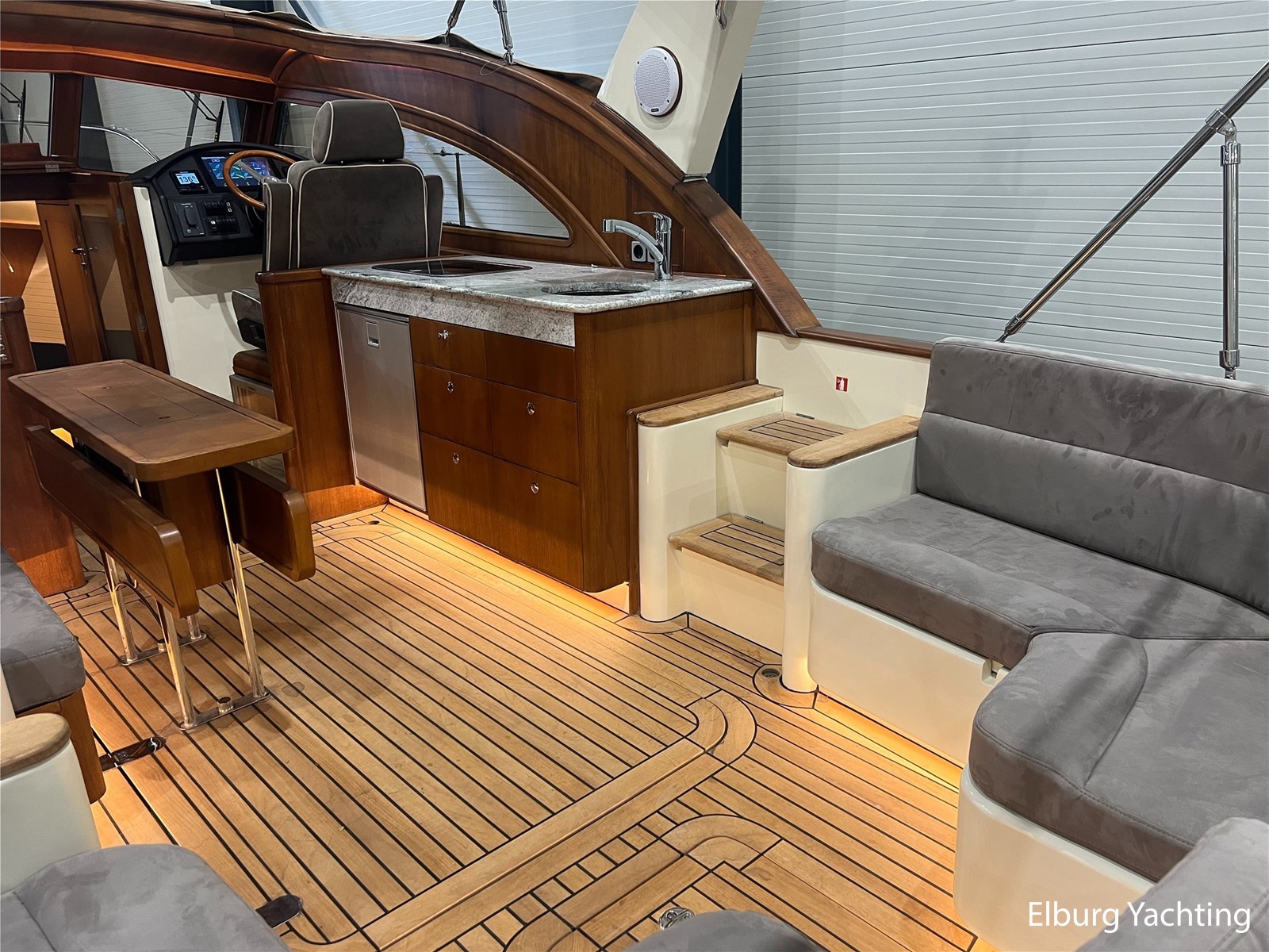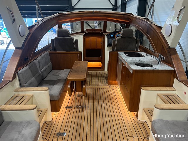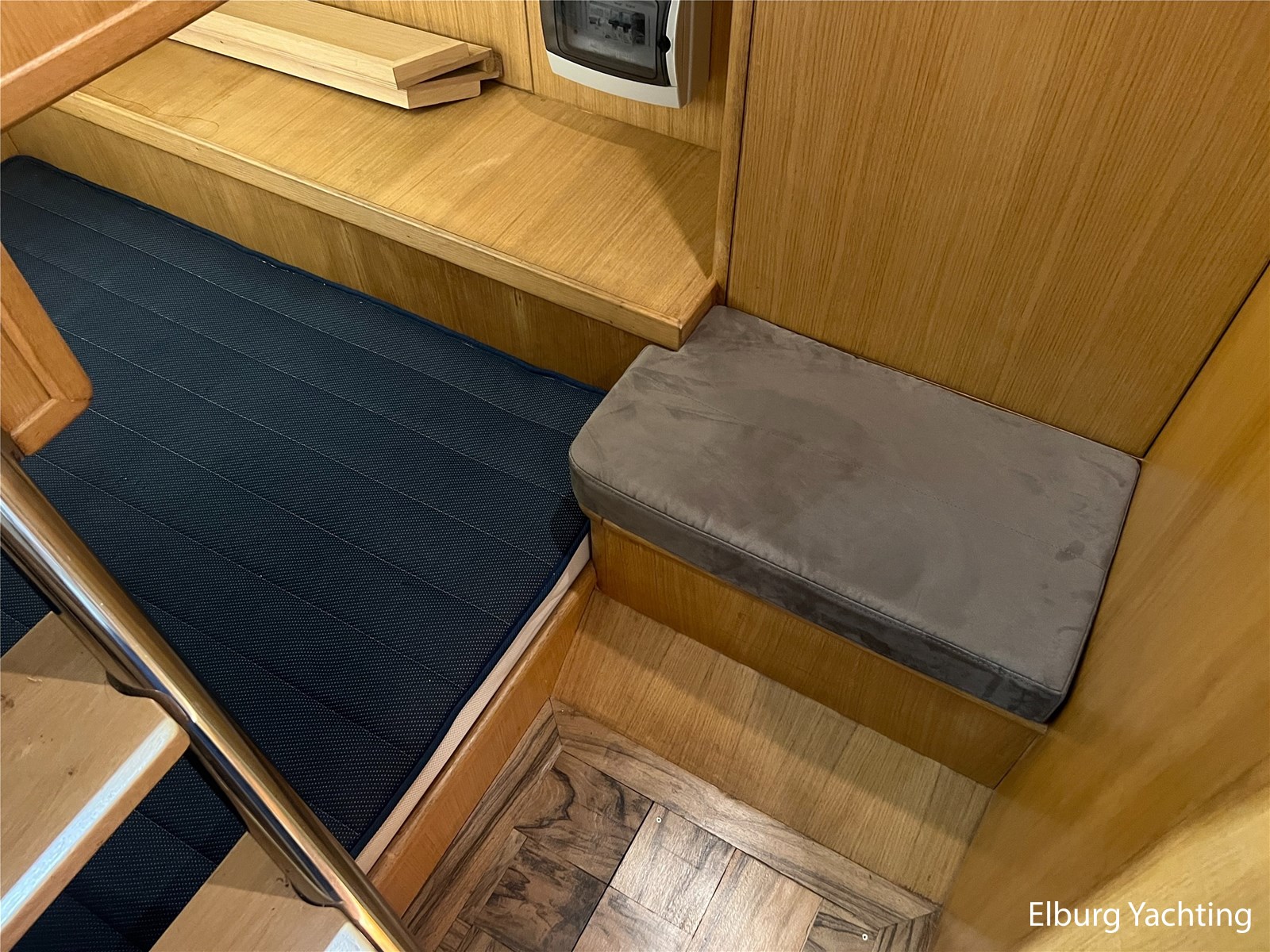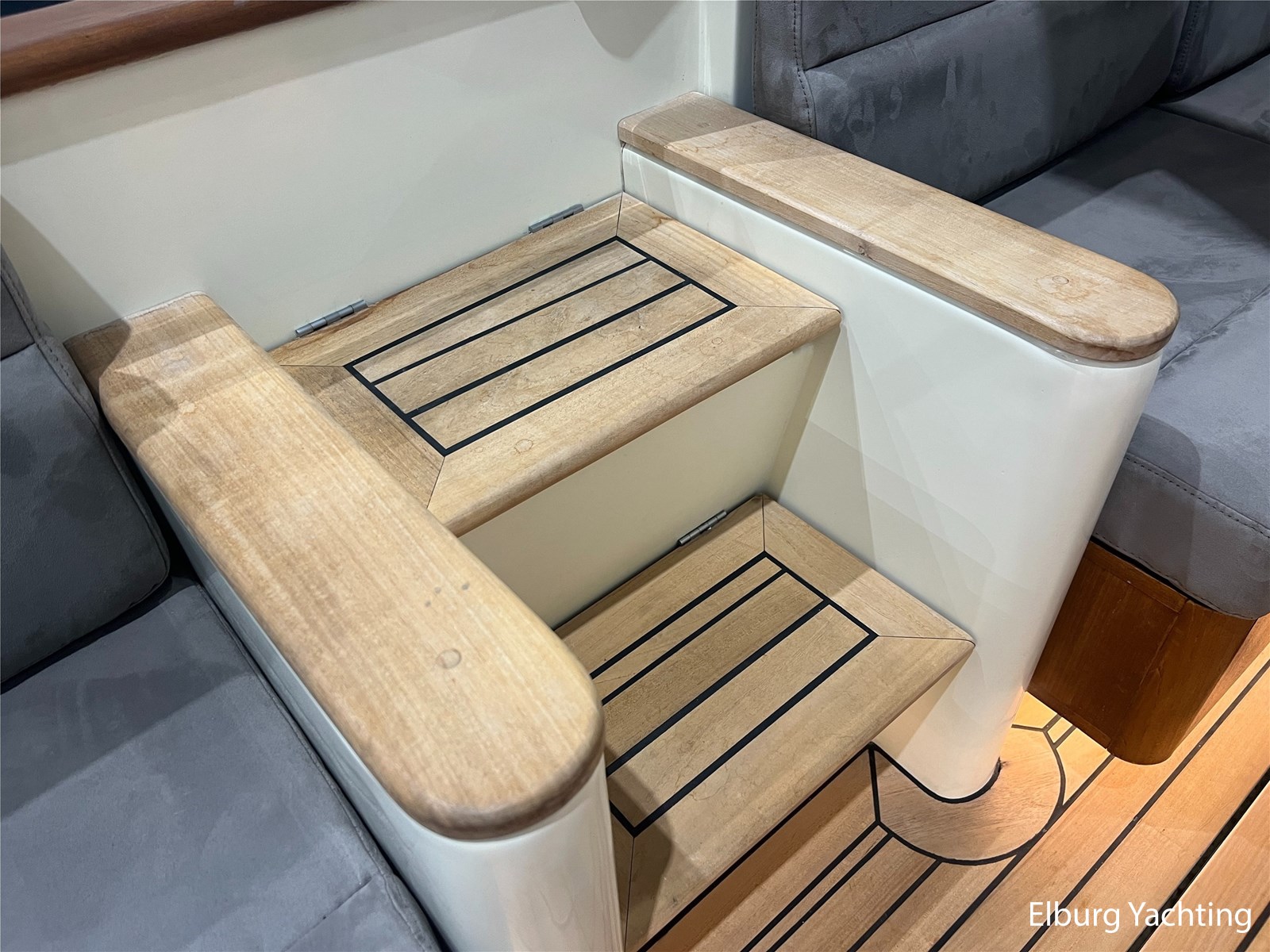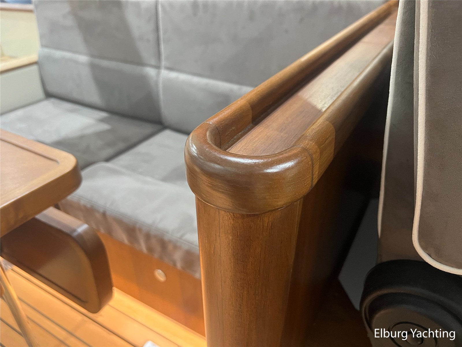 - Full oak interior with solid moldings, silk gloss varnished. Exterior cockpit finish is in teak wood.