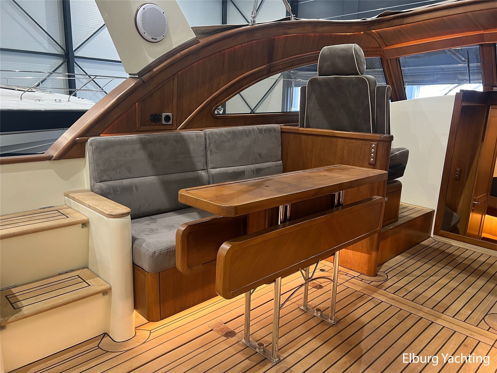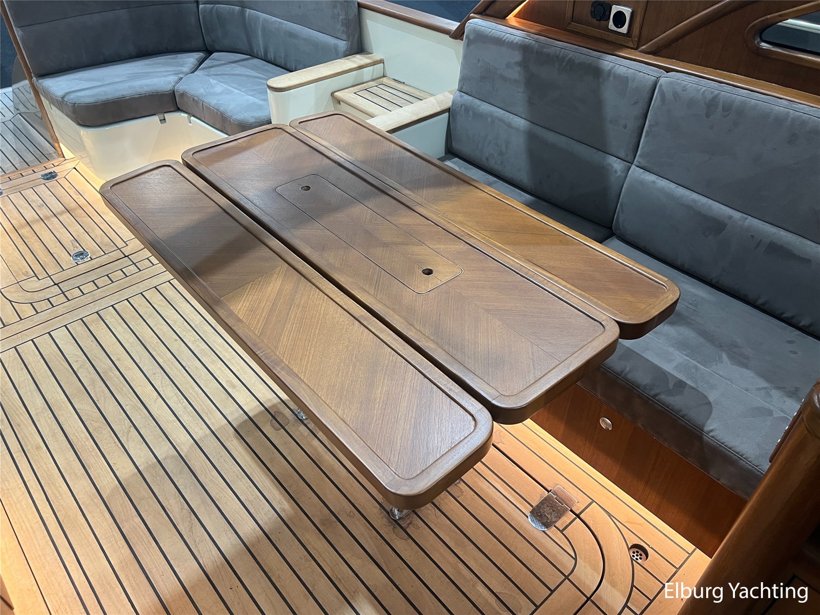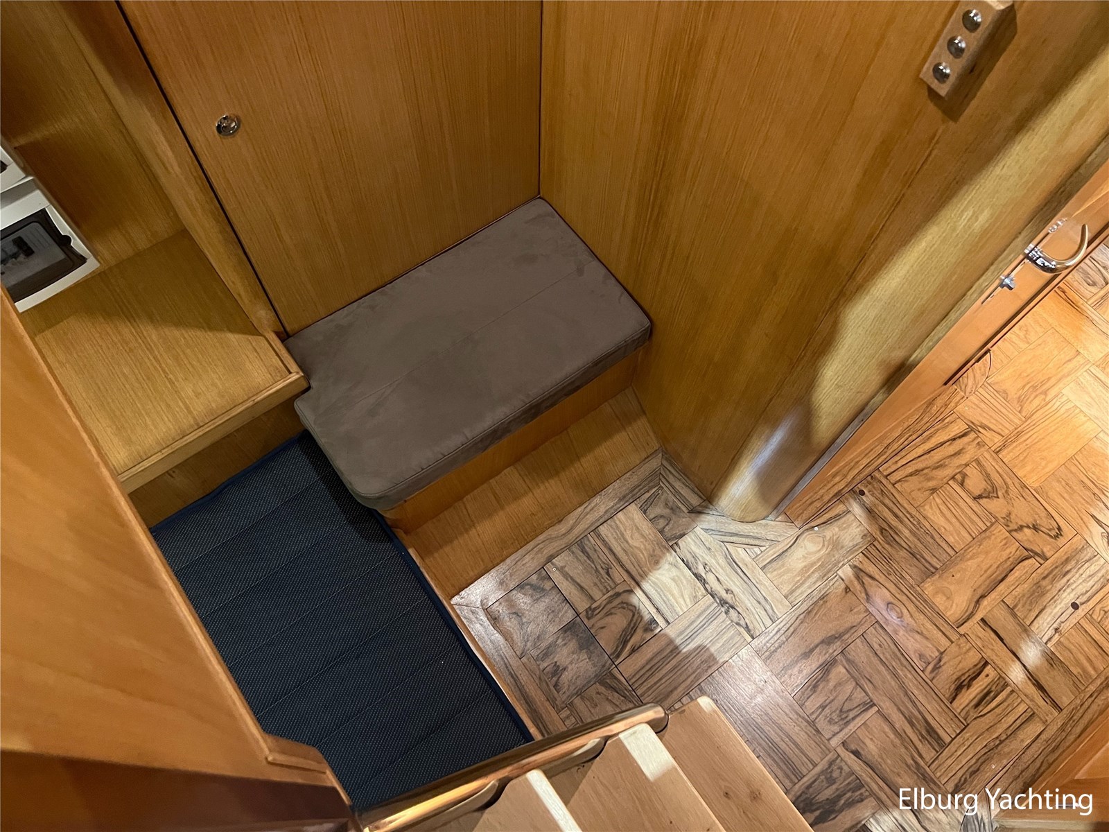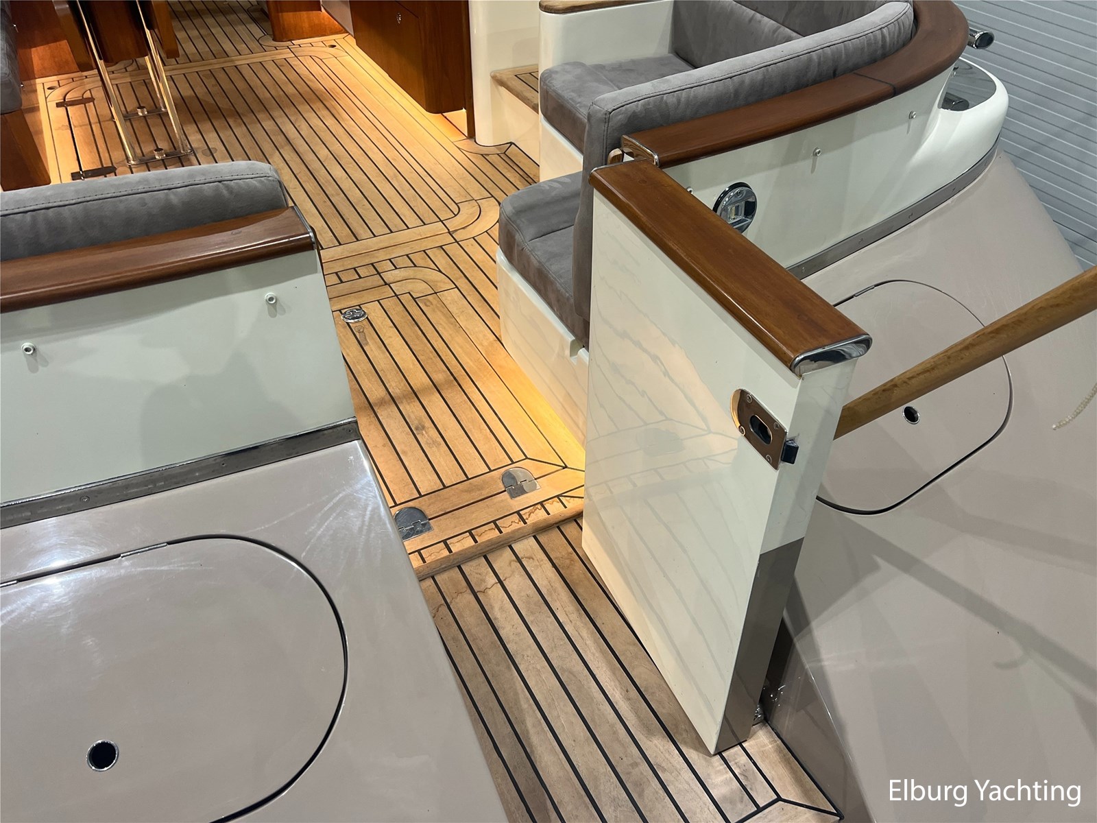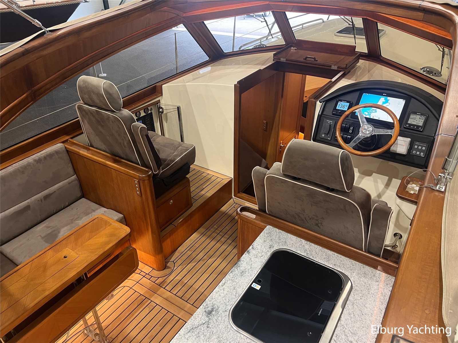 - Full oak interior with solid moldings, silk gloss varnished. Exterior cockpit finish is in teak wood.