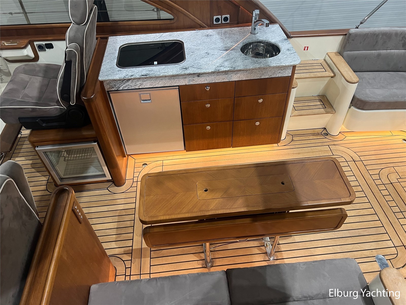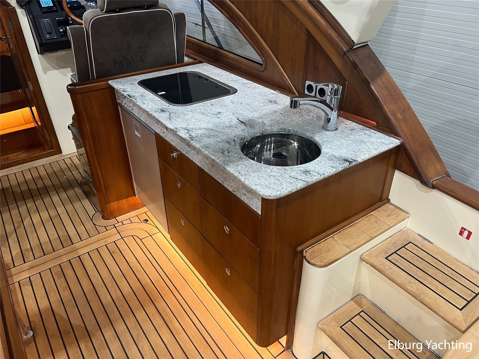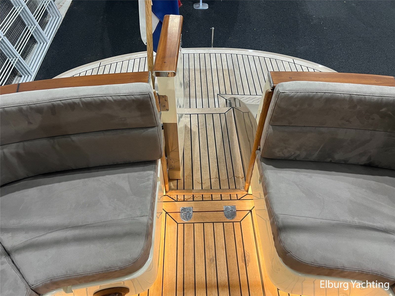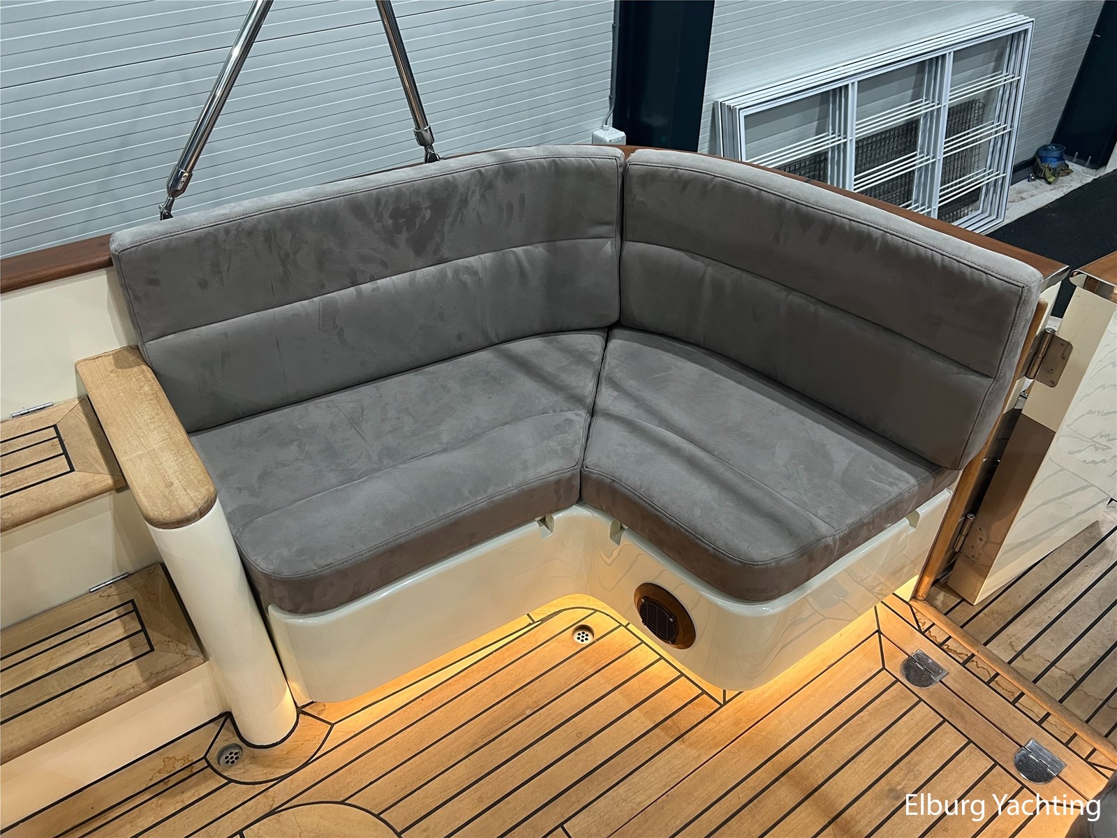 - Full oak interior with solid moldings, silk gloss varnished. Exterior cockpit finish is in teak wood.