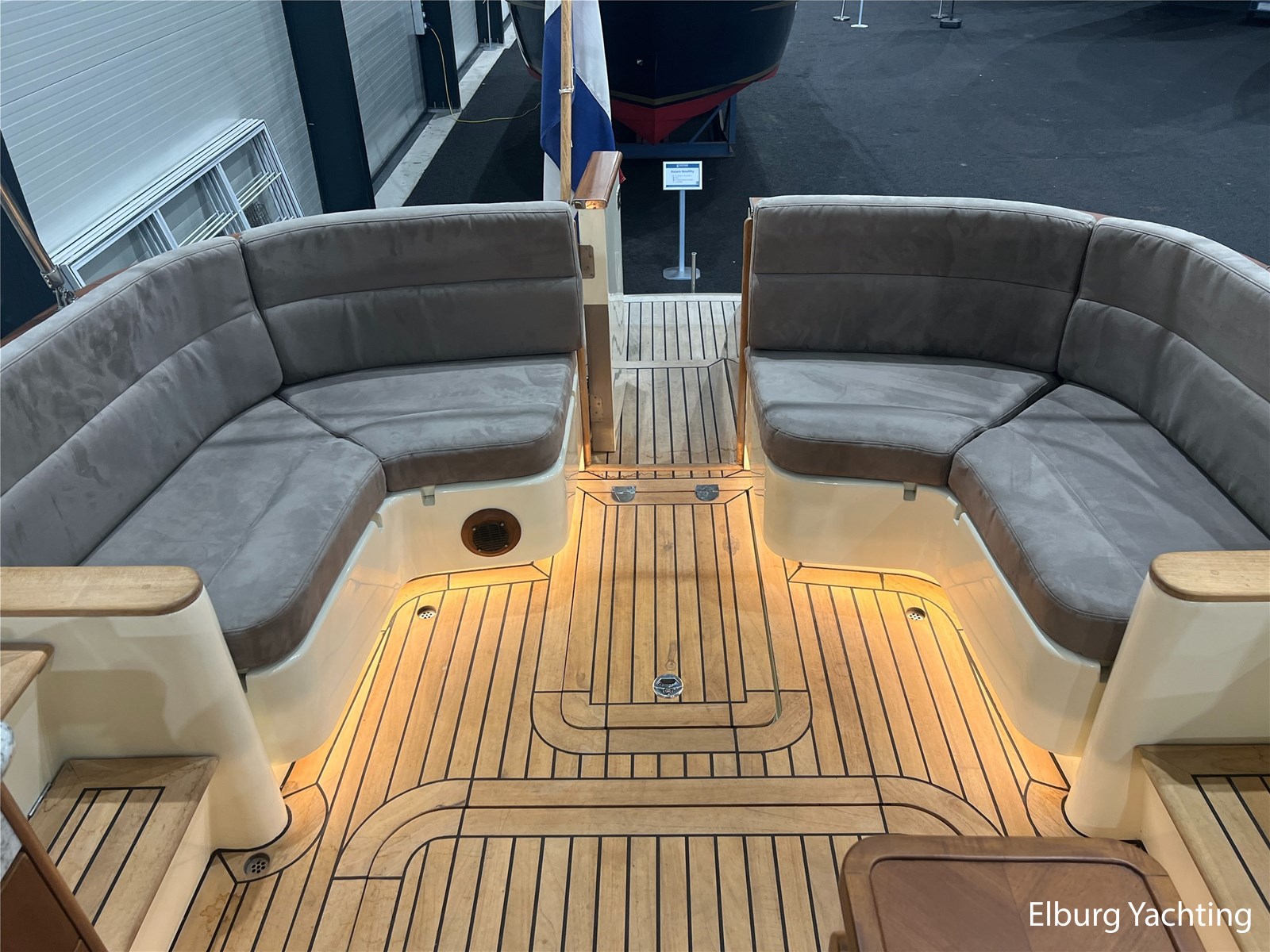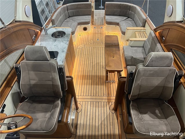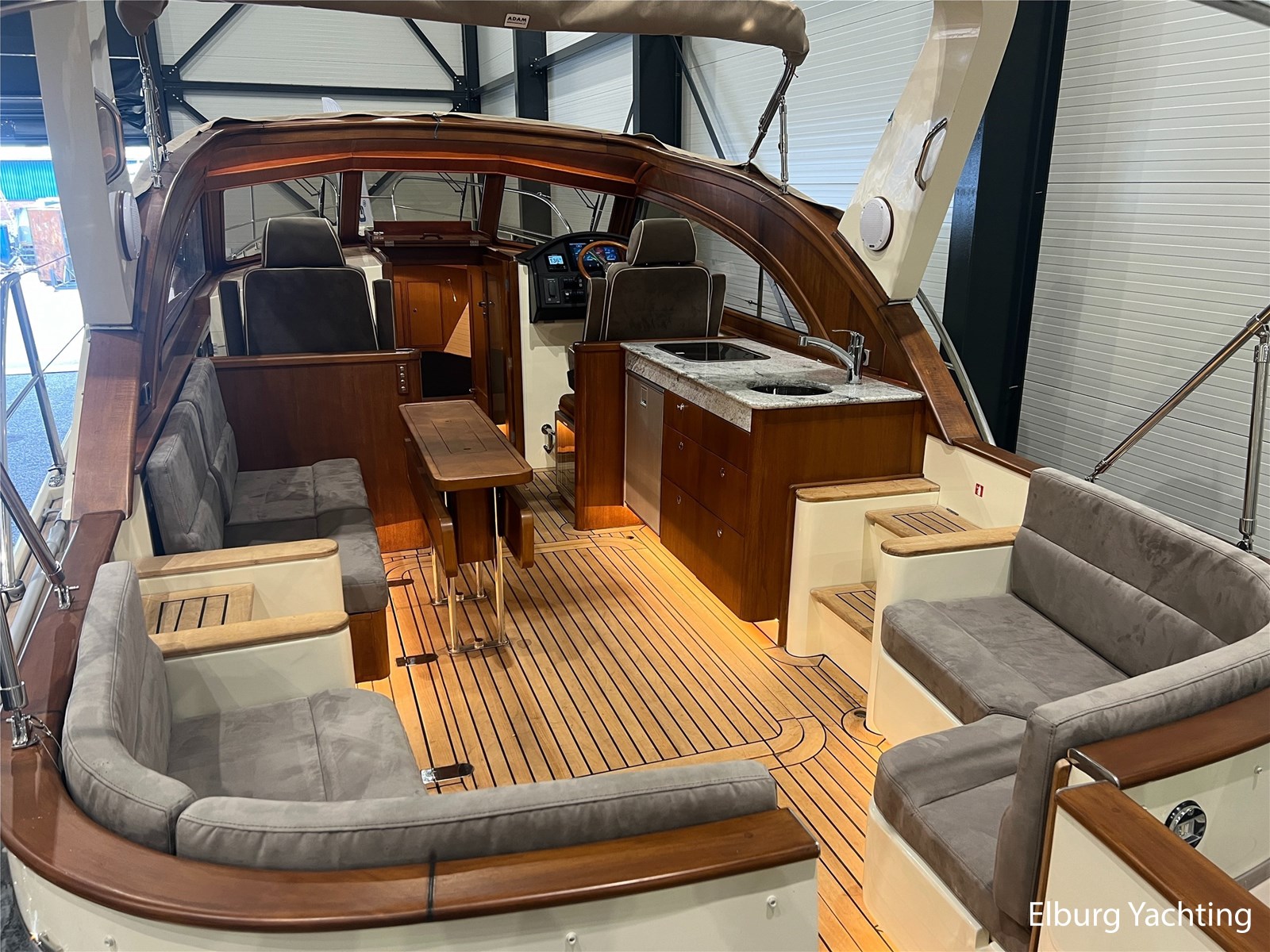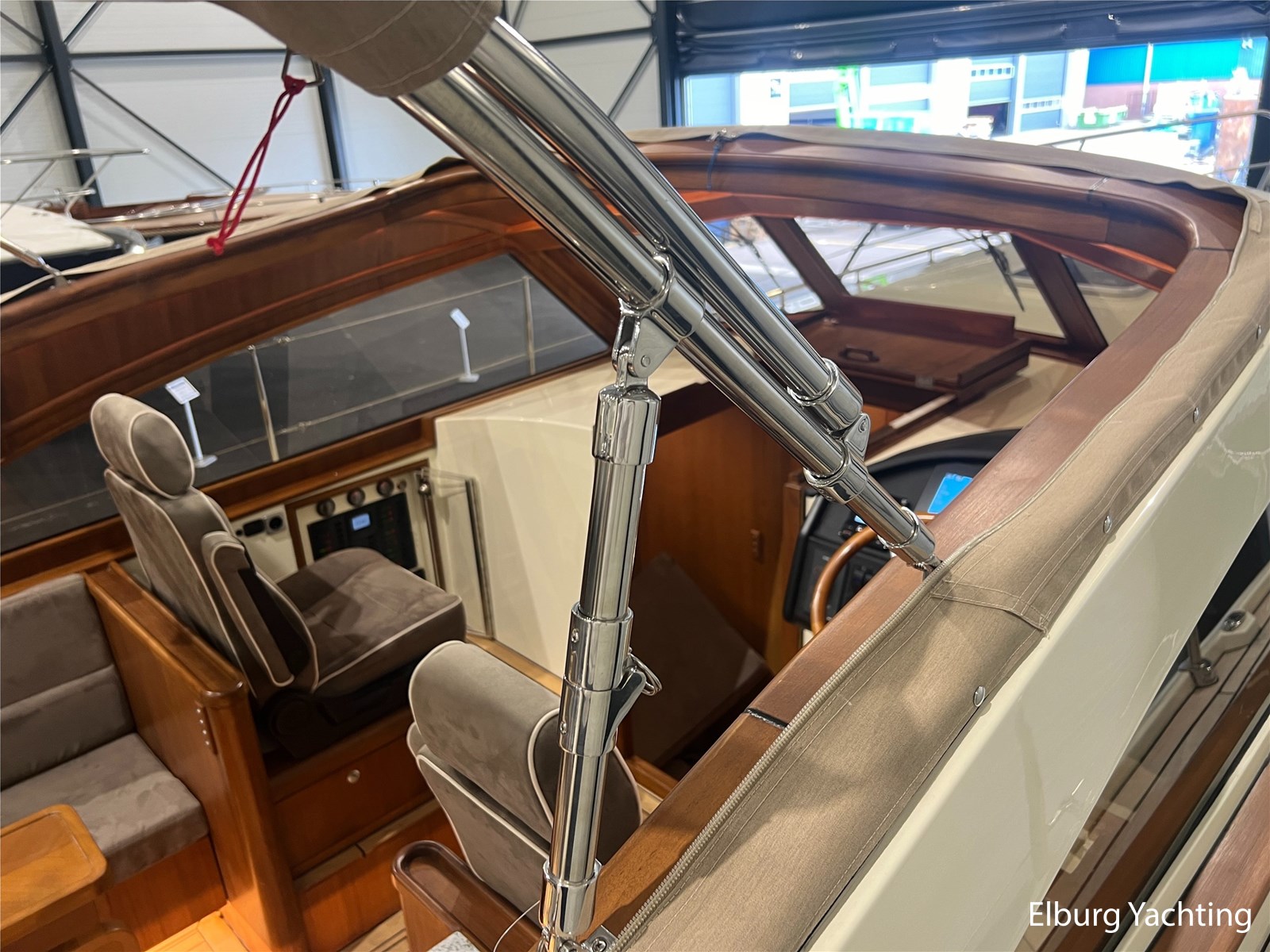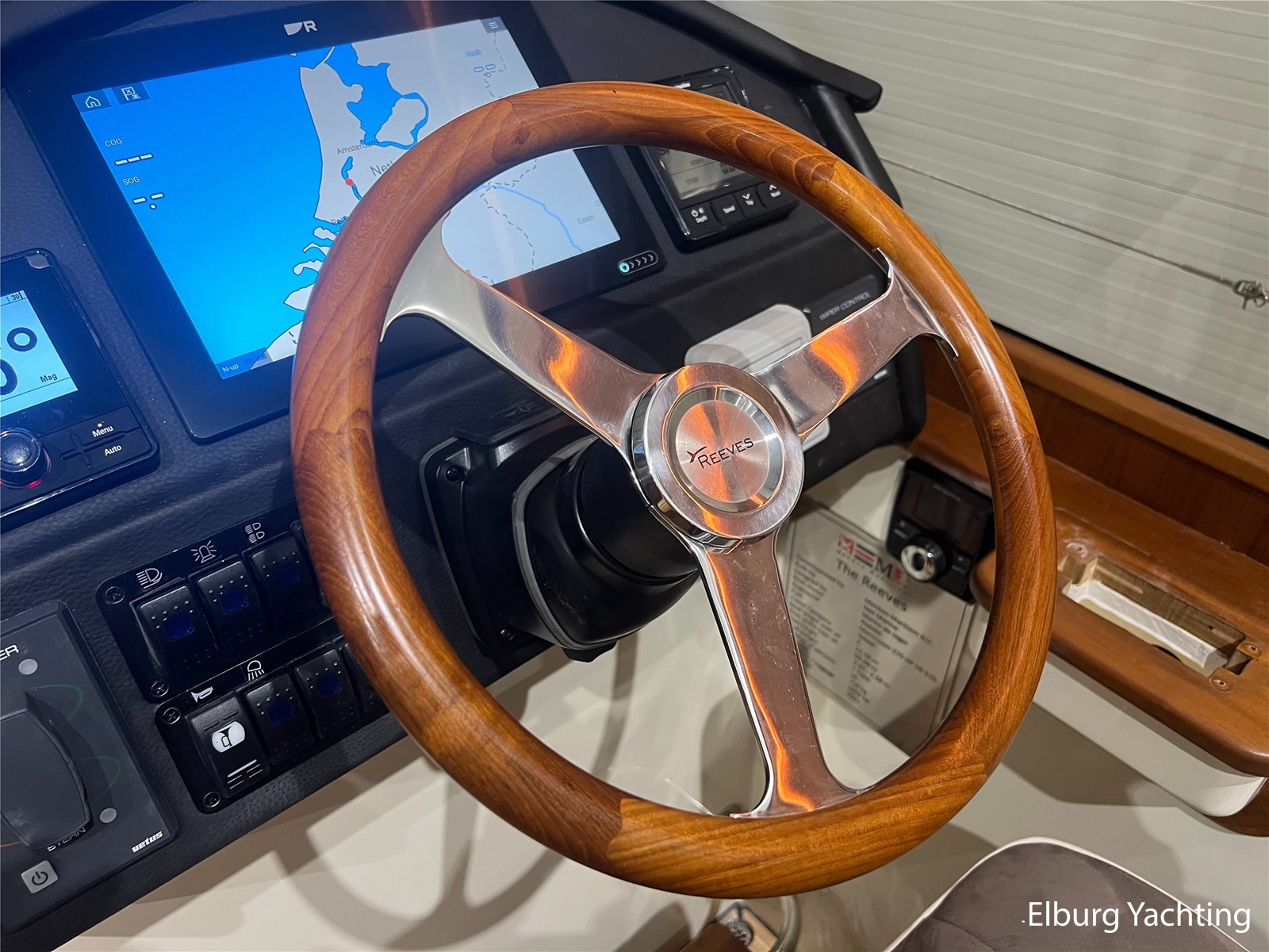 With her spacious open cockpit and beautiful cruising characteristics, this Reeves 36 is a wonderful vessel to be on the go. This yacht features include: Full oak interior with solid moldings, electric water supply with pressure vessel (hydrophore) and Grohe faucets in kitchen and shower room, silk gloss varnish, teak floor, Bruynzeel veneer in cabin with solid headboards, comfortable sofas in cabin, LED lighting above entrance and in forepeak, 2 x reading light by the bed, roof hatch with combined screen-blind, many easily accessible storage compartments + hanging locker, folding table, accessible gas spring hatches to technical areas, storage compartments in the benches, cockpit surround in solid teak, optimally insulated engine room with de-trimming, seat and back cushions on all benches, zippered aft tent, 5 blade propeller, Zipwake automatic trim system, dual fuel filters, in the current asking price is a 250 hp Yanmar included.
