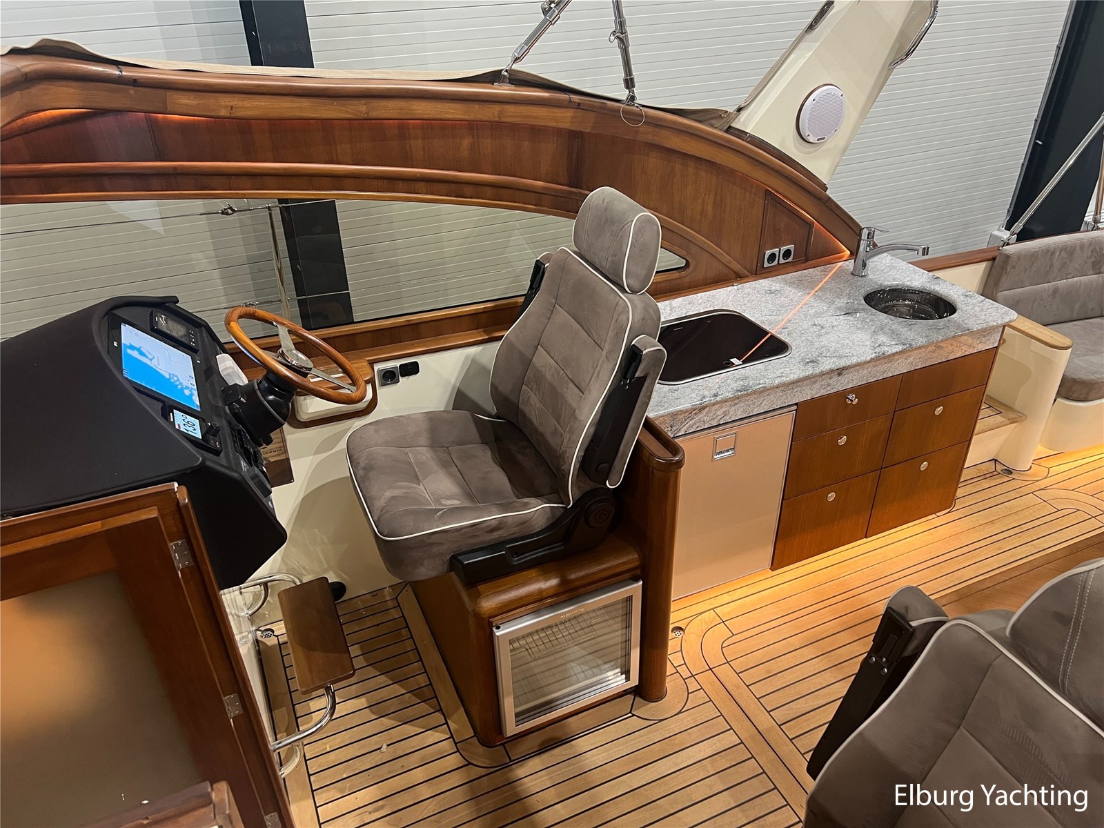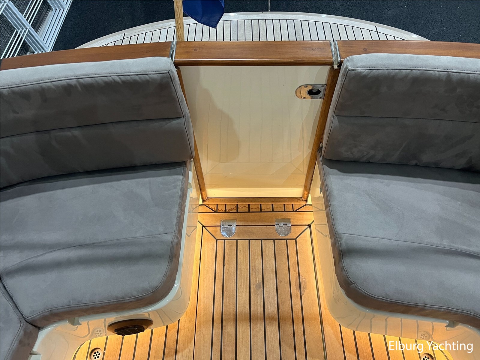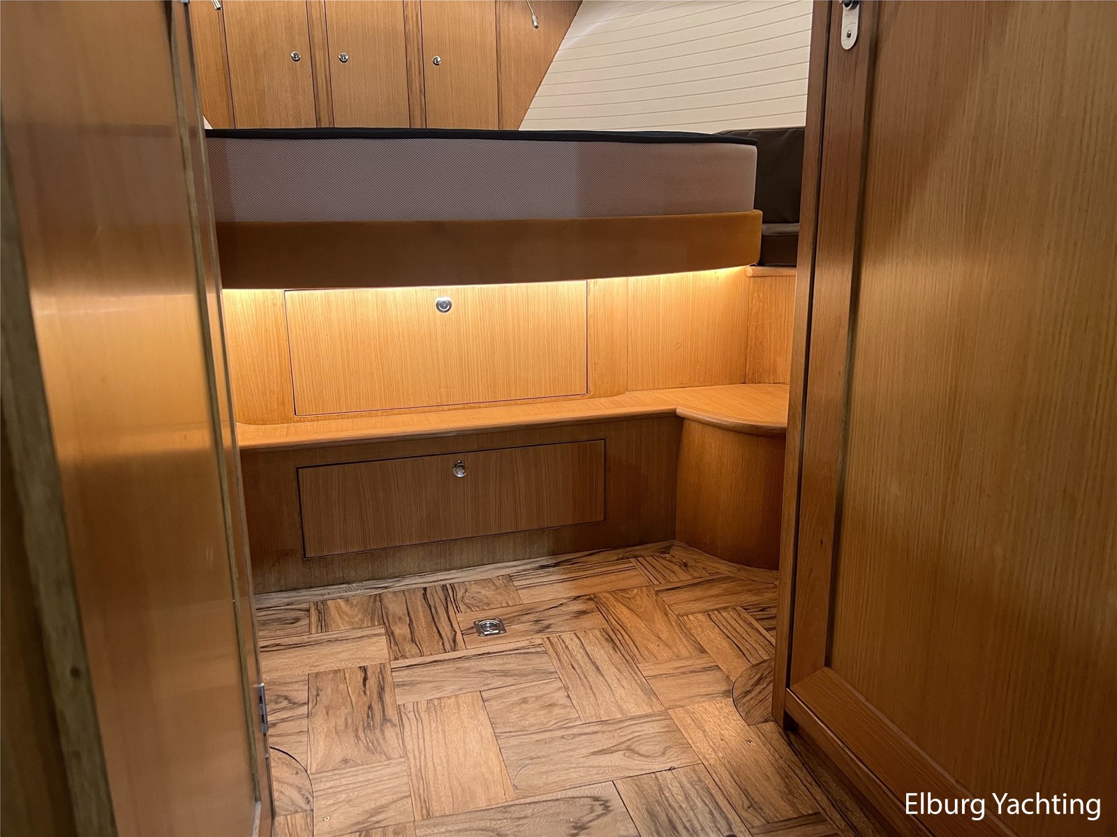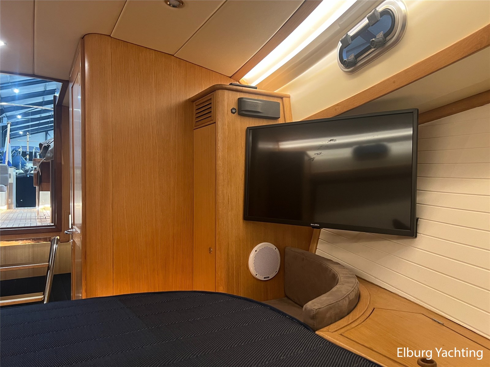 With her spacious open cockpit and beautiful cruising characteristics, this Reeves 36 is a wonderful vessel to be on the go. This yacht features include: Full oak interior with solid moldings, electric water supply with pressure vessel (hydrophore) and Grohe faucets in kitchen and shower room, silk gloss varnish, teak floor, Bruynzeel veneer in cabin with solid headboards, comfortable sofas in cabin, LED lighting above entrance and in forepeak, 2 x reading light by the bed, roof hatch with combined screen-blind, many easily accessible storage compartments + hanging locker, folding table, accessible gas spring hatches to technical areas, storage compartments in the benches, cockpit surround in solid teak, optimally insulated engine room with de-trimming, seat and back cushions on all benches, zippered aft tent, 5 blade propeller, Zipwake automatic trim system, dual fuel filters, in the current asking price is a 250 hp Yanmar included.