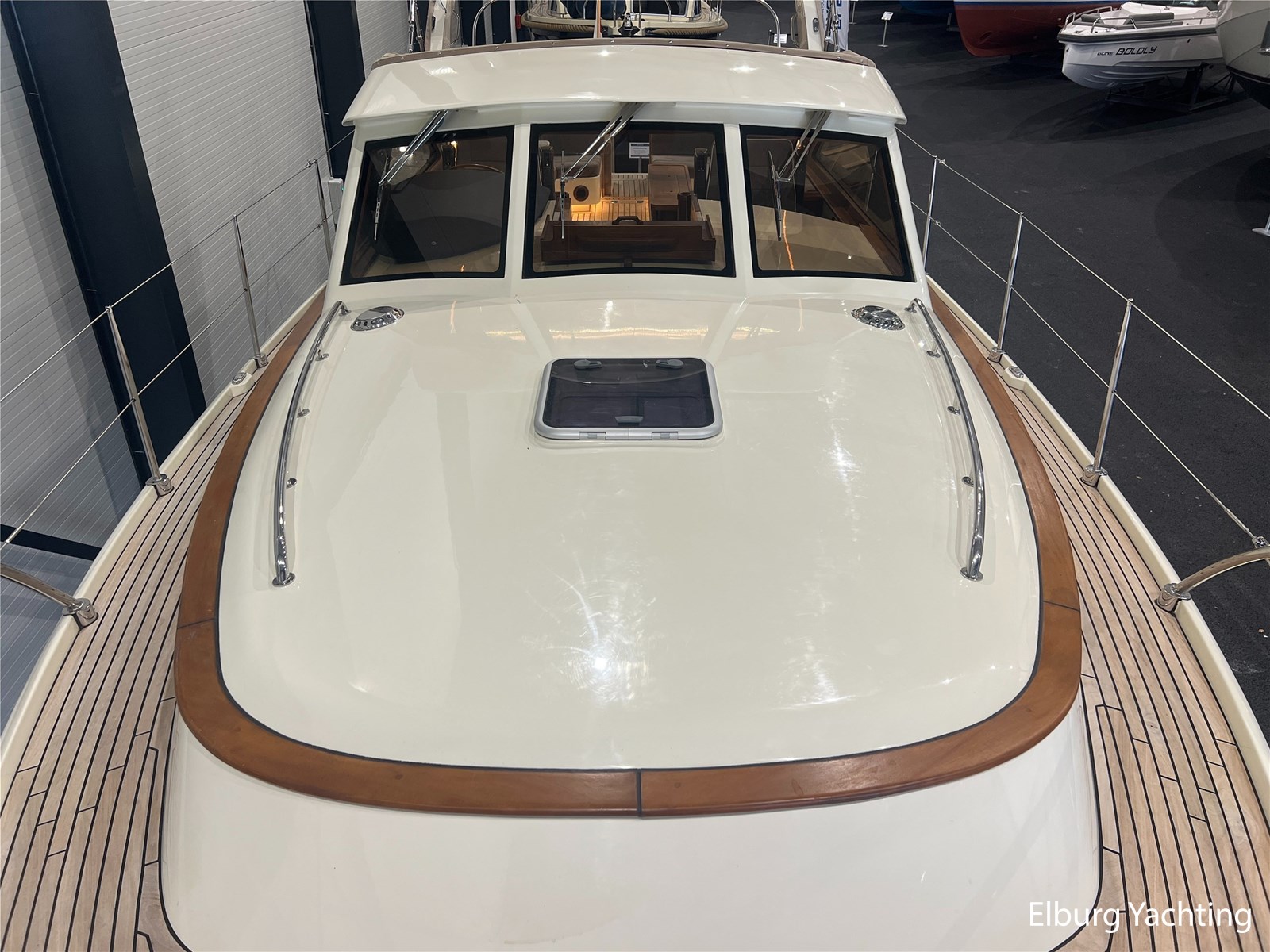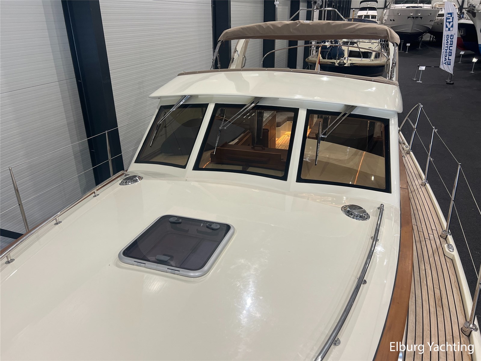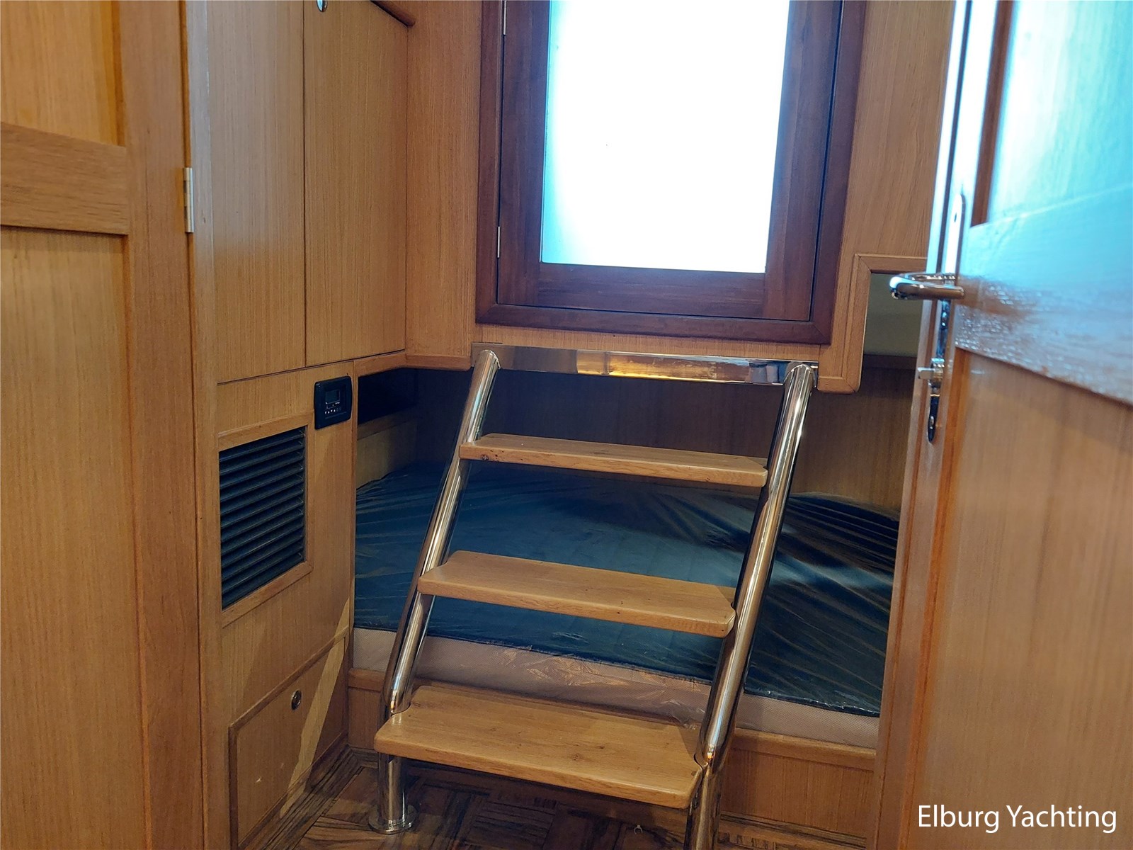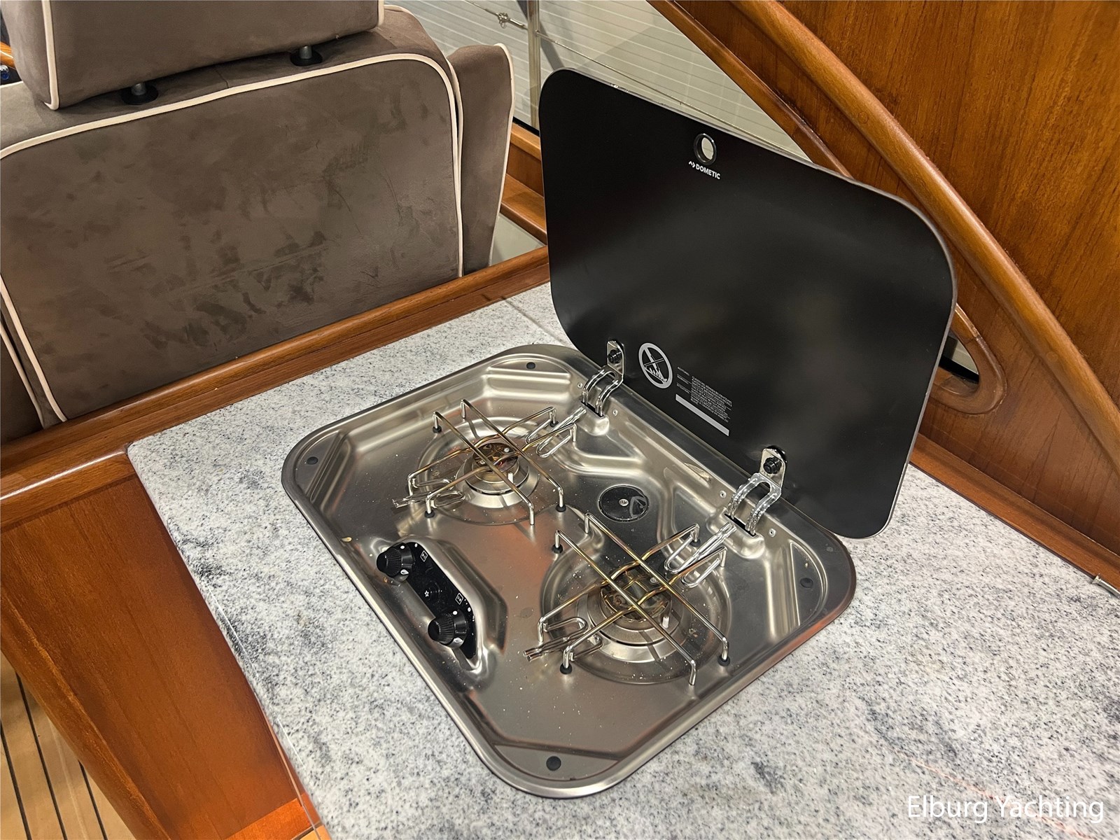 With her spacious open cockpit and beautiful cruising characteristics, this Reeves 36 is a wonderful vessel to be on the go. This yacht features include: Full oak interior with solid moldings, electric water supply with pressure vessel (hydrophore) and Grohe faucets in kitchen and shower room, silk gloss varnish, teak floor, Bruynzeel veneer in cabin with solid headboards, comfortable sofas in cabin, LED lighting above entrance and in forepeak, 2 x reading light by the bed, roof hatch with combined screen-blind, many easily accessible storage compartments + hanging locker, folding table, accessible gas spring hatches to technical areas, storage compartments in the benches, cockpit surround in solid teak, optimally insulated engine room with de-trimming, seat and back cushions on all benches, zippered aft tent, 5 blade propeller, Zipwake automatic trim system, dual fuel filters, in the current asking price is a 250 hp Yanmar included.