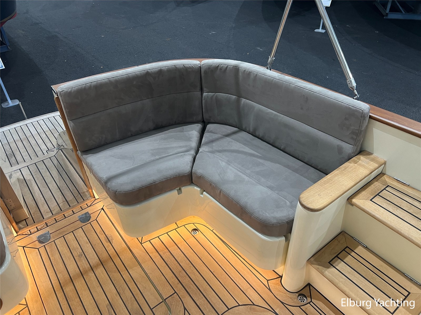 - Integrated bathing platform with teak lined + stainless steel luxury swim ladder