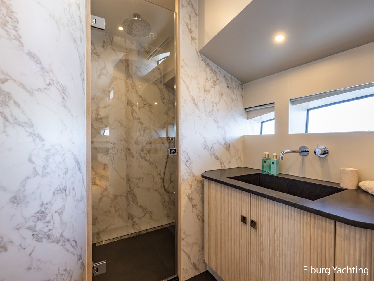 - 6 x 24V / 5000Ah Li-ion (service) + 2 x 160Ah (start) + 1 x 90Ah (generator) + 8 x 160Ah (bow- and stern thruster)