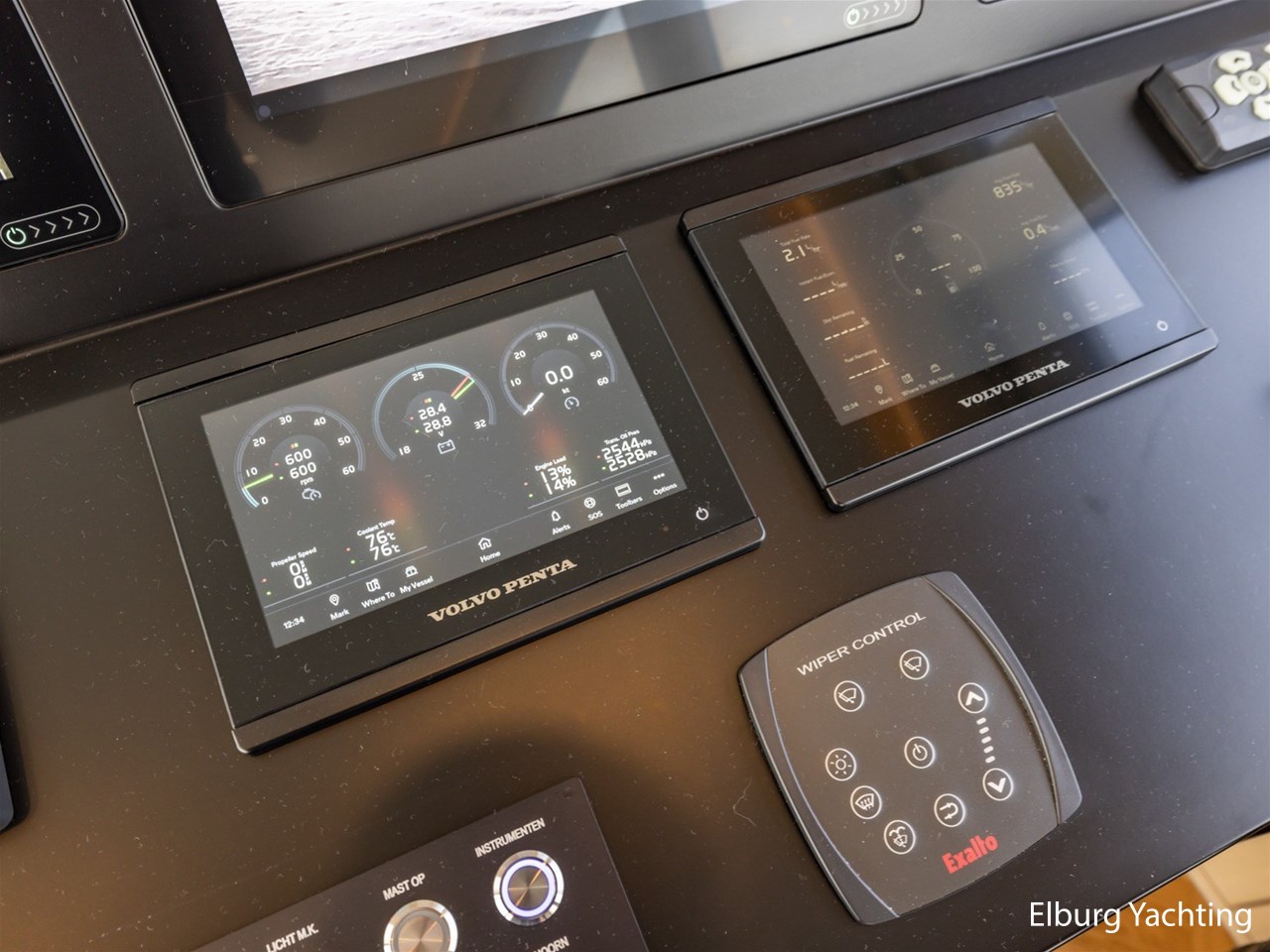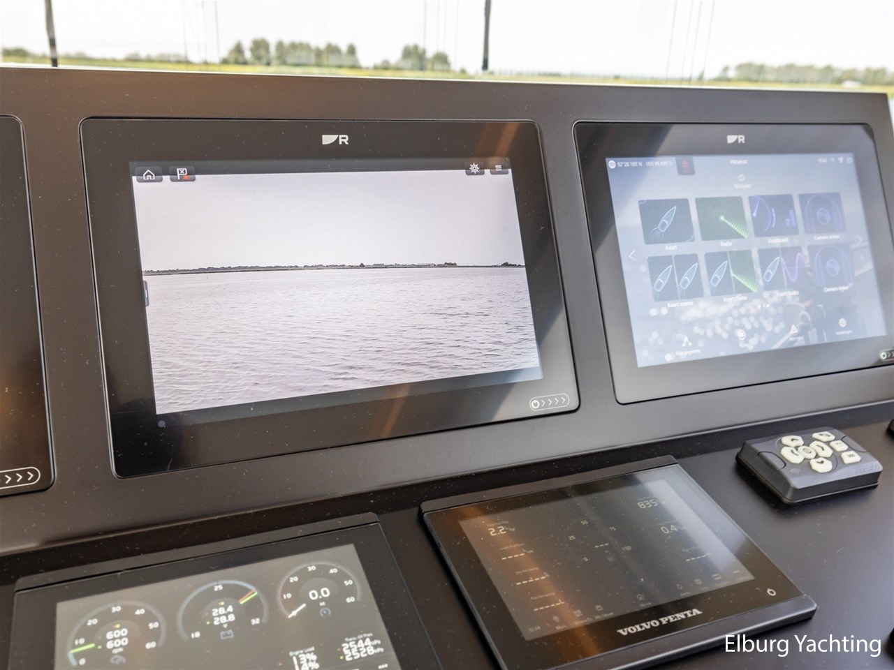 - 3 x Raymarine Axiom 12 at indoor steering position + 2 x Raymarine Axiom 12 at steering position flybridge