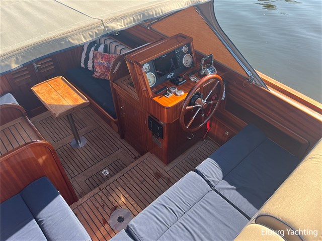 Among other things, the vessel has been equipped with a new Zipwake trim control, Simrad NSS9 EVO3S plotter, fire extinguishing system in the engine room, extra ventilation for the engines, custom-made harbour cloth fitting over the entire vessel, Victron Multiplus and the vessel is equipped with a GPS Onntrack tracking system. Besides the renewed aspects, this ship also has a bimini, electric engine hatch, R.V.S. railing around sun deck and foredeck, R.V.S. bollards, folding R.V.S. frogs, integrated R.V.S. bathing ladder, electric support for opening engine room, radio-CD player, cable fender, R.V.S. anchor. In short, a lovely ship for a day on the water with the possibility of spending longer weekends on it.