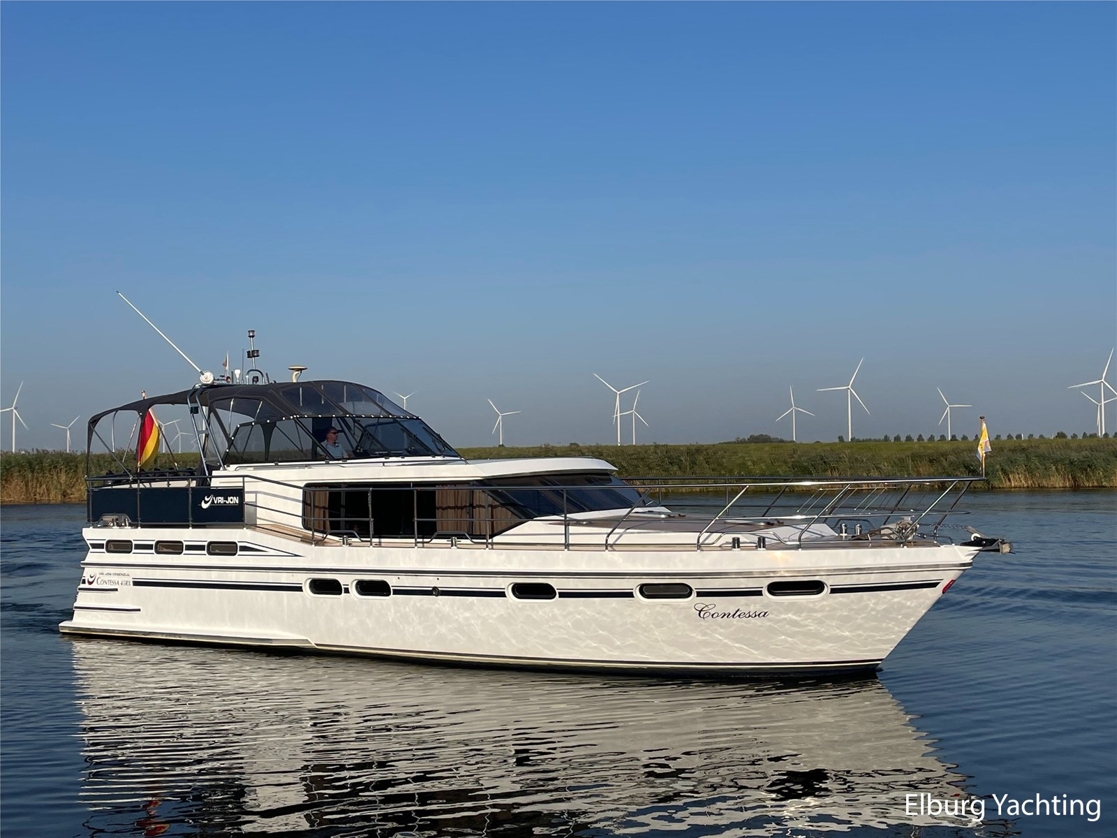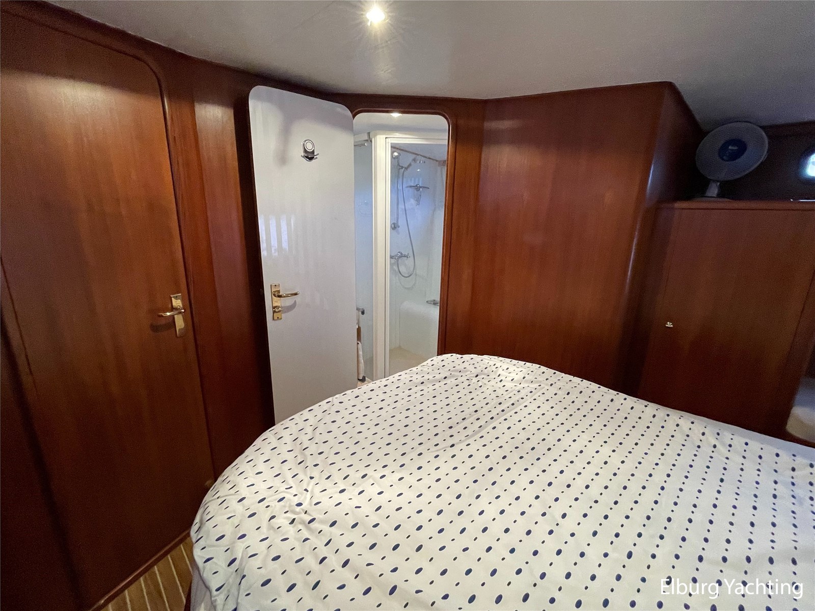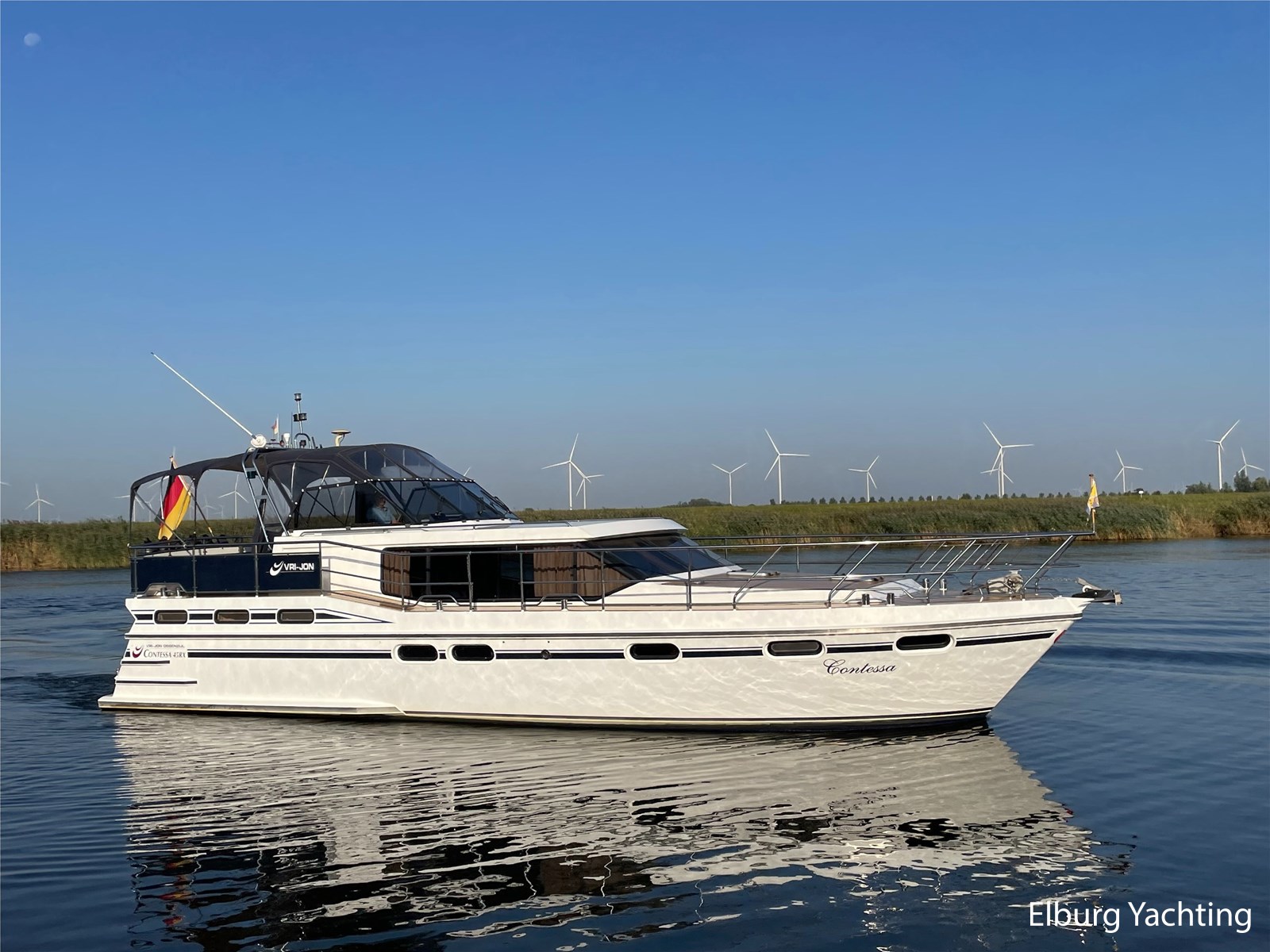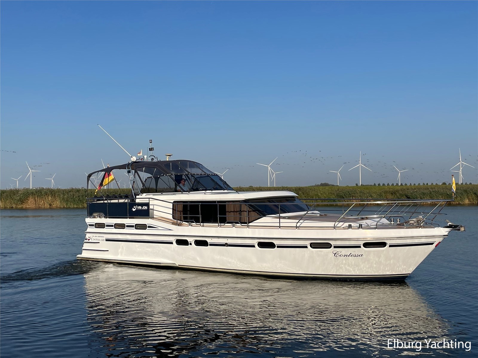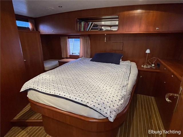 Spacious Vri-Jon Contessa 45RX built by the well-known Dutch Vri-Jon yard in Ossenzijl. This Vri-Jon is a perfect cruiser to explore Dutch, but also foreign waters with. She is equipped with a technically advanced rotating nozzle with pulling propeller. This mechanism is very efficient and gives a lot of control when manoeuvring the yacht. Throughout the yacht, the Vri-Jon yard's years of experience stand out well. The spacious saloon with storage space, cosy dinette opposite the spacious galley, the pleasant forward cabin with its own wet cell and, of course, the spacious aft cabin with free-standing bed and spacious wet cell with shower cubicle and washer/dryer combination. The yacht is equipped all around with a low-maintenance cork deck with a stainless steel sea railing. The outside steering position is equipped with a clear Navio boat control system in combination with a Navio Power steering system that also controls the autopilot. The yacht is also equipped with a recent Simrad chart plotter and electric anchor winch with remote control. This yacht is completely gas - free. Minimum headroom is appr. 2.75 metres. For questions and/or to make an appointment, you are welcome 7 days a week at Elburg Yachting.