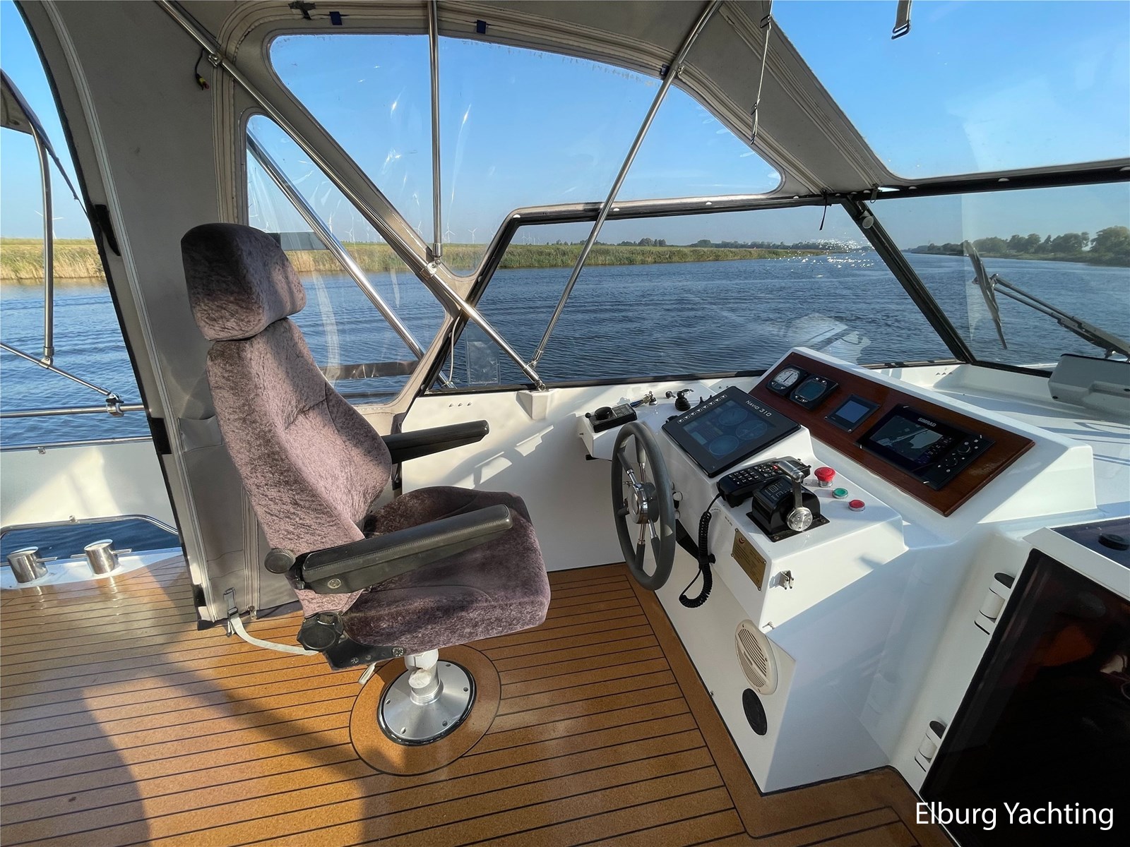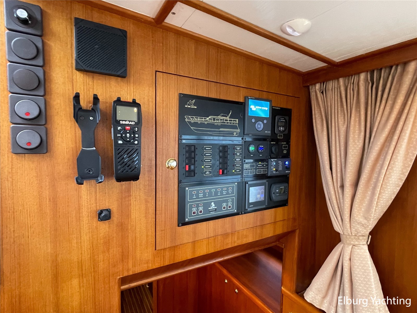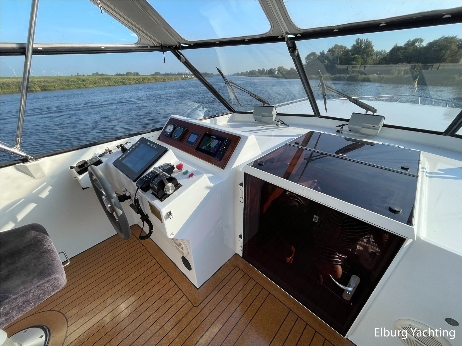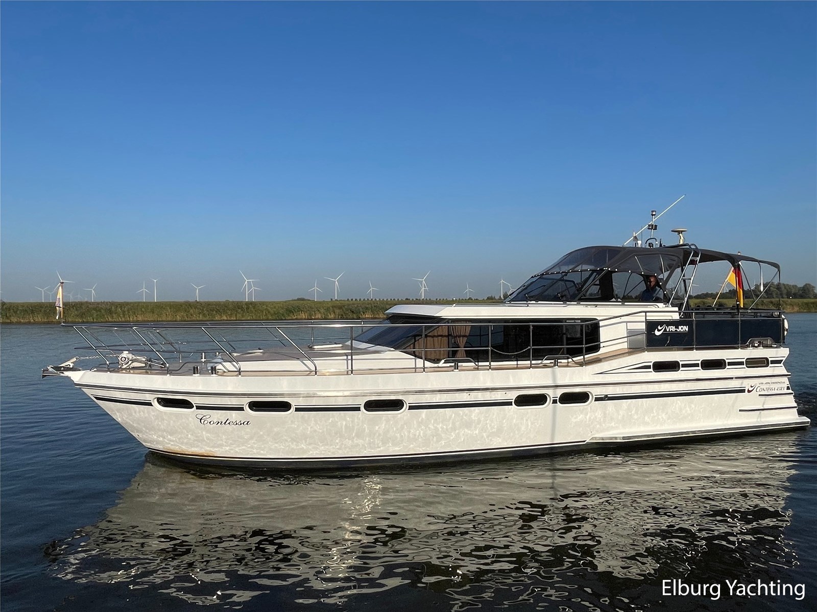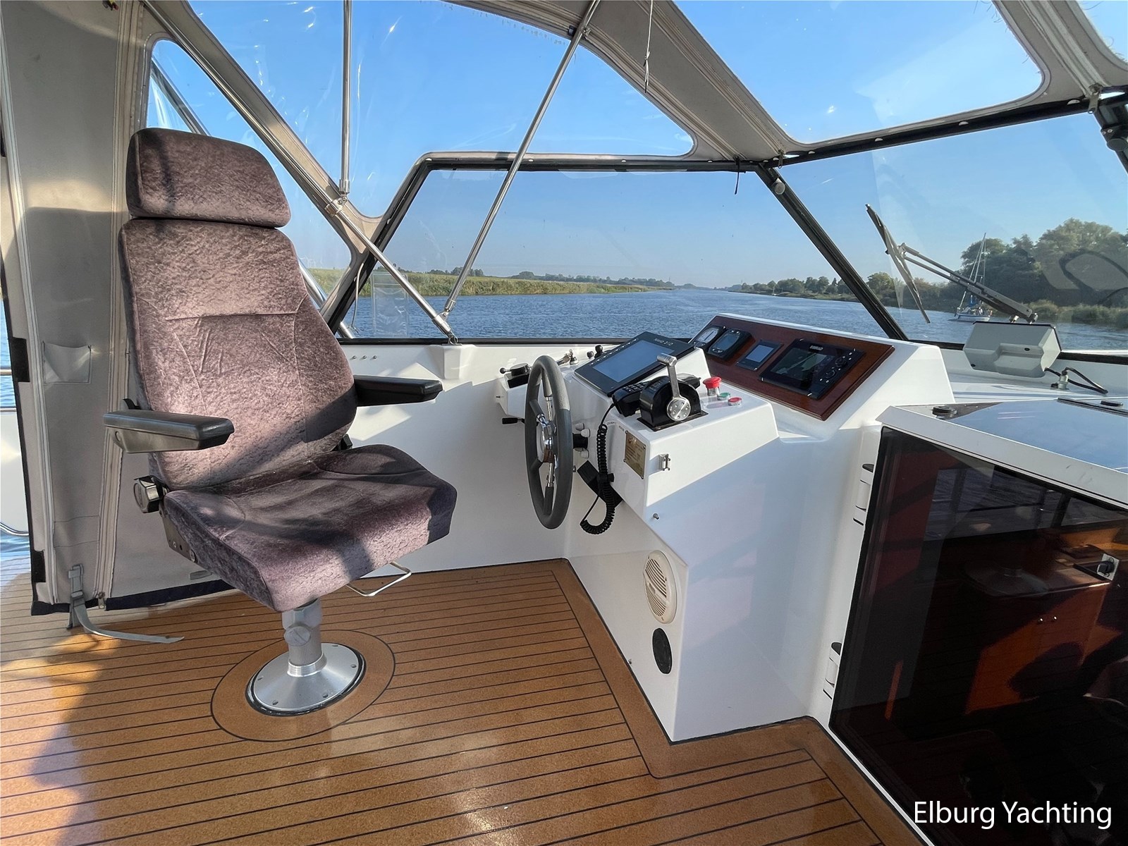 Spacious Vri-Jon Contessa 45RX built by the well-known Dutch Vri-Jon yard in Ossenzijl. This Vri-Jon is a perfect cruiser to explore Dutch, but also foreign waters with. She is equipped with a technically advanced rotating nozzle with pulling propeller. This mechanism is very efficient and gives a lot of control when manoeuvring the yacht. Throughout the yacht, the Vri-Jon yard's years of experience stand out well. The spacious saloon with storage space, cosy dinette opposite the spacious galley, the pleasant forward cabin with its own wet cell and, of course, the spacious aft cabin with free-standing bed and spacious wet cell with shower cubicle and washer/dryer combination. The yacht is equipped all around with a low-maintenance cork deck with a stainless steel sea railing. The outside steering position is equipped with a clear Navio boat control system in combination with a Navio Power steering system that also controls the autopilot. The yacht is also equipped with a recent Simrad chart plotter and electric anchor winch with remote control. This yacht is completely gas - free. Minimum headroom is appr. 2.75 metres. For questions and/or to make an appointment, you are welcome 7 days a week at Elburg Yachting.