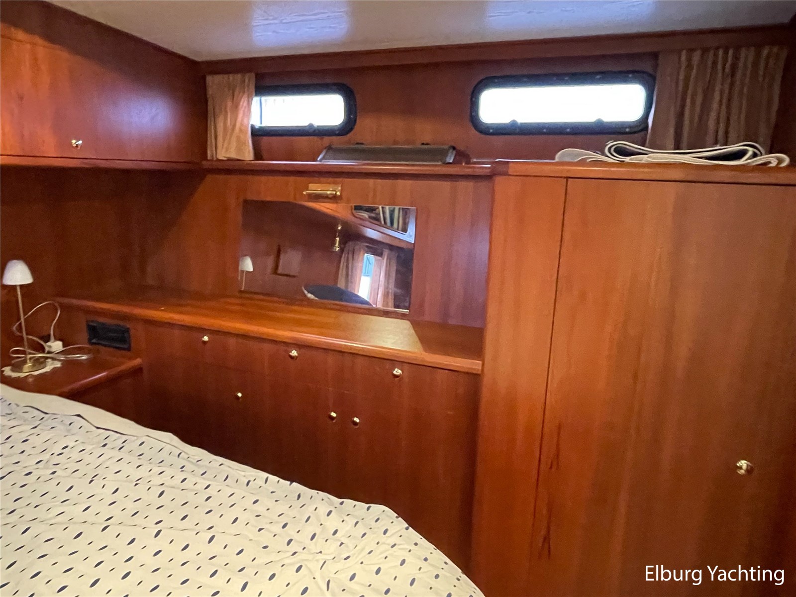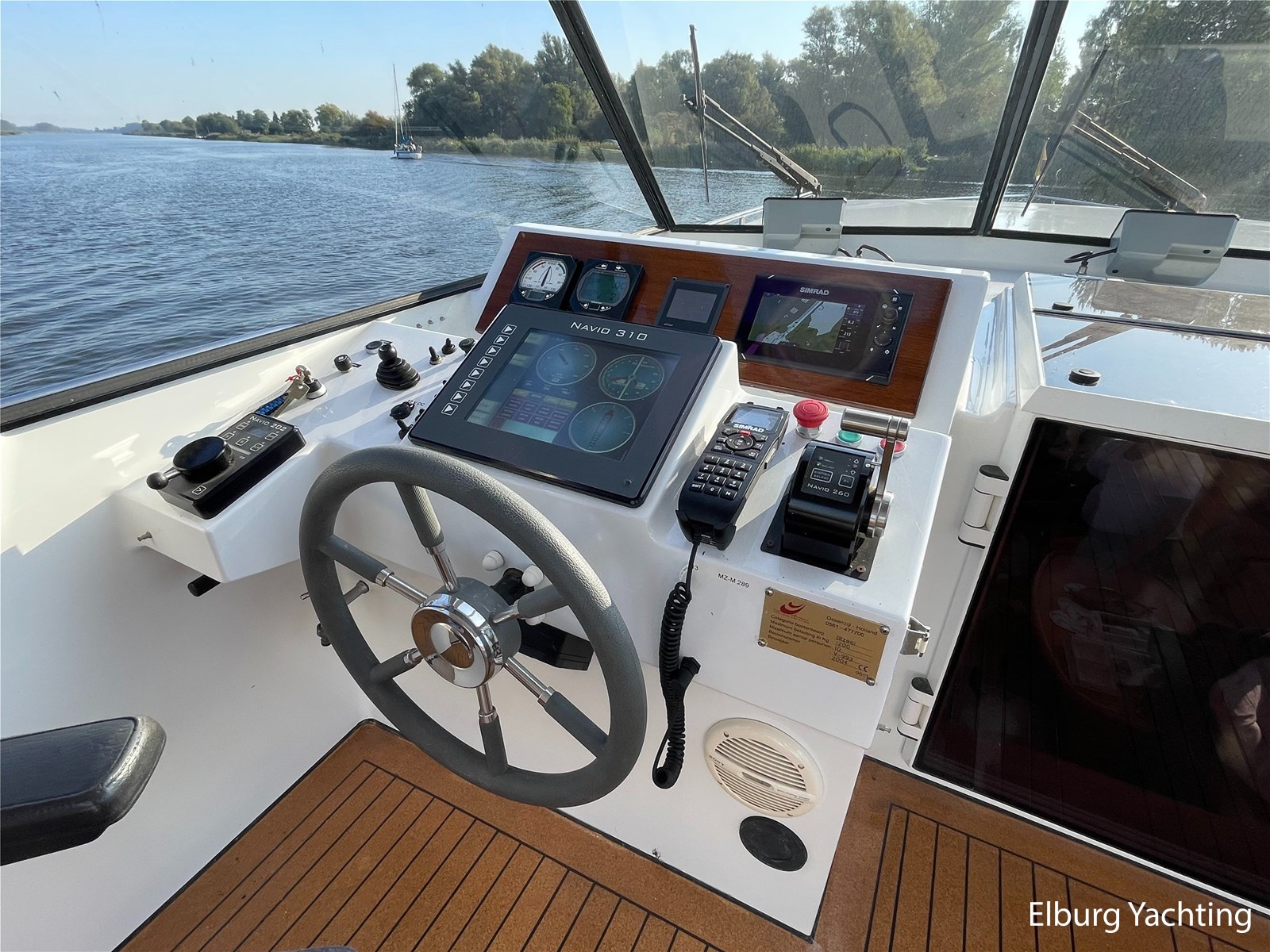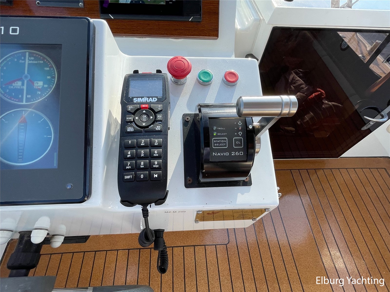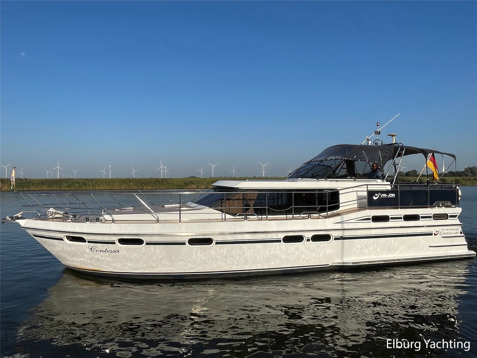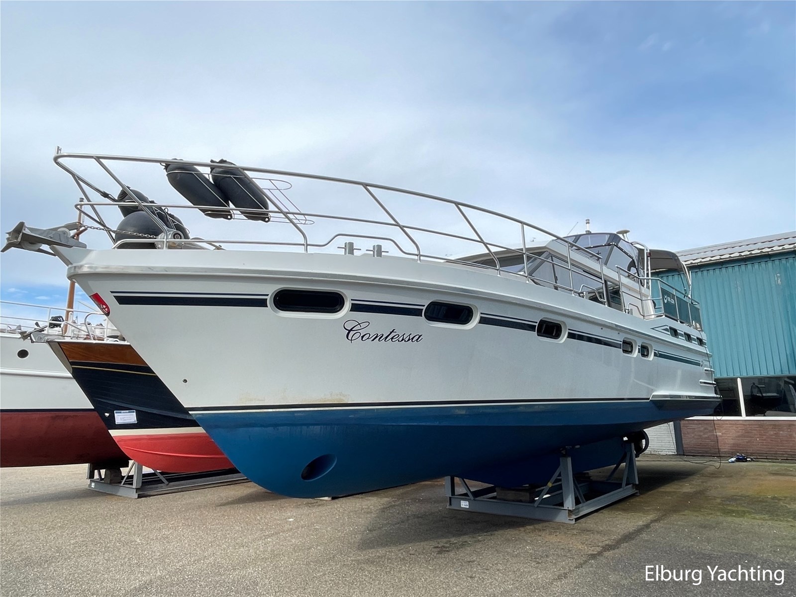 Spacious Vri-Jon Contessa 45RX built by the well-known Dutch Vri-Jon yard in Ossenzijl. This Vri-Jon is a perfect cruiser to explore Dutch, but also foreign waters with. She is equipped with a technically advanced rotating nozzle with pulling propeller. This mechanism is very efficient and gives a lot of control when manoeuvring the yacht. Throughout the yacht, the Vri-Jon yard's years of experience stand out well. The spacious saloon with storage space, cosy dinette opposite the spacious galley, the pleasant forward cabin with its own wet cell and, of course, the spacious aft cabin with free-standing bed and spacious wet cell with shower cubicle and washer/dryer combination. The yacht is equipped all around with a low-maintenance cork deck with a stainless steel sea railing. The outside steering position is equipped with a clear Navio boat control system in combination with a Navio Power steering system that also controls the autopilot. The yacht is also equipped with a recent Simrad chart plotter and electric anchor winch with remote control. This yacht is completely gas - free. Minimum headroom is appr. 2.75 metres. For questions and/or to make an appointment, you are welcome 7 days a week at Elburg Yachting.