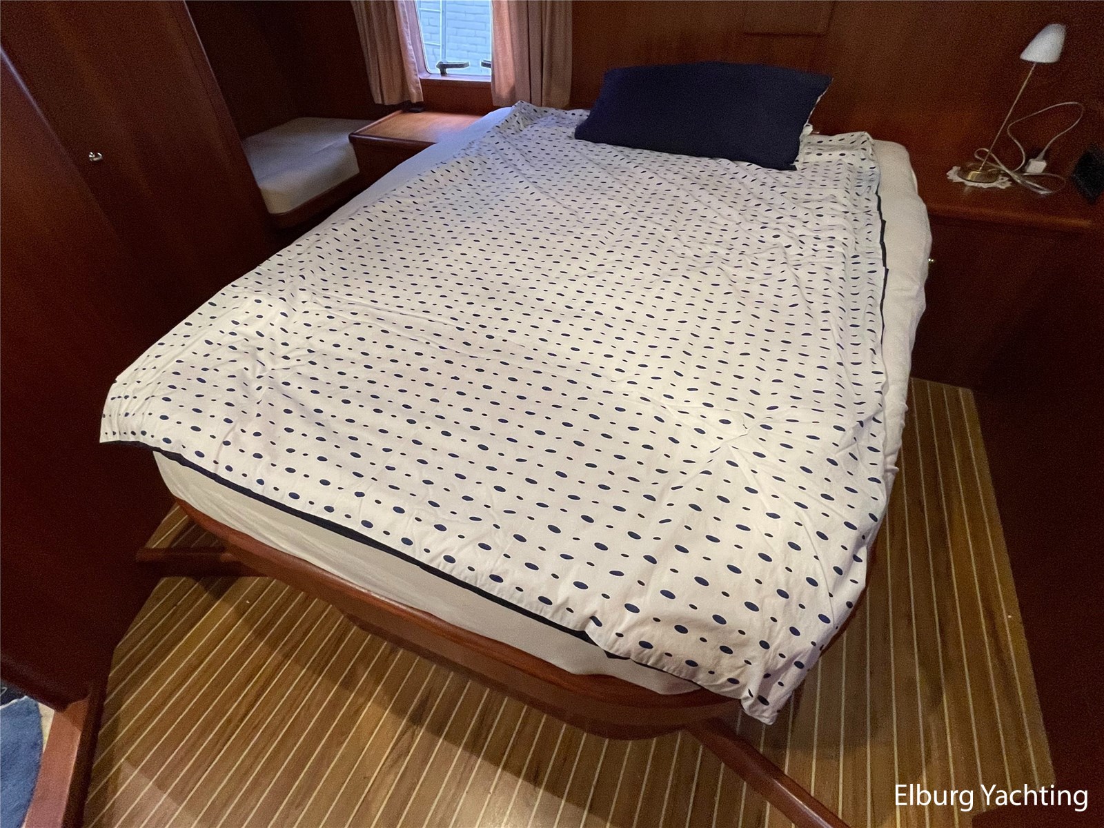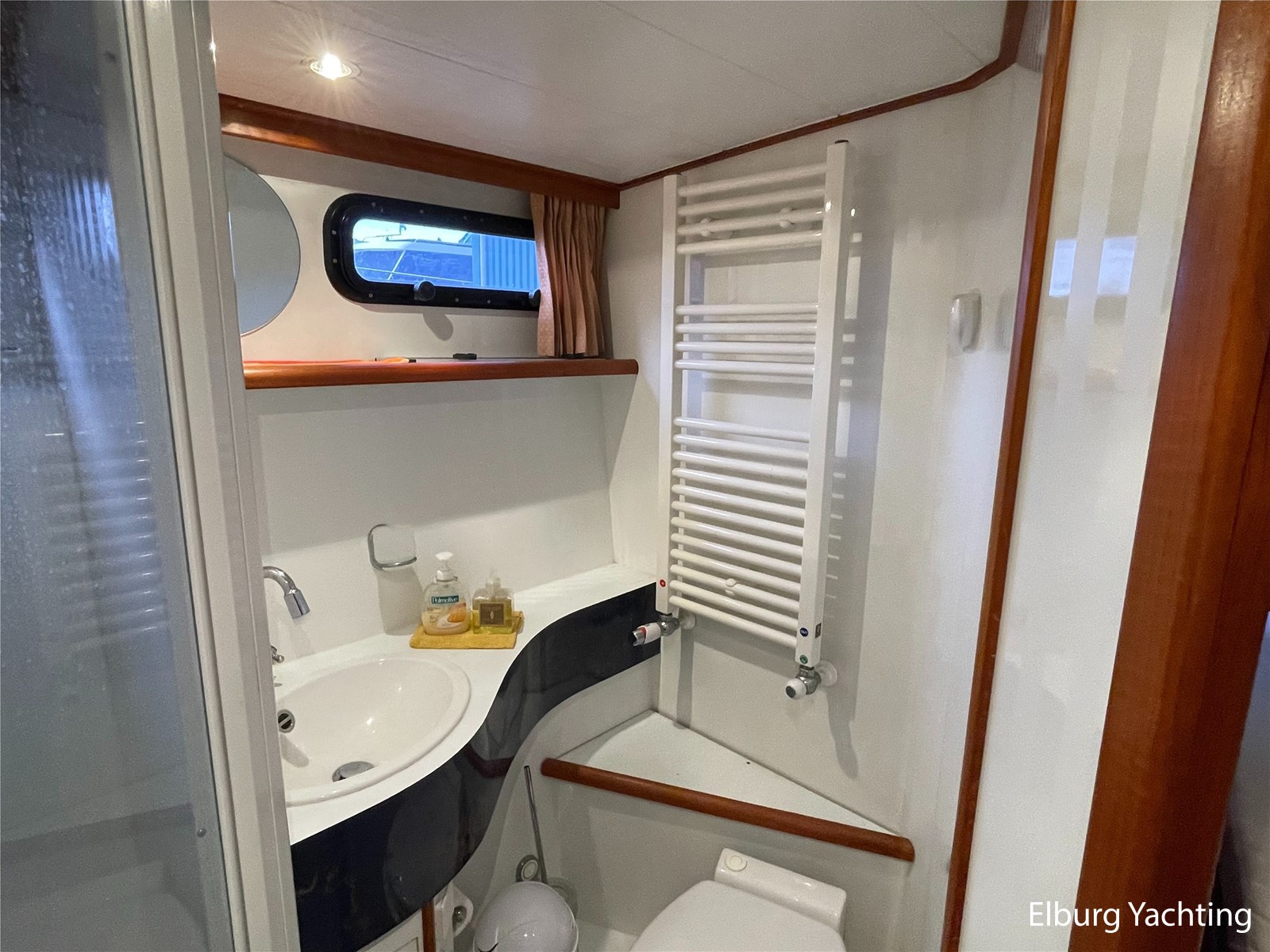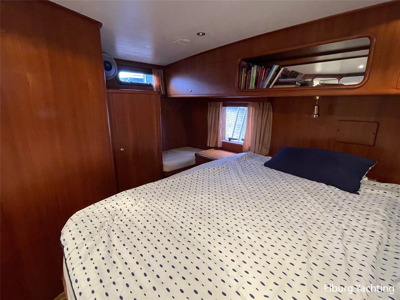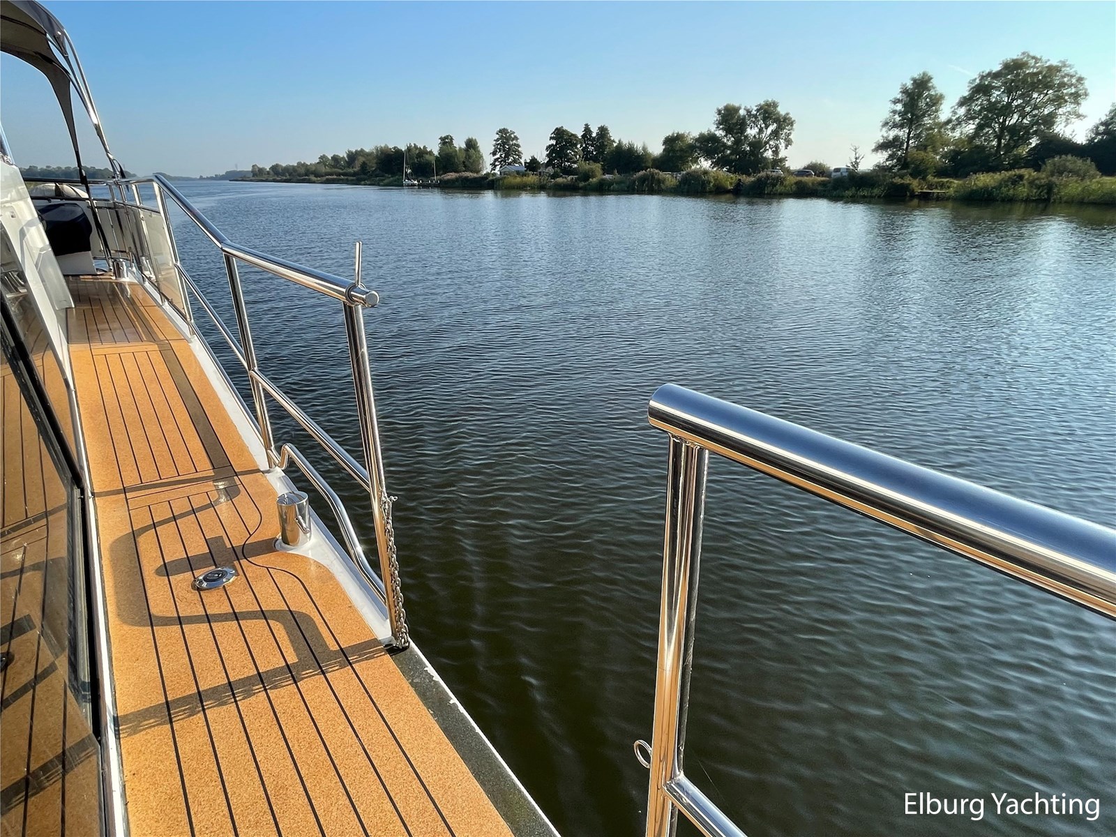 Spacious Vri-Jon Contessa 45RX built by the well-known Dutch Vri-Jon yard in Ossenzijl. This Vri-Jon is a perfect cruiser to explore Dutch, but also foreign waters with. She is equipped with a technically advanced rotating nozzle with pulling propeller. This mechanism is very efficient and gives a lot of control when manoeuvring the yacht. Throughout the yacht, the Vri-Jon yard's years of experience stand out well. The spacious saloon with storage space, cosy dinette opposite the spacious galley, the pleasant forward cabin with its own wet cell and, of course, the spacious aft cabin with free-standing bed and spacious wet cell with shower cubicle and washer/dryer combination. The yacht is equipped all around with a low-maintenance cork deck with a stainless steel sea railing. The outside steering position is equipped with a clear Navio boat control system in combination with a Navio Power steering system that also controls the autopilot. The yacht is also equipped with a recent Simrad chart plotter and electric anchor winch with remote control. This yacht is completely gas - free. Minimum headroom is appr. 2.75 metres. For questions and/or to make an appointment, you are welcome 7 days a week at Elburg Yachting.