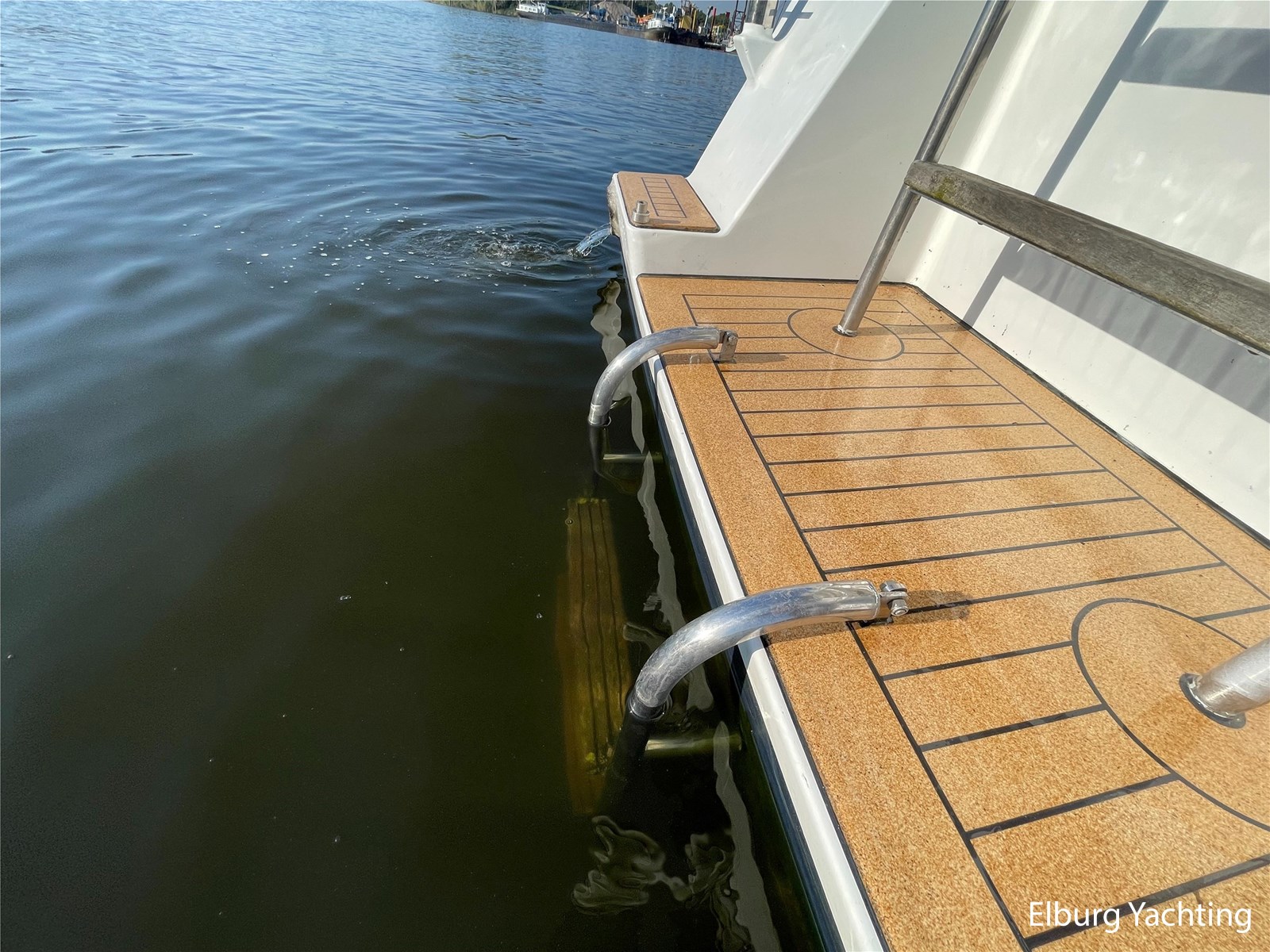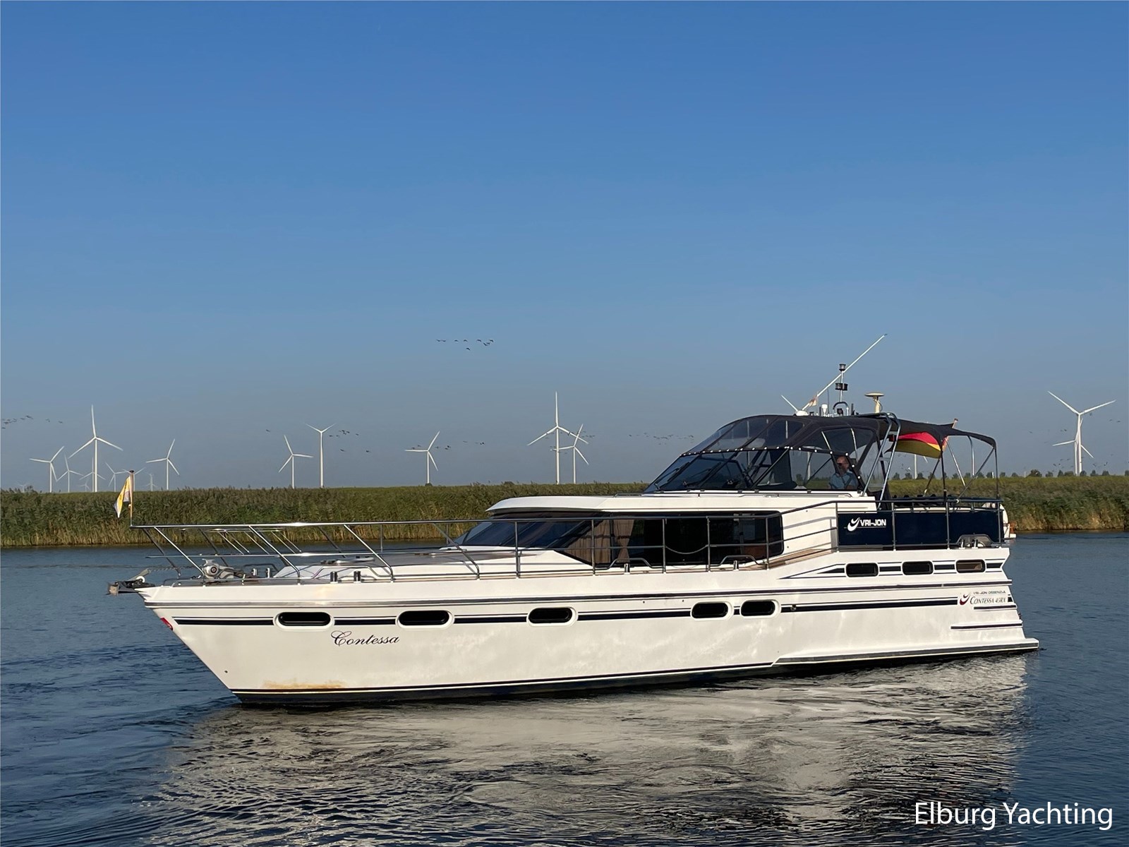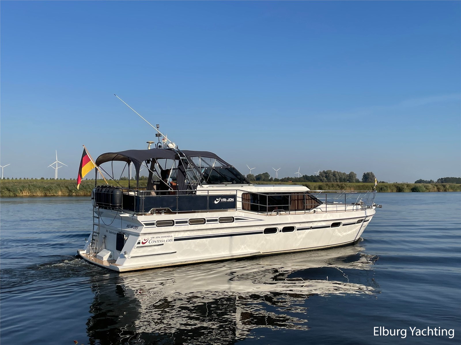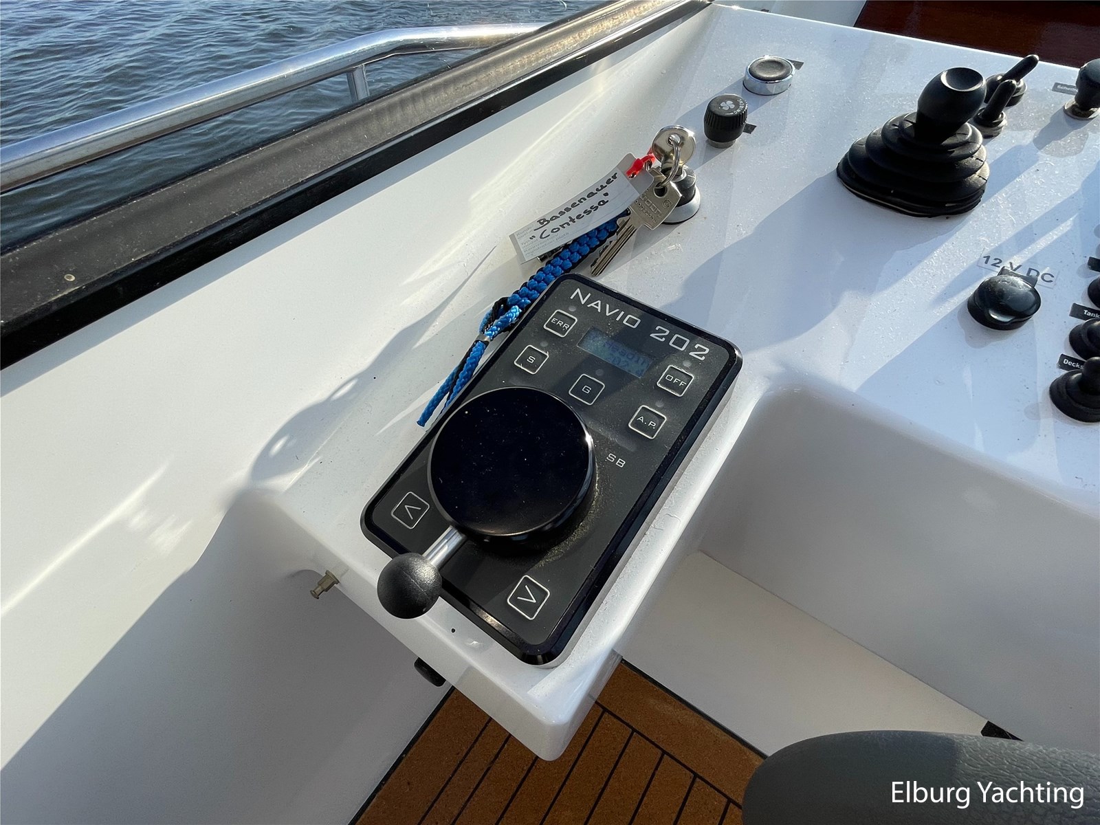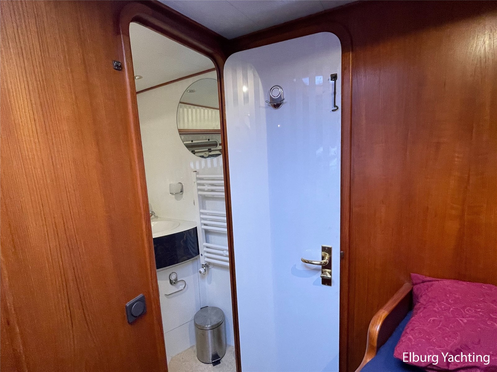 Spacious Vri-Jon Contessa 45RX built by the well-known Dutch Vri-Jon yard in Ossenzijl. This Vri-Jon is a perfect cruiser to explore Dutch, but also foreign waters with. She is equipped with a technically advanced rotating nozzle with pulling propeller. This mechanism is very efficient and gives a lot of control when manoeuvring the yacht. Throughout the yacht, the Vri-Jon yard's years of experience stand out well. The spacious saloon with storage space, cosy dinette opposite the spacious galley, the pleasant forward cabin with its own wet cell and, of course, the spacious aft cabin with free-standing bed and spacious wet cell with shower cubicle and washer/dryer combination. The yacht is equipped all around with a low-maintenance cork deck with a stainless steel sea railing. The outside steering position is equipped with a clear Navio boat control system in combination with a Navio Power steering system that also controls the autopilot. The yacht is also equipped with a recent Simrad chart plotter and electric anchor winch with remote control. This yacht is completely gas - free. Minimum headroom is appr. 2.75 metres. For questions and/or to make an appointment, you are welcome 7 days a week at Elburg Yachting.