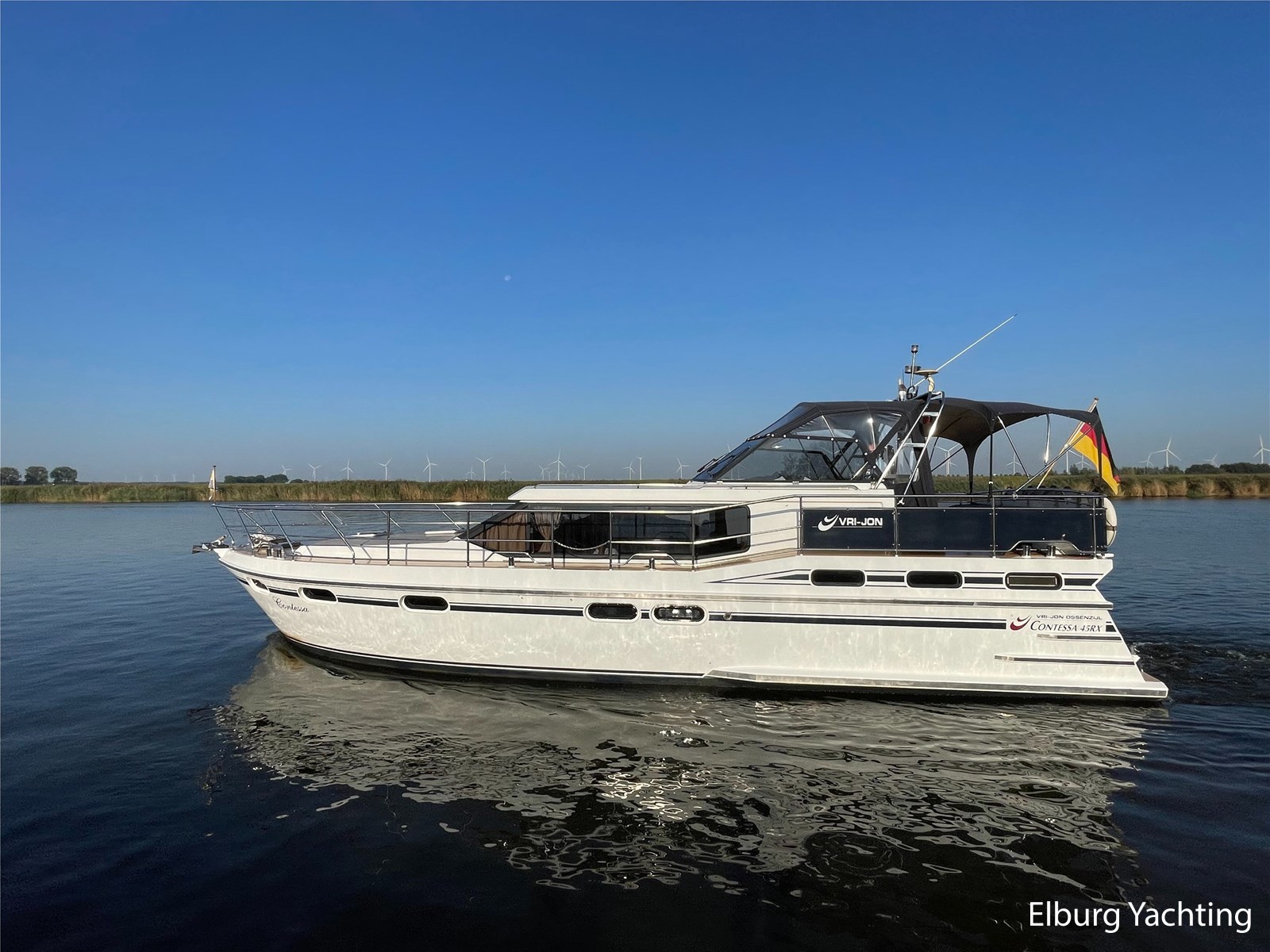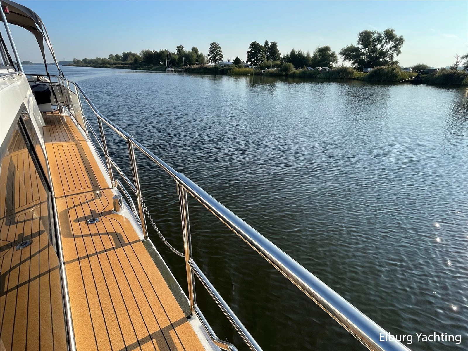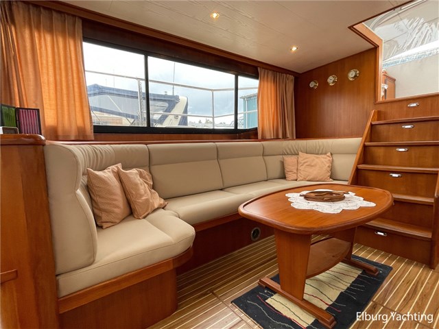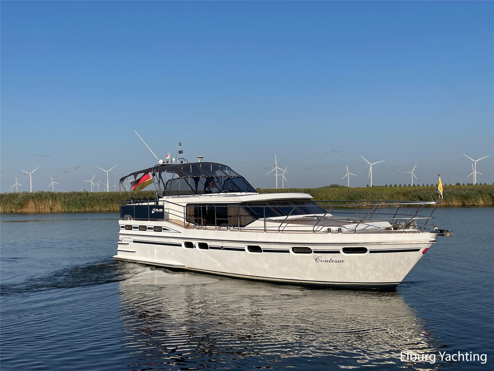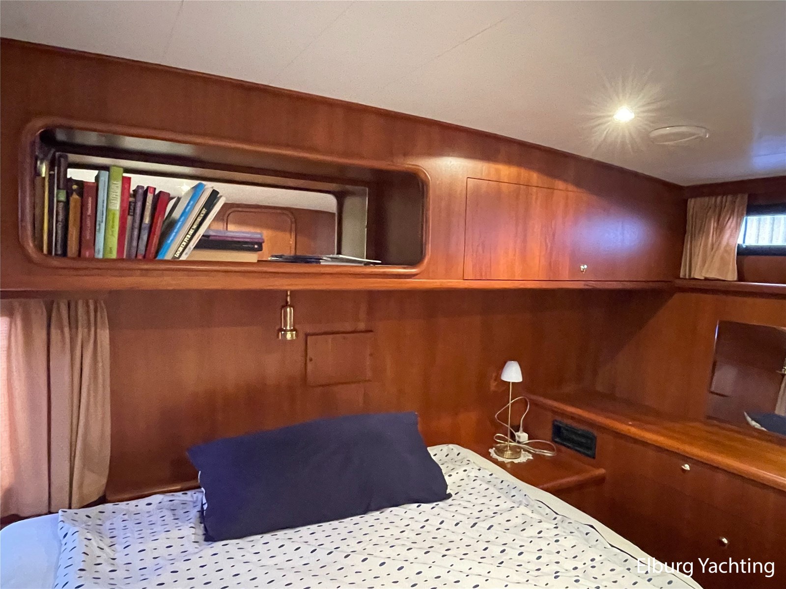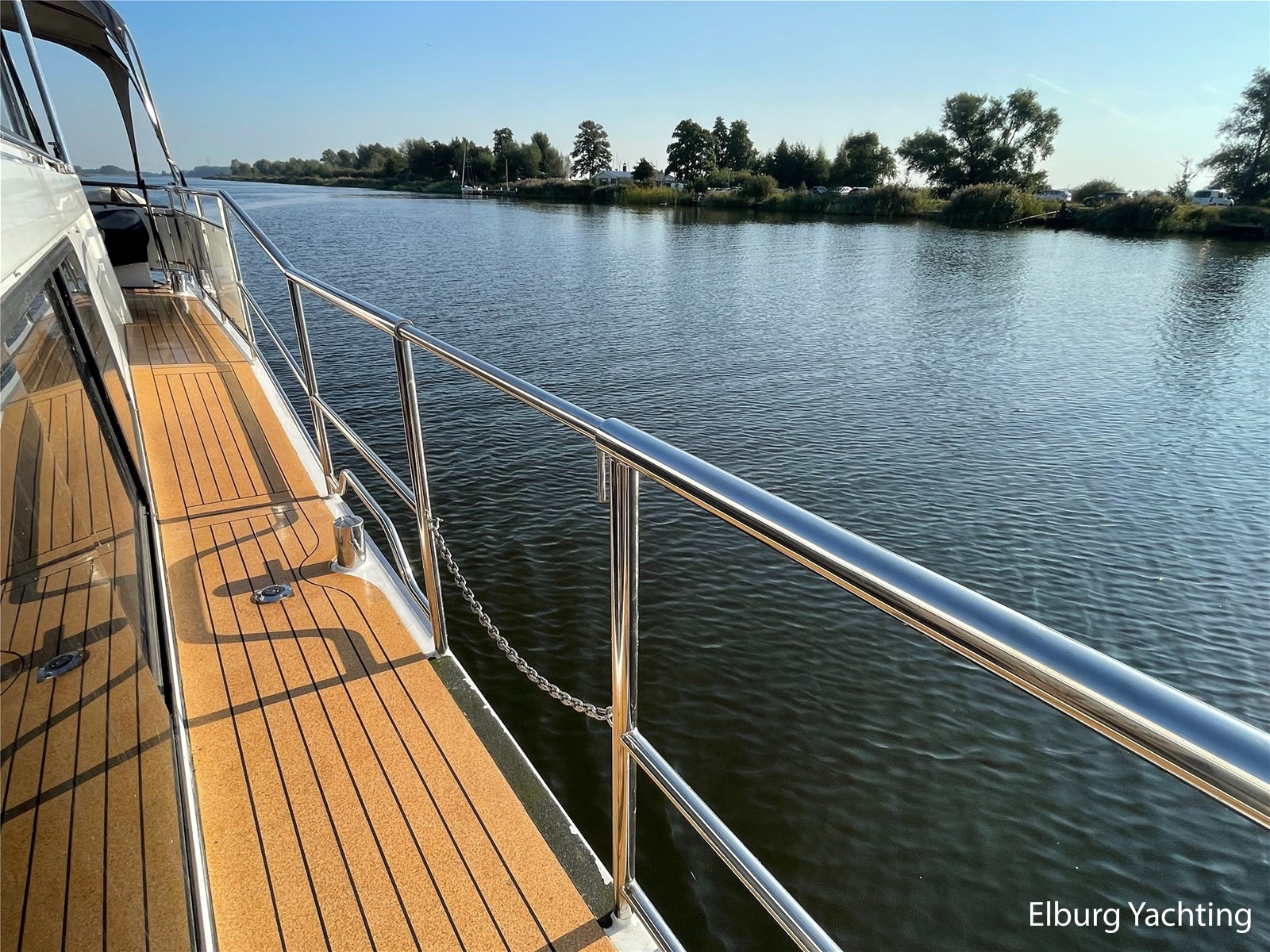 Spacious Vri-Jon Contessa 45RX built by the well-known Dutch Vri-Jon yard in Ossenzijl. This Vri-Jon is a perfect cruiser to explore Dutch, but also foreign waters with. She is equipped with a technically advanced rotating nozzle with pulling propeller. This mechanism is very efficient and gives a lot of control when manoeuvring the yacht. Throughout the yacht, the Vri-Jon yard's years of experience stand out well. The spacious saloon with storage space, cosy dinette opposite the spacious galley, the pleasant forward cabin with its own wet cell and, of course, the spacious aft cabin with free-standing bed and spacious wet cell with shower cubicle and washer/dryer combination. The yacht is equipped all around with a low-maintenance cork deck with a stainless steel sea railing. The outside steering position is equipped with a clear Navio boat control system in combination with a Navio Power steering system that also controls the autopilot. The yacht is also equipped with a recent Simrad chart plotter and electric anchor winch with remote control. This yacht is completely gas - free. Minimum headroom is appr. 2.75 metres. For questions and/or to make an appointment, you are welcome 7 days a week at Elburg Yachting.
