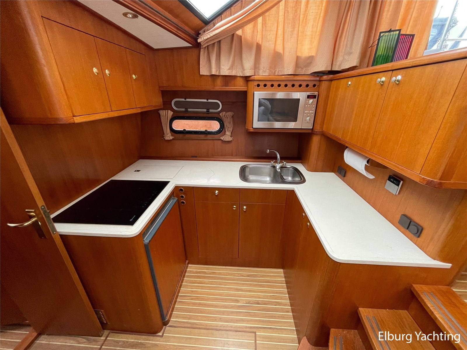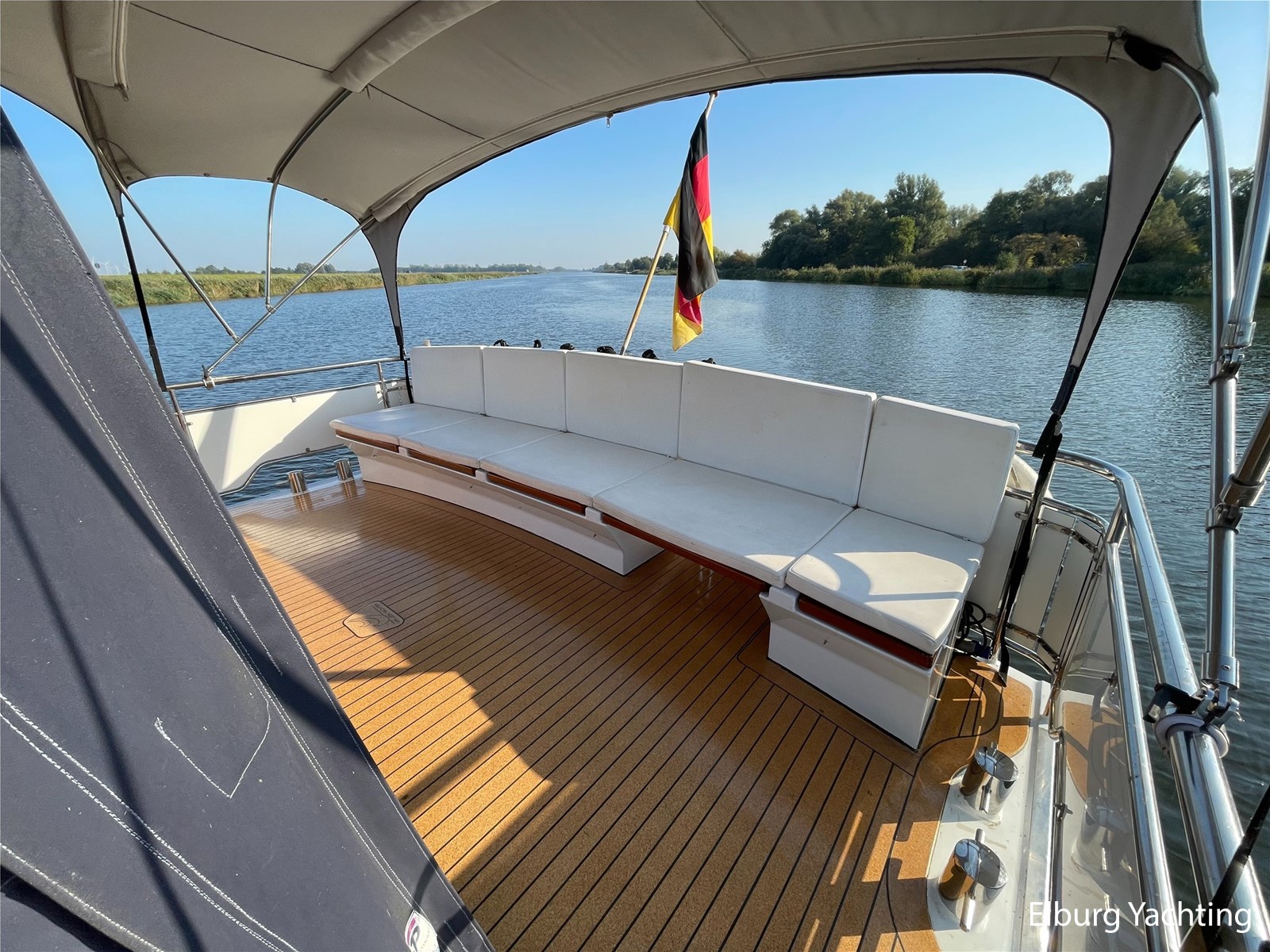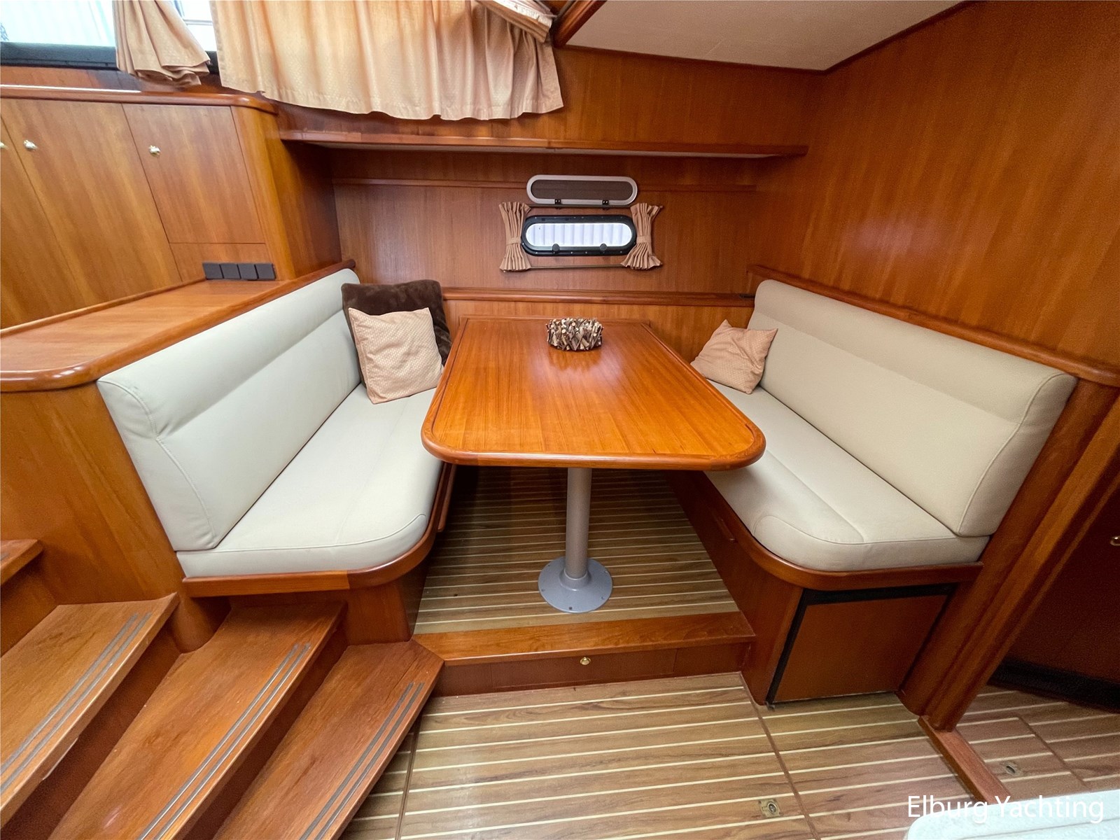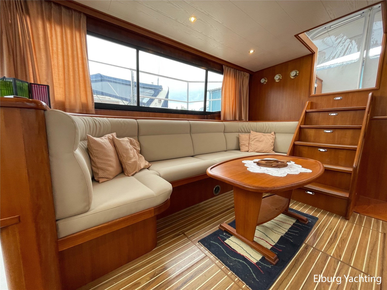 Spacious Vri-Jon Contessa 45RX built by the well-known Dutch Vri-Jon yard in Ossenzijl. This Vri-Jon is a perfect cruiser to explore Dutch, but also foreign waters with. She is equipped with a technically advanced rotating nozzle with pulling propeller. This mechanism is very efficient and gives a lot of control when manoeuvring the yacht. Throughout the yacht, the Vri-Jon yard's years of experience stand out well. The spacious saloon with storage space, cosy dinette opposite the spacious galley, the pleasant forward cabin with its own wet cell and, of course, the spacious aft cabin with free-standing bed and spacious wet cell with shower cubicle and washer/dryer combination. The yacht is equipped all around with a low-maintenance cork deck with a stainless steel sea railing. The outside steering position is equipped with a clear Navio boat control system in combination with a Navio Power steering system that also controls the autopilot. The yacht is also equipped with a recent Simrad chart plotter and electric anchor winch with remote control. This yacht is completely gas - free. Minimum headroom is appr. 2.75 metres. For questions and/or to make an appointment, you are welcome 7 days a week at Elburg Yachting.