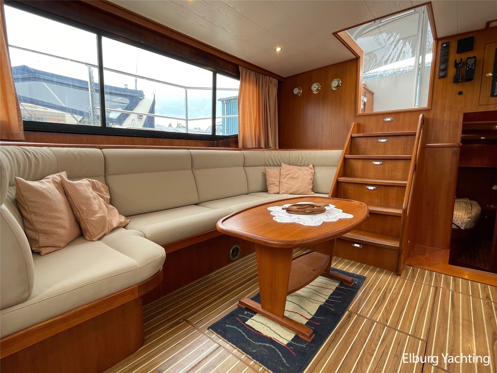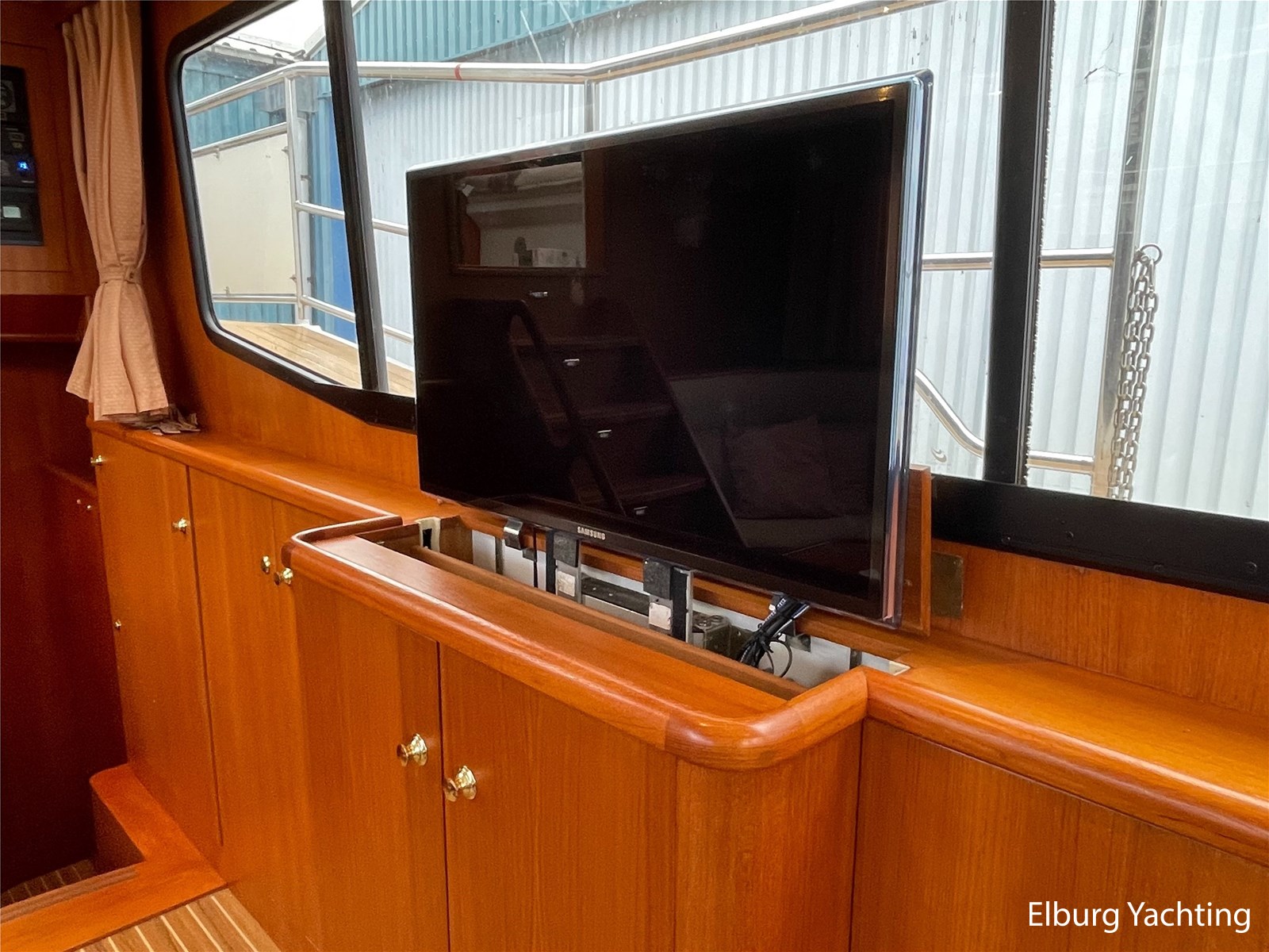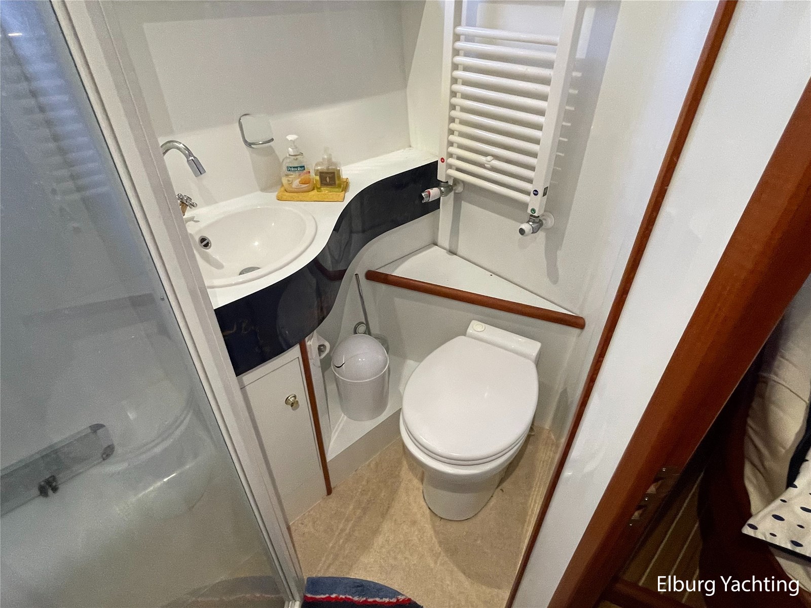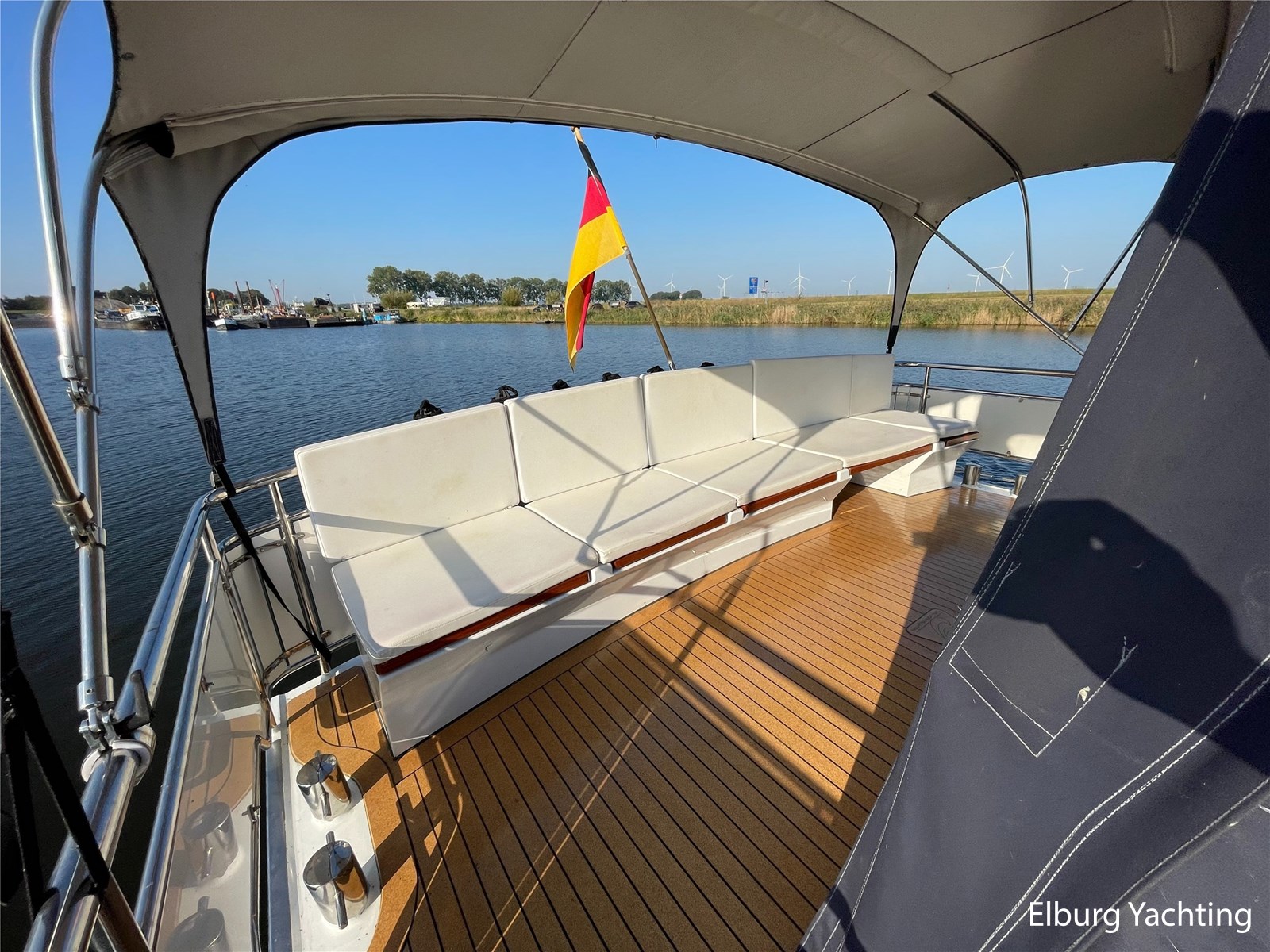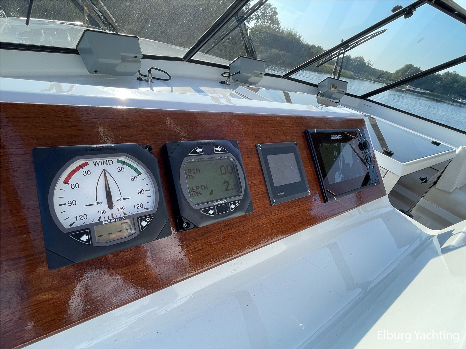 Spacious Vri-Jon Contessa 45RX built by the well-known Dutch Vri-Jon yard in Ossenzijl. This Vri-Jon is a perfect cruiser to explore Dutch, but also foreign waters with. She is equipped with a technically advanced rotating nozzle with pulling propeller. This mechanism is very efficient and gives a lot of control when manoeuvring the yacht. Throughout the yacht, the Vri-Jon yard's years of experience stand out well. The spacious saloon with storage space, cosy dinette opposite the spacious galley, the pleasant forward cabin with its own wet cell and, of course, the spacious aft cabin with free-standing bed and spacious wet cell with shower cubicle and washer/dryer combination. The yacht is equipped all around with a low-maintenance cork deck with a stainless steel sea railing. The outside steering position is equipped with a clear Navio boat control system in combination with a Navio Power steering system that also controls the autopilot. The yacht is also equipped with a recent Simrad chart plotter and electric anchor winch with remote control. This yacht is completely gas - free. Minimum headroom is appr. 2.75 metres. For questions and/or to make an appointment, you are welcome 7 days a week at Elburg Yachting.