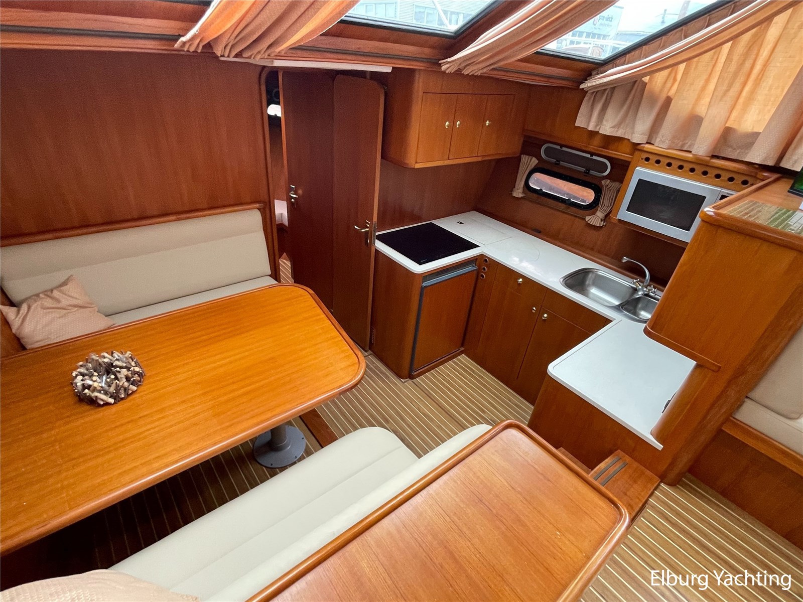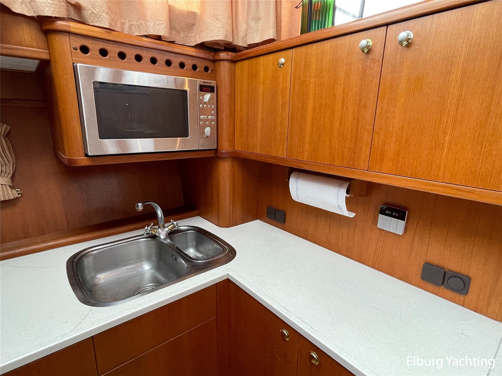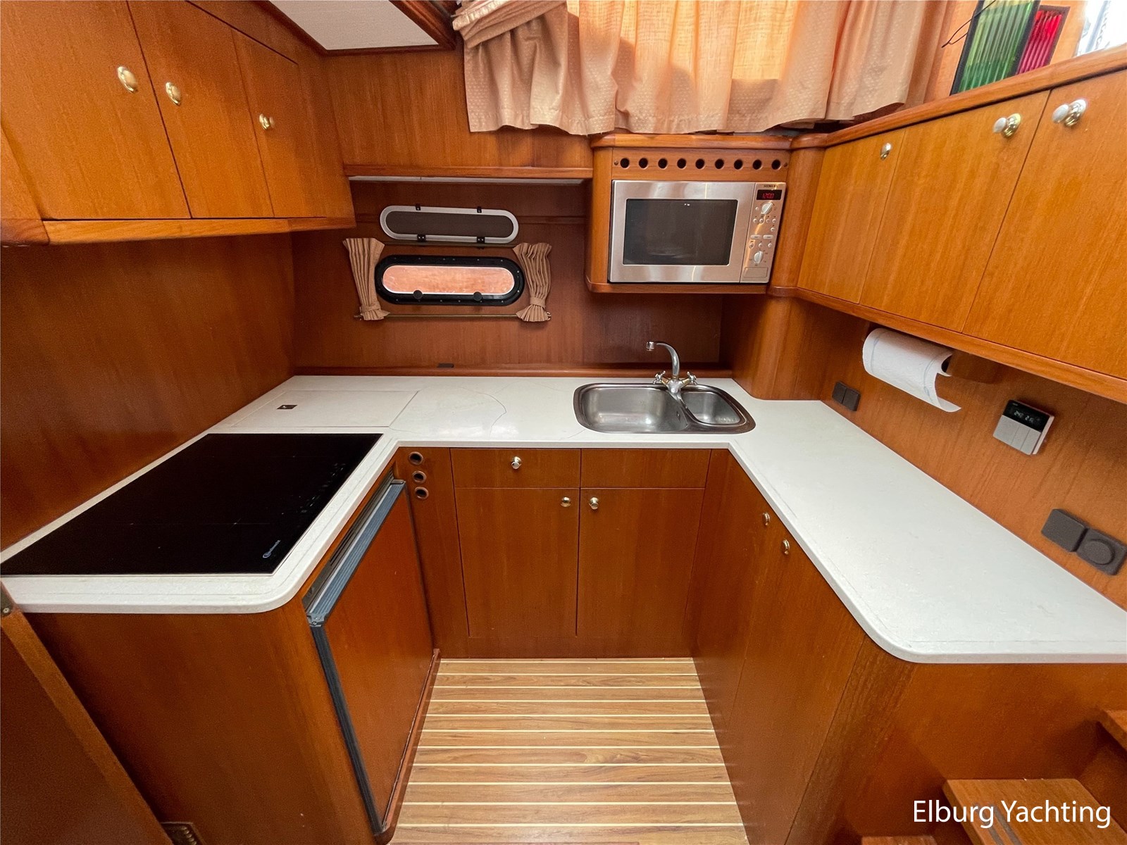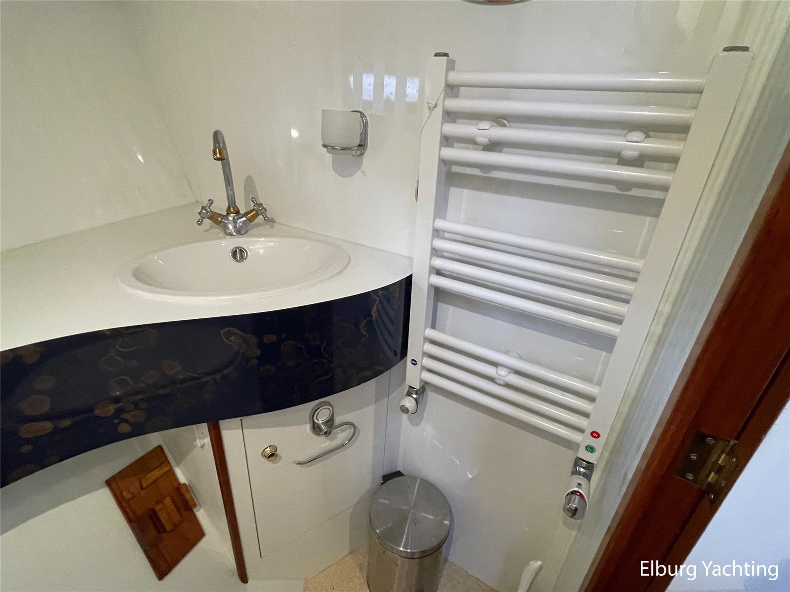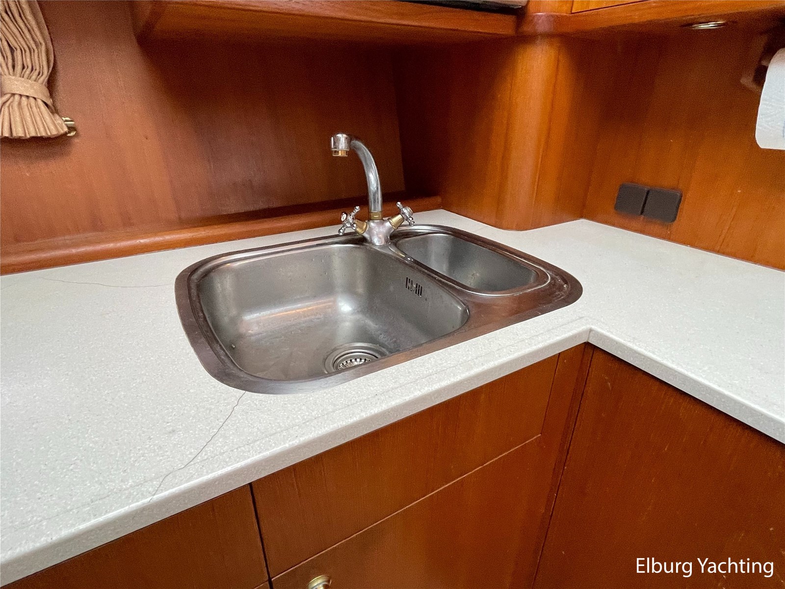 Spacious Vri-Jon Contessa 45RX built by the well-known Dutch Vri-Jon yard in Ossenzijl. This Vri-Jon is a perfect cruiser to explore Dutch, but also foreign waters with. She is equipped with a technically advanced rotating nozzle with pulling propeller. This mechanism is very efficient and gives a lot of control when manoeuvring the yacht. Throughout the yacht, the Vri-Jon yard's years of experience stand out well. The spacious saloon with storage space, cosy dinette opposite the spacious galley, the pleasant forward cabin with its own wet cell and, of course, the spacious aft cabin with free-standing bed and spacious wet cell with shower cubicle and washer/dryer combination. The yacht is equipped all around with a low-maintenance cork deck with a stainless steel sea railing. The outside steering position is equipped with a clear Navio boat control system in combination with a Navio Power steering system that also controls the autopilot. The yacht is also equipped with a recent Simrad chart plotter and electric anchor winch with remote control. This yacht is completely gas - free. Minimum headroom is appr. 2.75 metres. For questions and/or to make an appointment, you are welcome 7 days a week at Elburg Yachting.
