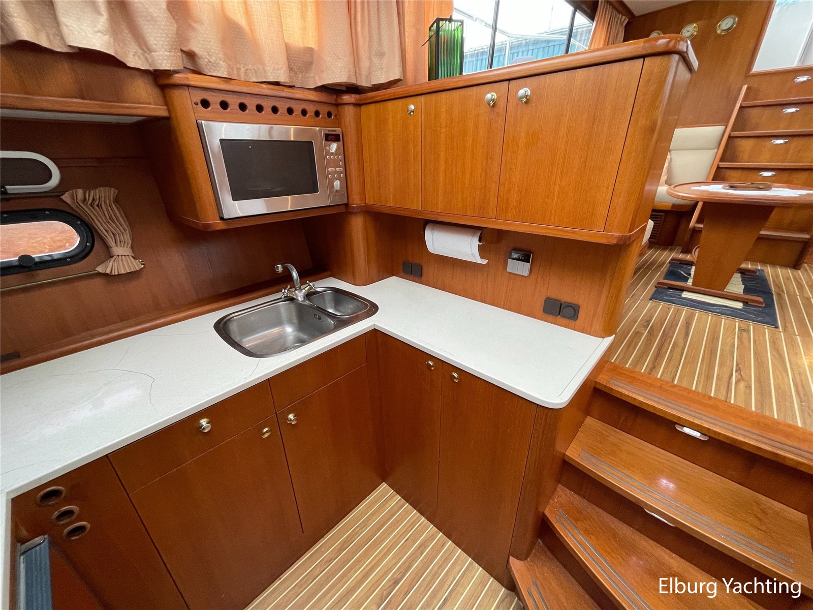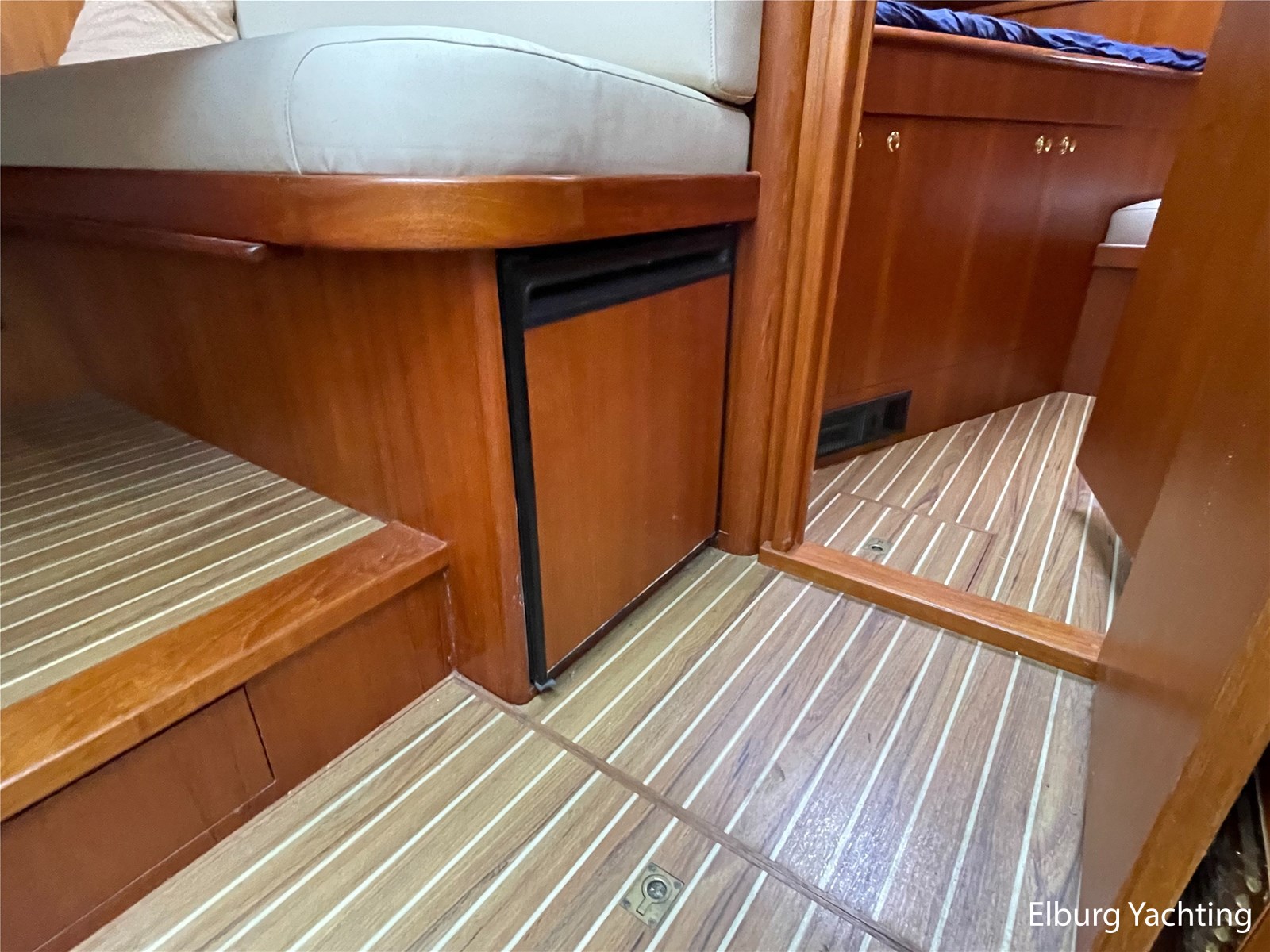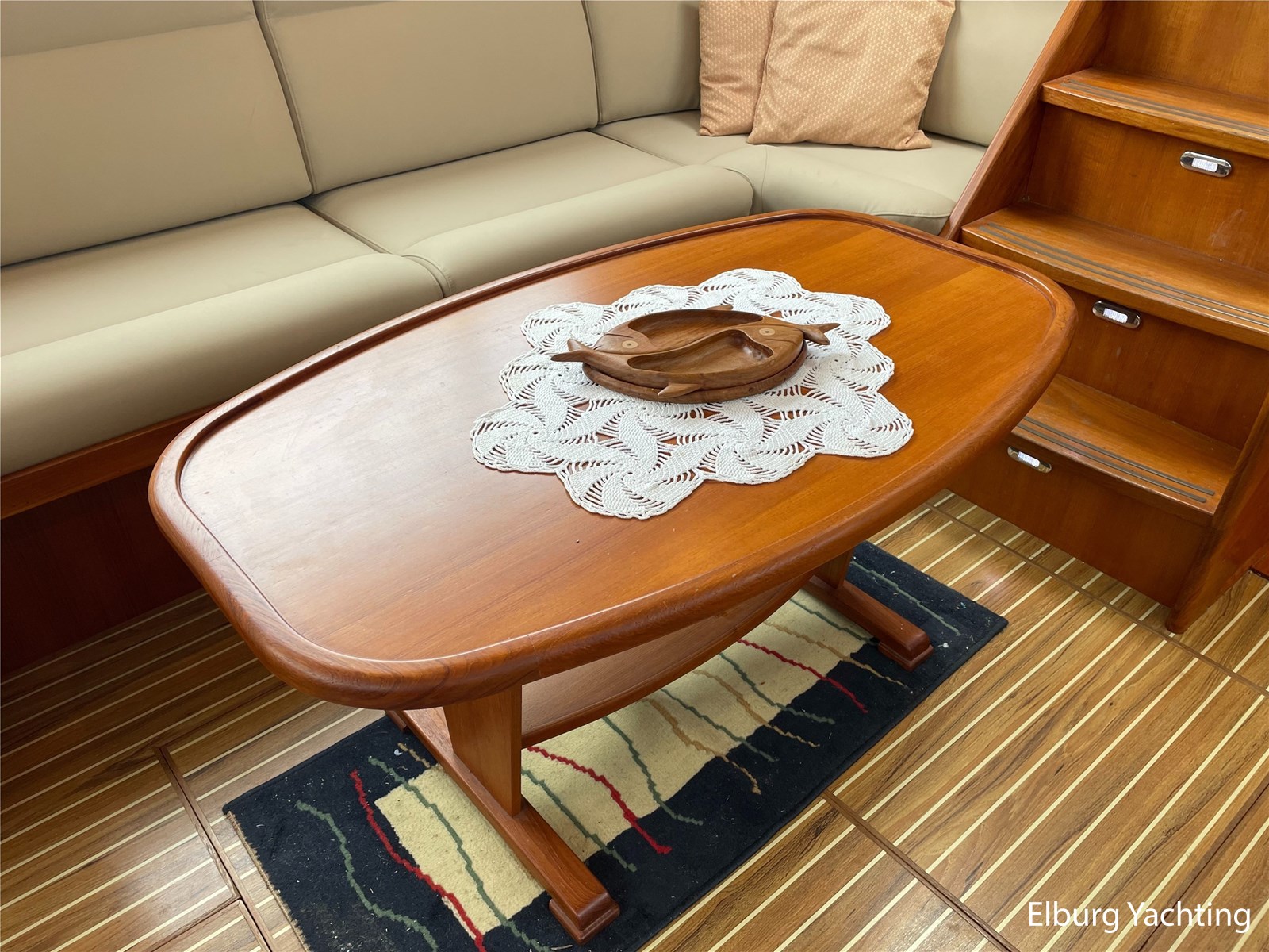 - Solid teak panelling with marine floor throughout the yacht in combination with beige upholstery