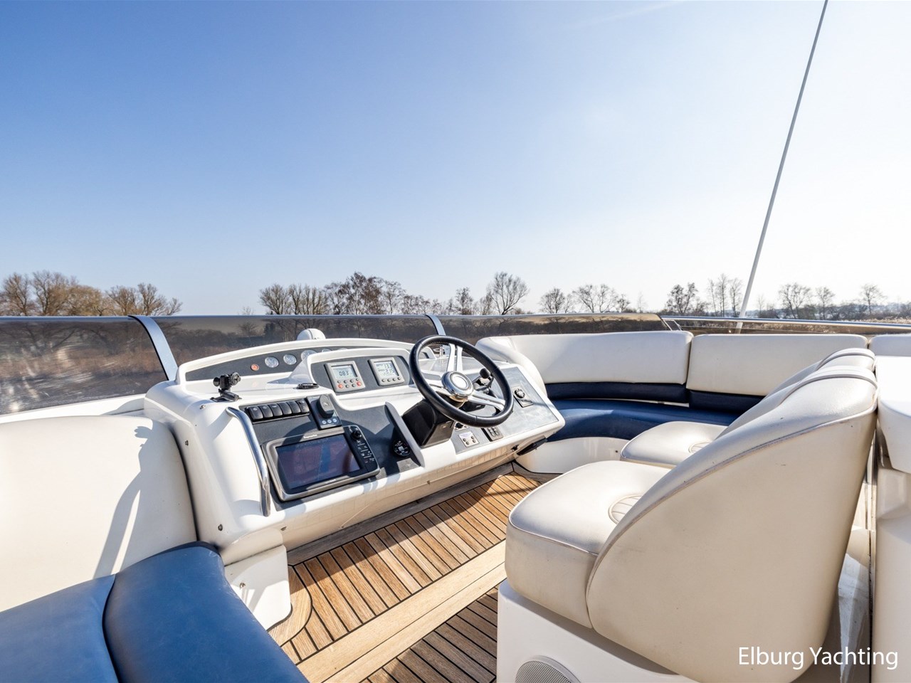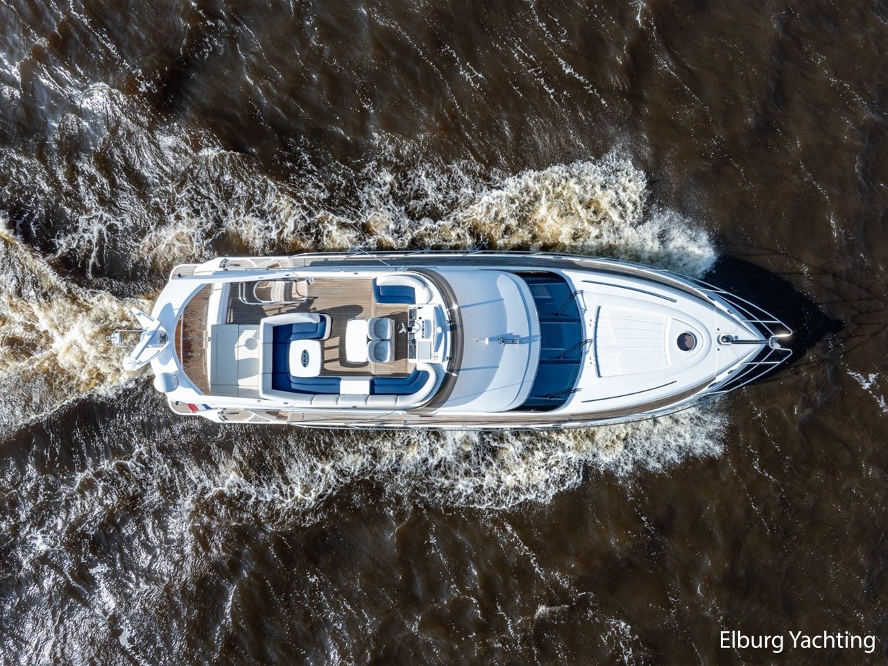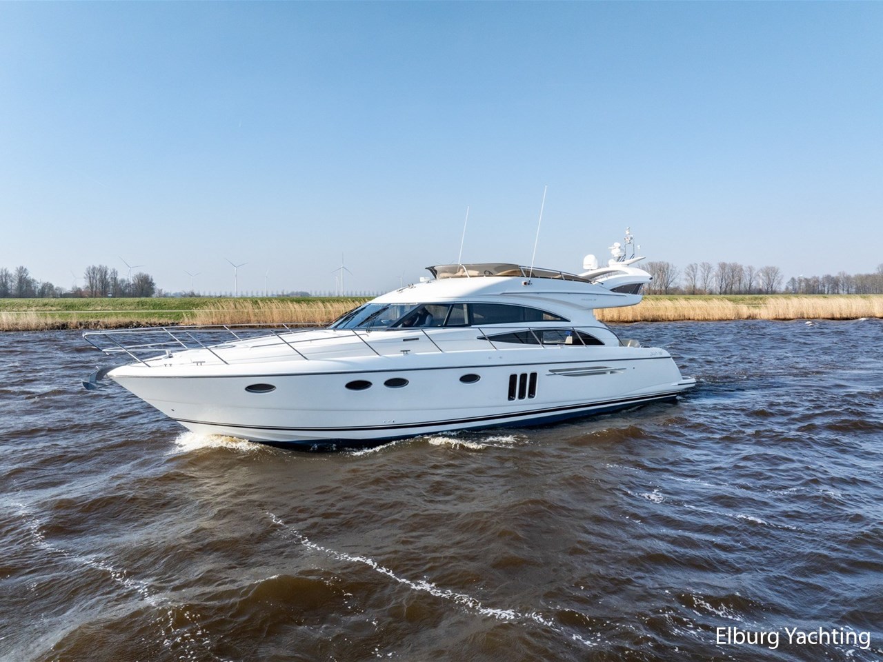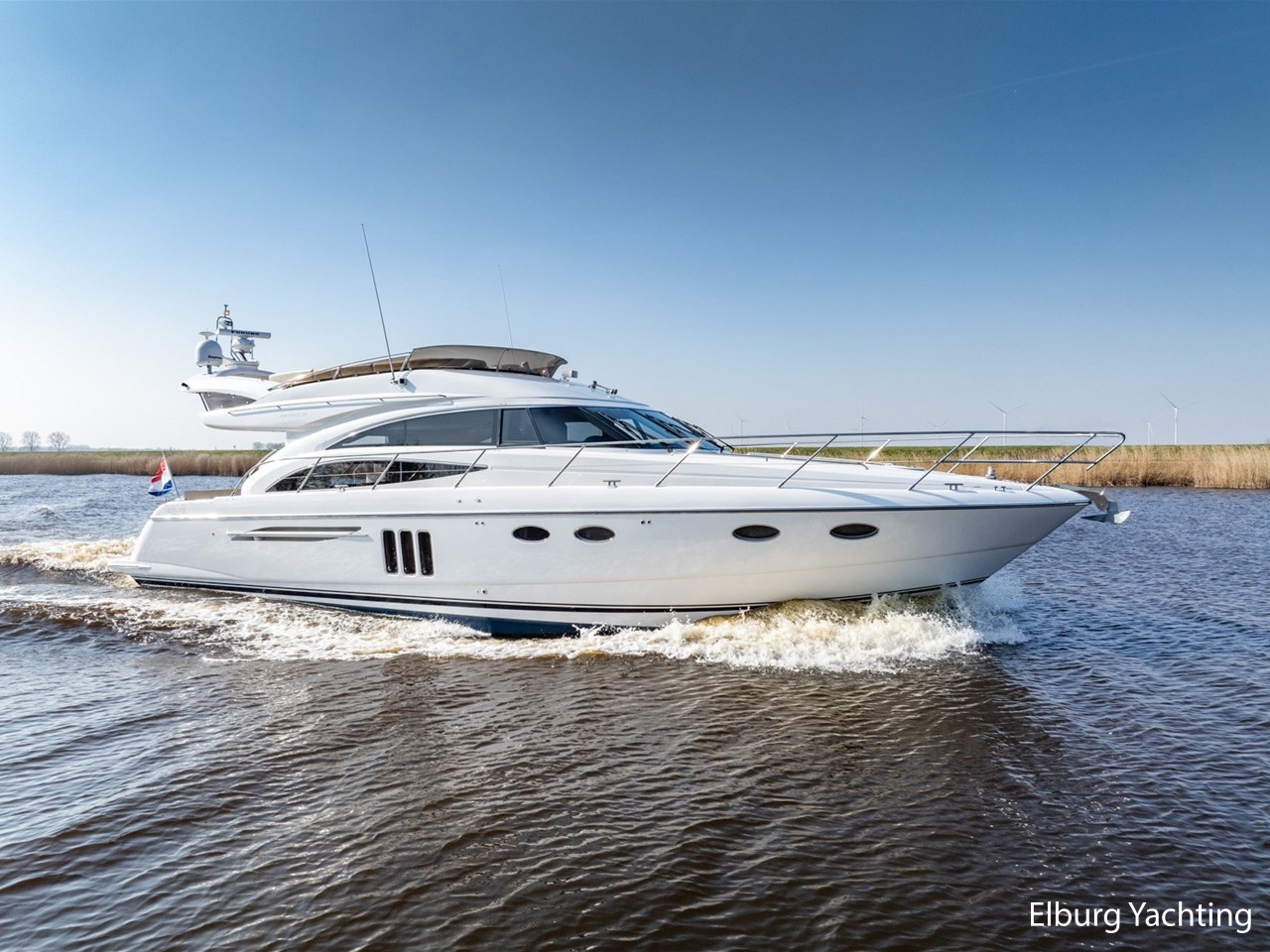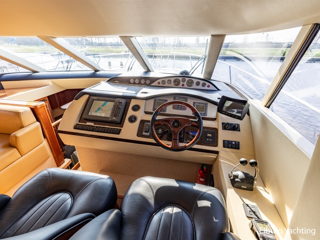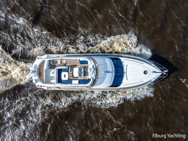 Beautiful Princess 58 Flybridge from renowned yacht builder Princess Yachts. The yacht features high-quality finishes and is fully equipped. The Princess 58 Fybridge has three spacious cabins, two of which have en-suite facilities. The yacht also has a crew cabin that can be accessed via the cockpit bench. The owners cabin is amidships with beautiful windows that provide plenty of light, great views and can be opened for ventilation. Luxurious interior. Spacious open cockpit that can be fully closed by means of a tent and has new upholstery (2024). Large stainless steel sliding door to spacious saloon, connecting indoor and outdoor space. Entering the saloon, you will find a spacious u-shaped settee with a TV on lift. The spacious dinette next to the steering position ensures that it is possible for the skipper to stay in touch with the company on board, the steering position features 2 luxury cruising seats, and a yacht controller remote control making docking and mooring easy. The yacht features: complete cockpit tent + bimini (2024), screens for the windows (2024), high-gloss cherry wood interior with beige leather upholstery, white suede ceilings, Bose audio system, fridge in saloon, new combi microwave (2024), dinette at co-sailing height, 2 leather cruising seats, rear-view camera, CruisAir air conditioning controllable in each room, Zanussi dishwasher, Bosch washer-dryer combination, lots of light through large windows in owner's cabin, one of the windows can be opened for ventilation, 2 showers in lockable cabin, spacious cockpit with lazy stairs to flybridge, wetbar with sink and grill on flybridge, refrigeration space between the benches, berth space on flybridge, upholstery completely covered with covers. For questions and/or to make an appointment, you are welcome 7 days a week at Elburg Yachting.