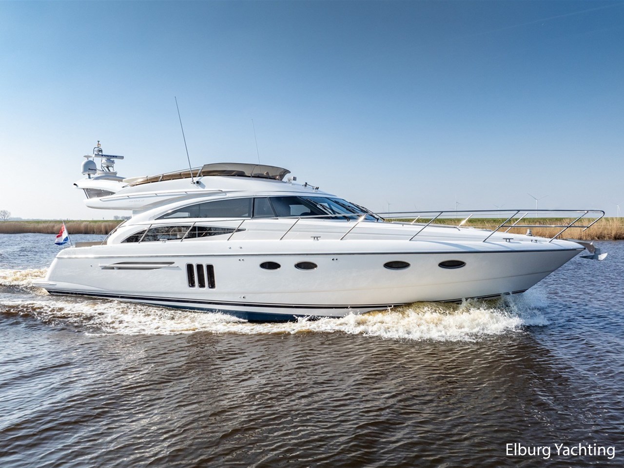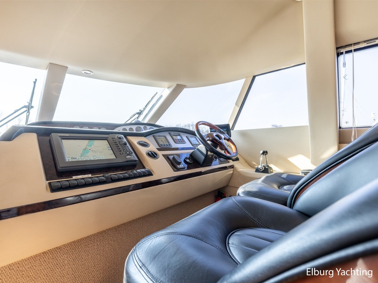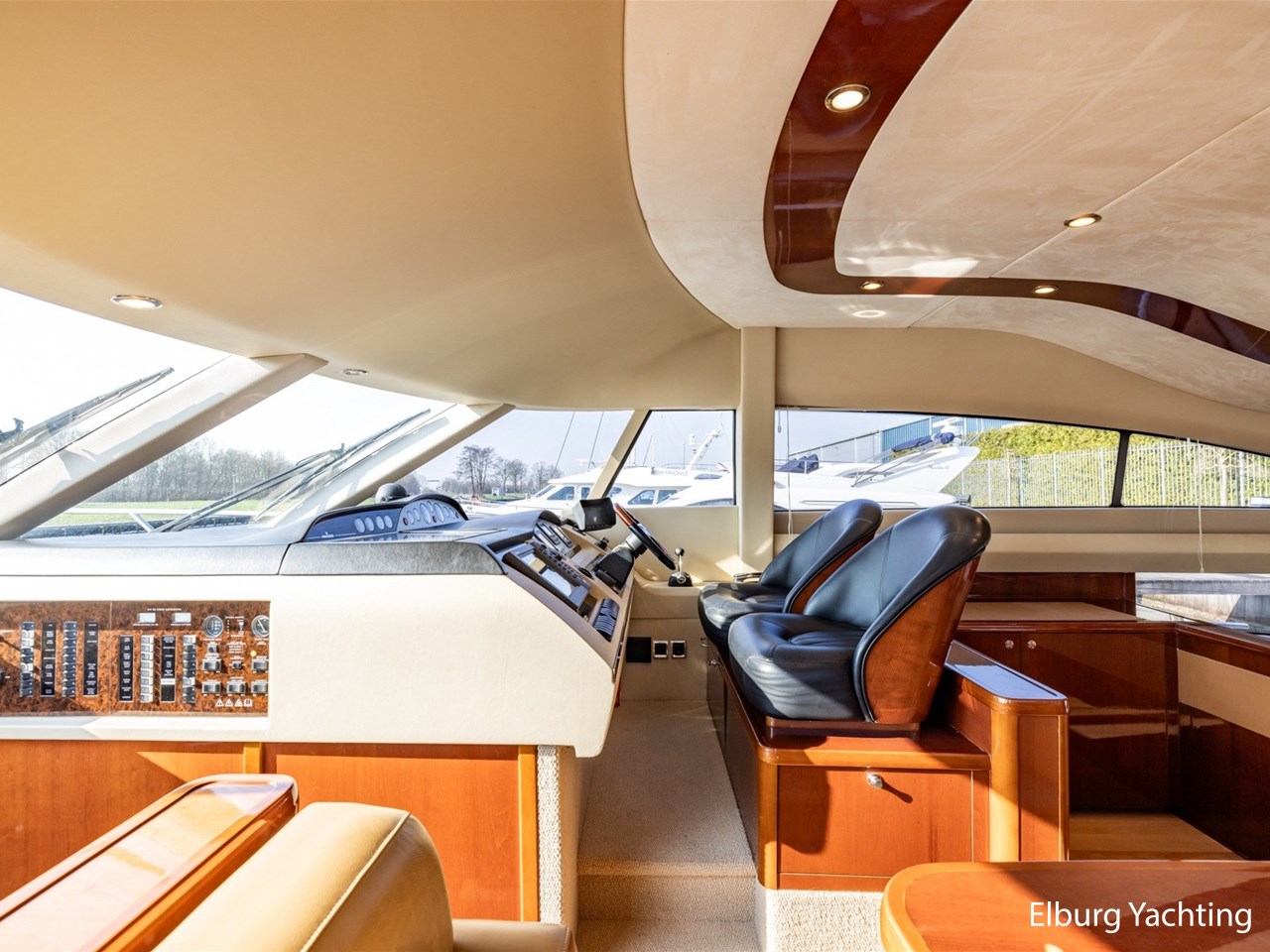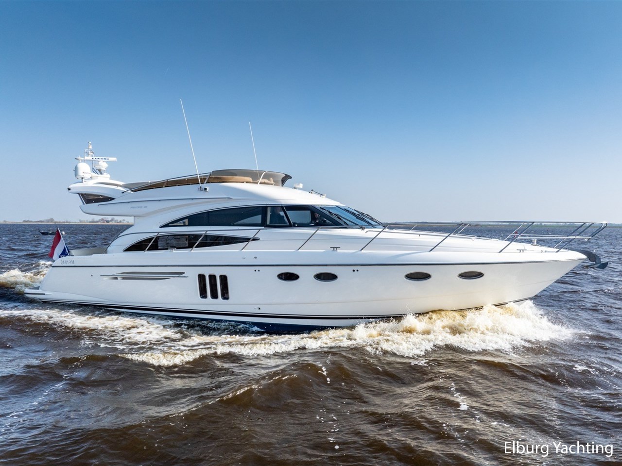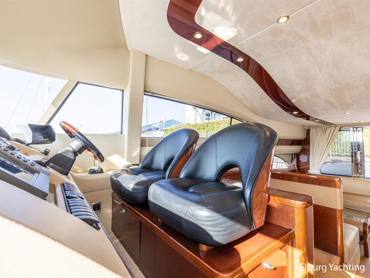 Beautiful Princess 58 Flybridge from renowned yacht builder Princess Yachts. The yacht features high-quality finishes and is fully equipped. The Princess 58 Fybridge has three spacious cabins, two of which have en-suite facilities. The yacht also has a crew cabin that can be accessed via the cockpit bench. The owners cabin is amidships with beautiful windows that provide plenty of light, great views and can be opened for ventilation. Luxurious interior. Spacious open cockpit that can be fully closed by means of a tent and has new upholstery (2024). Large stainless steel sliding door to spacious saloon, connecting indoor and outdoor space. Entering the saloon, you will find a spacious u-shaped settee with a TV on lift. The spacious dinette next to the steering position ensures that it is possible for the skipper to stay in touch with the company on board, the steering position features 2 luxury cruising seats, and a yacht controller remote control making docking and mooring easy. The yacht features: complete cockpit tent + bimini (2024), screens for the windows (2024), high-gloss cherry wood interior with beige leather upholstery, white suede ceilings, Bose audio system, fridge in saloon, new combi microwave (2024), dinette at co-sailing height, 2 leather cruising seats, rear-view camera, CruisAir air conditioning controllable in each room, Zanussi dishwasher, Bosch washer-dryer combination, lots of light through large windows in owner's cabin, one of the windows can be opened for ventilation, 2 showers in lockable cabin, spacious cockpit with lazy stairs to flybridge, wetbar with sink and grill on flybridge, refrigeration space between the benches, berth space on flybridge, upholstery completely covered with covers. For questions and/or to make an appointment, you are welcome 7 days a week at Elburg Yachting.