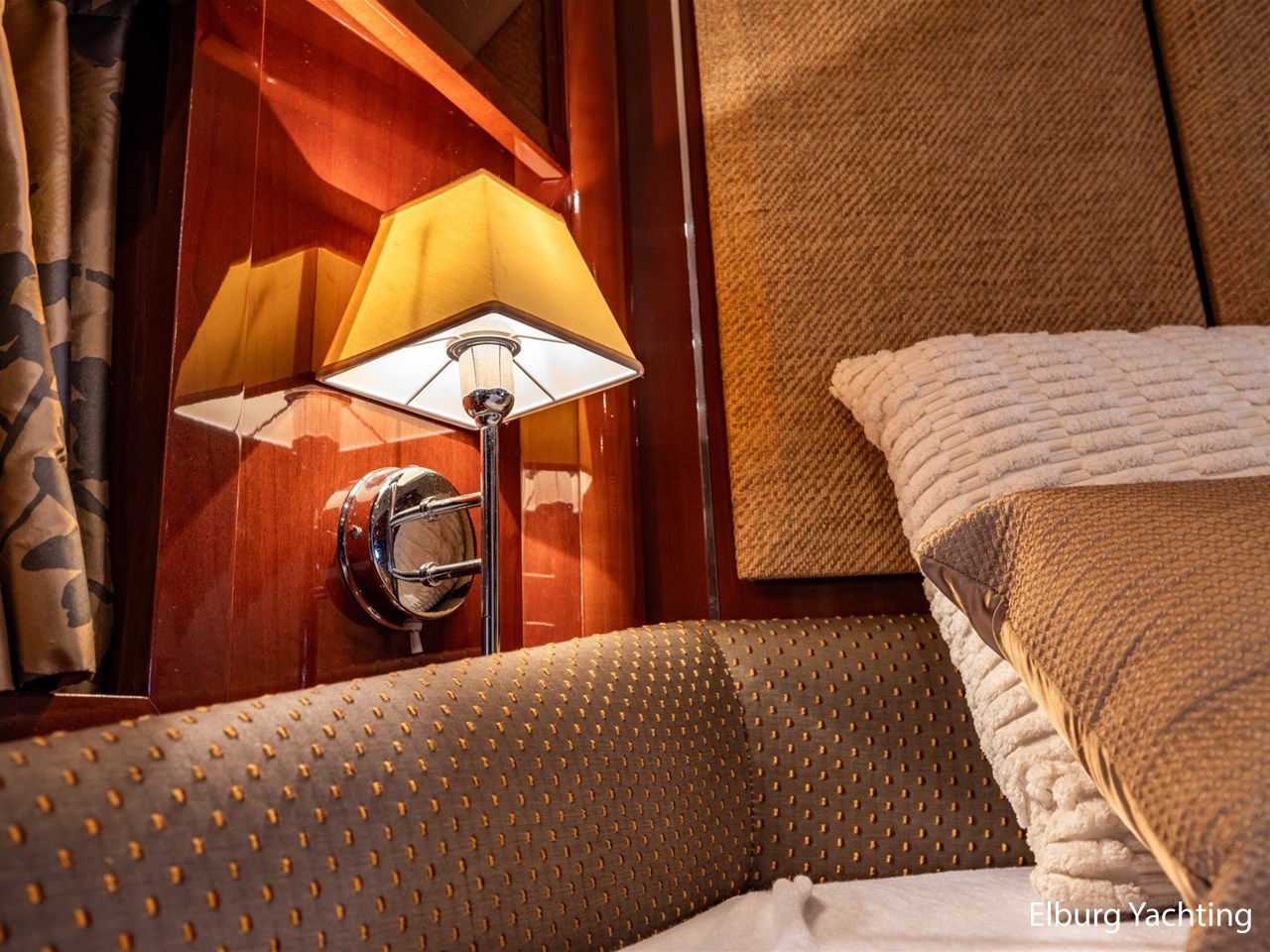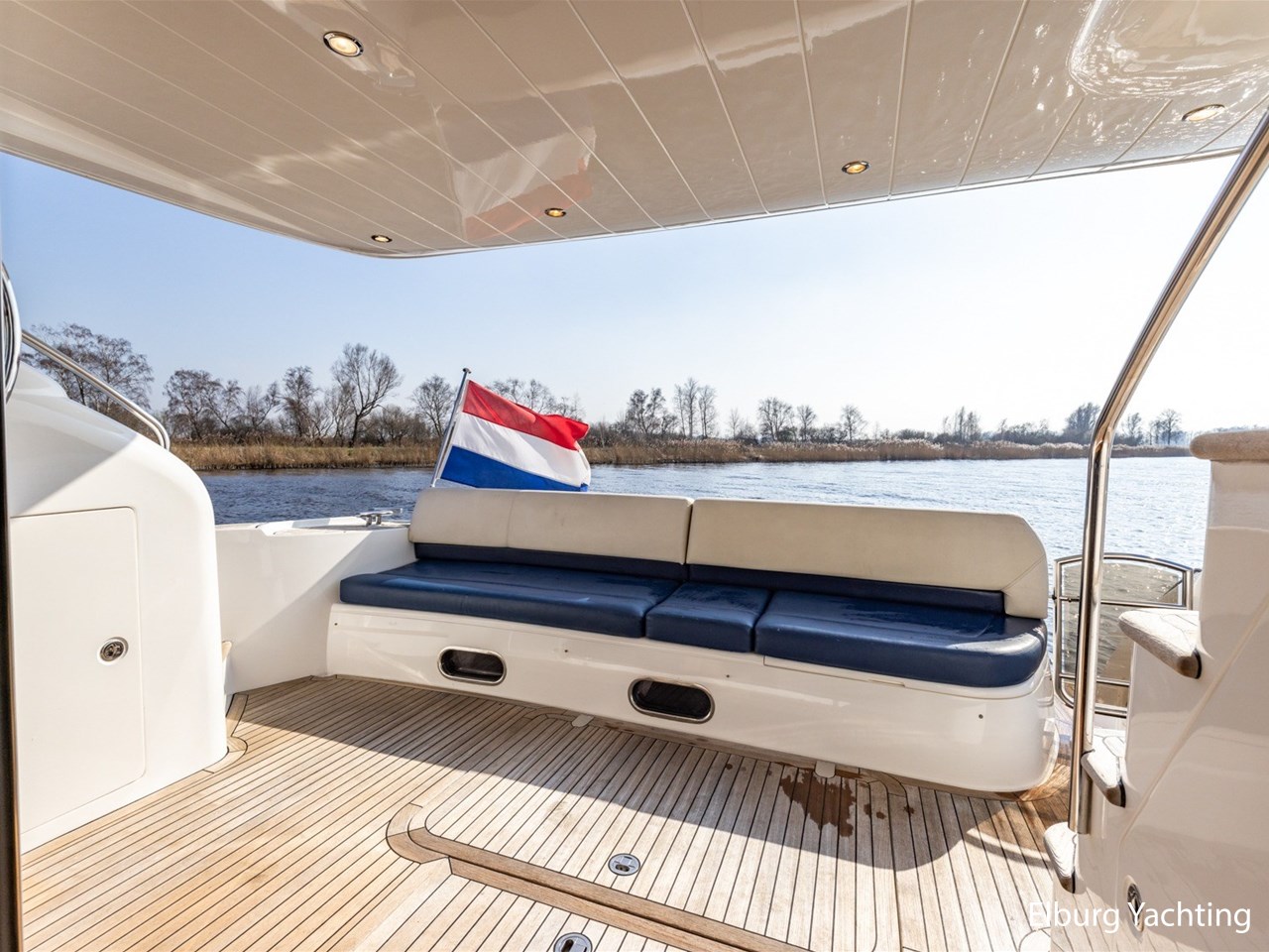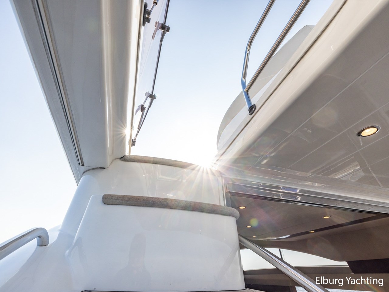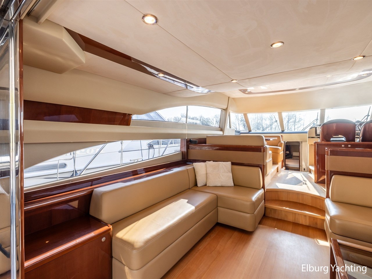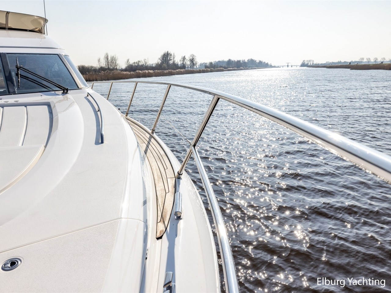 Beautiful Princess 58 Flybridge from renowned yacht builder Princess Yachts. The yacht features high-quality finishes and is fully equipped. The Princess 58 Fybridge has three spacious cabins, two of which have en-suite facilities. The yacht also has a crew cabin that can be accessed via the cockpit bench. The owners cabin is amidships with beautiful windows that provide plenty of light, great views and can be opened for ventilation. Luxurious interior. Spacious open cockpit that can be fully closed by means of a tent and has new upholstery (2024). Large stainless steel sliding door to spacious saloon, connecting indoor and outdoor space. Entering the saloon, you will find a spacious u-shaped settee with a TV on lift. The spacious dinette next to the steering position ensures that it is possible for the skipper to stay in touch with the company on board, the steering position features 2 luxury cruising seats, and a yacht controller remote control making docking and mooring easy. The yacht features: complete cockpit tent + bimini (2024), screens for the windows (2024), high-gloss cherry wood interior with beige leather upholstery, white suede ceilings, Bose audio system, fridge in saloon, new combi microwave (2024), dinette at co-sailing height, 2 leather cruising seats, rear-view camera, CruisAir air conditioning controllable in each room, Zanussi dishwasher, Bosch washer-dryer combination, lots of light through large windows in owner's cabin, one of the windows can be opened for ventilation, 2 showers in lockable cabin, spacious cockpit with lazy stairs to flybridge, wetbar with sink and grill on flybridge, refrigeration space between the benches, berth space on flybridge, upholstery completely covered with covers. For questions and/or to make an appointment, you are welcome 7 days a week at Elburg Yachting.