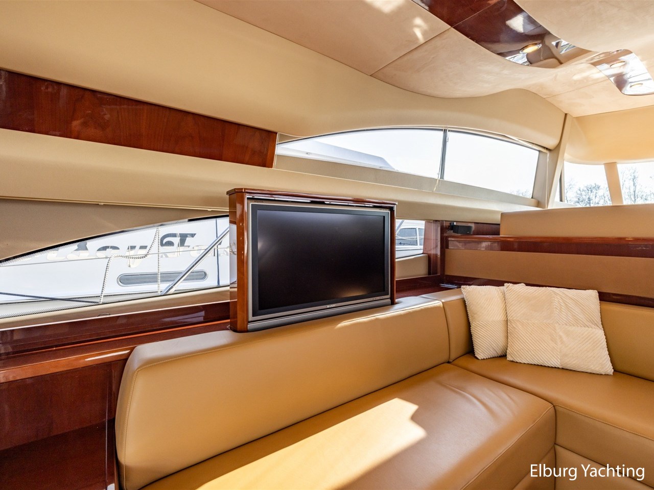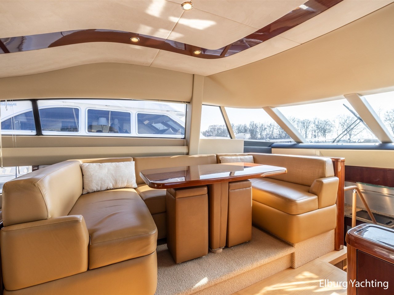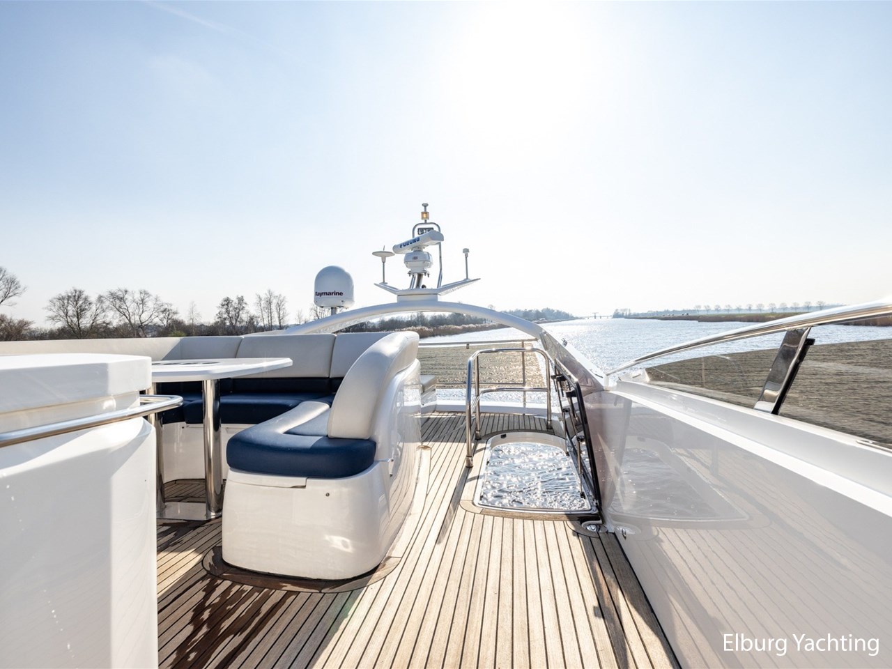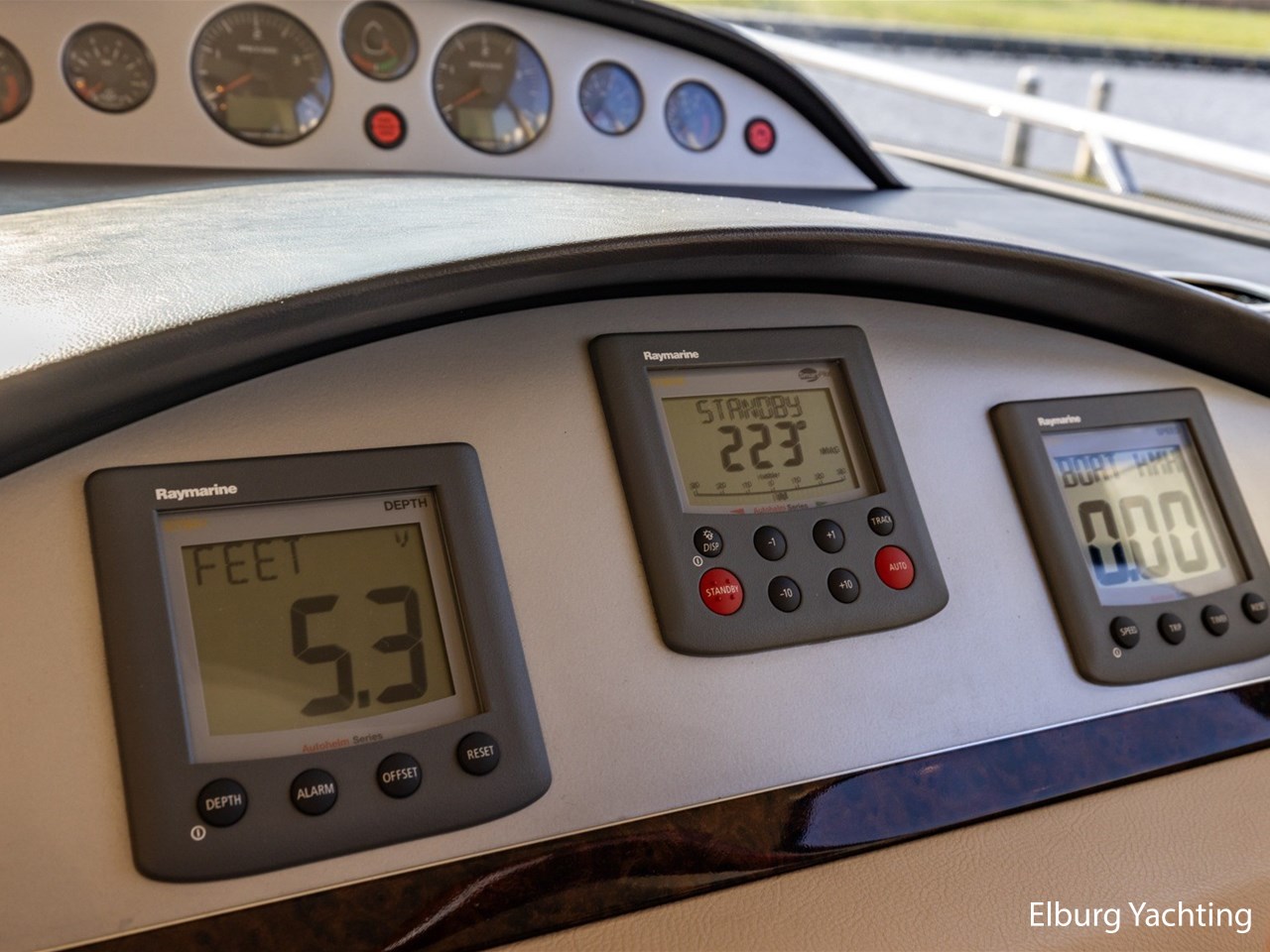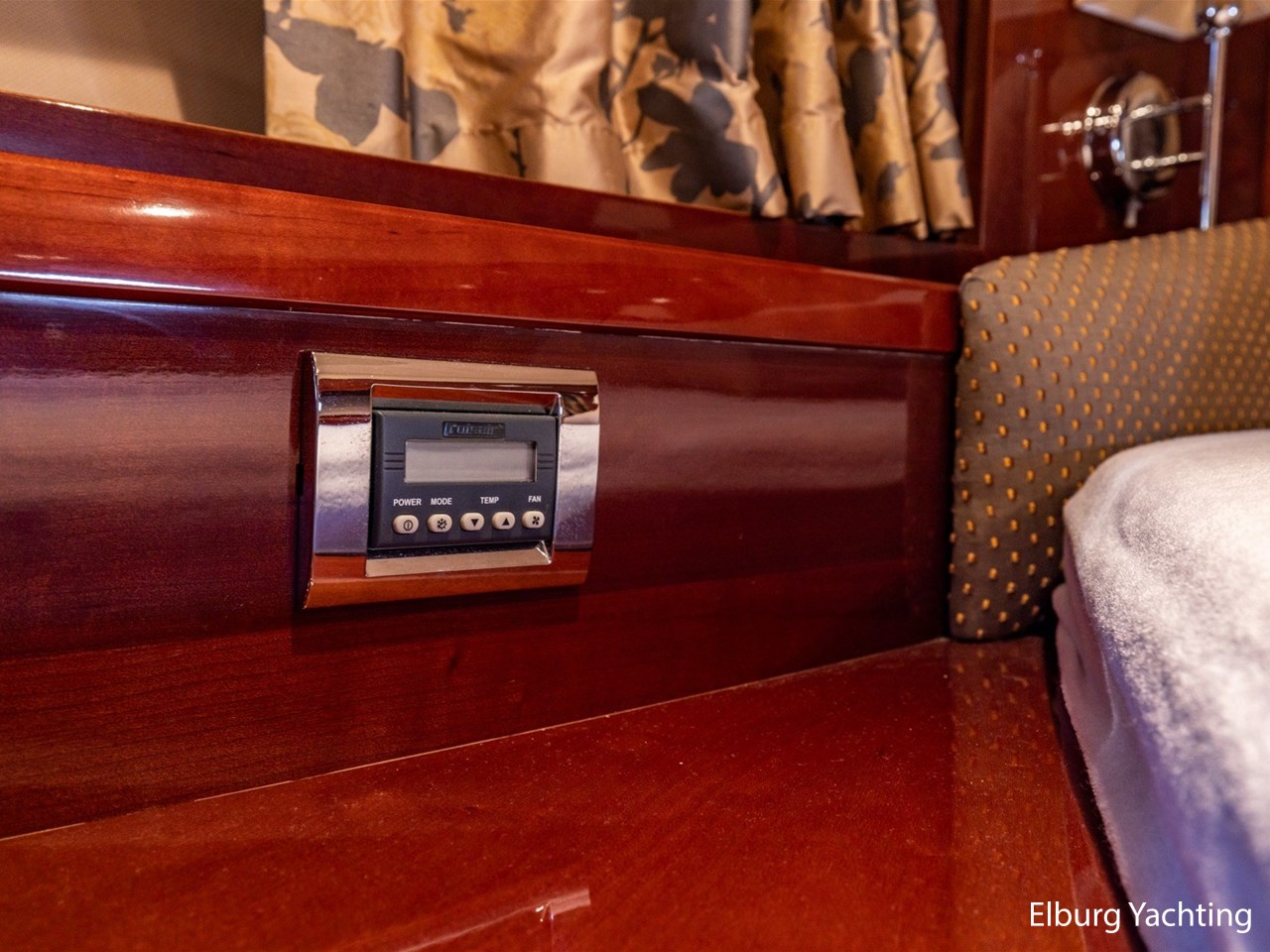 Beautiful Princess 58 Flybridge from renowned yacht builder Princess Yachts. The yacht features high-quality finishes and is fully equipped. The Princess 58 Fybridge has three spacious cabins, two of which have en-suite facilities. The yacht also has a crew cabin that can be accessed via the cockpit bench. The owners cabin is amidships with beautiful windows that provide plenty of light, great views and can be opened for ventilation. Luxurious interior. Spacious open cockpit that can be fully closed by means of a tent and has new upholstery (2024). Large stainless steel sliding door to spacious saloon, connecting indoor and outdoor space. Entering the saloon, you will find a spacious u-shaped settee with a TV on lift. The spacious dinette next to the steering position ensures that it is possible for the skipper to stay in touch with the company on board, the steering position features 2 luxury cruising seats, and a yacht controller remote control making docking and mooring easy. The yacht features: complete cockpit tent + bimini (2024), screens for the windows (2024), high-gloss cherry wood interior with beige leather upholstery, white suede ceilings, Bose audio system, fridge in saloon, new combi microwave (2024), dinette at co-sailing height, 2 leather cruising seats, rear-view camera, CruisAir air conditioning controllable in each room, Zanussi dishwasher, Bosch washer-dryer combination, lots of light through large windows in owner's cabin, one of the windows can be opened for ventilation, 2 showers in lockable cabin, spacious cockpit with lazy stairs to flybridge, wetbar with sink and grill on flybridge, refrigeration space between the benches, berth space on flybridge, upholstery completely covered with covers. For questions and/or to make an appointment, you are welcome 7 days a week at Elburg Yachting.