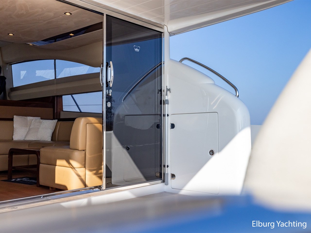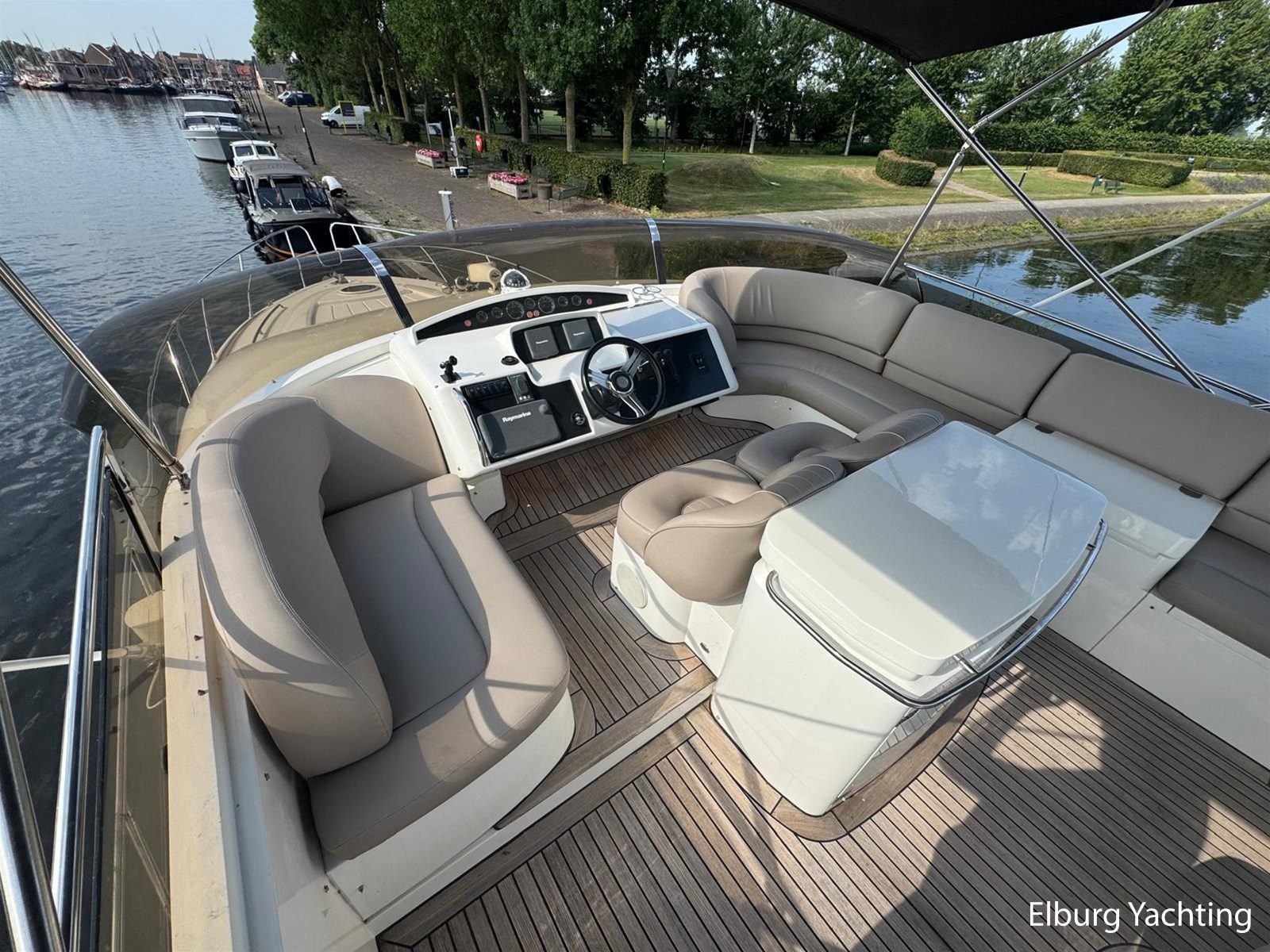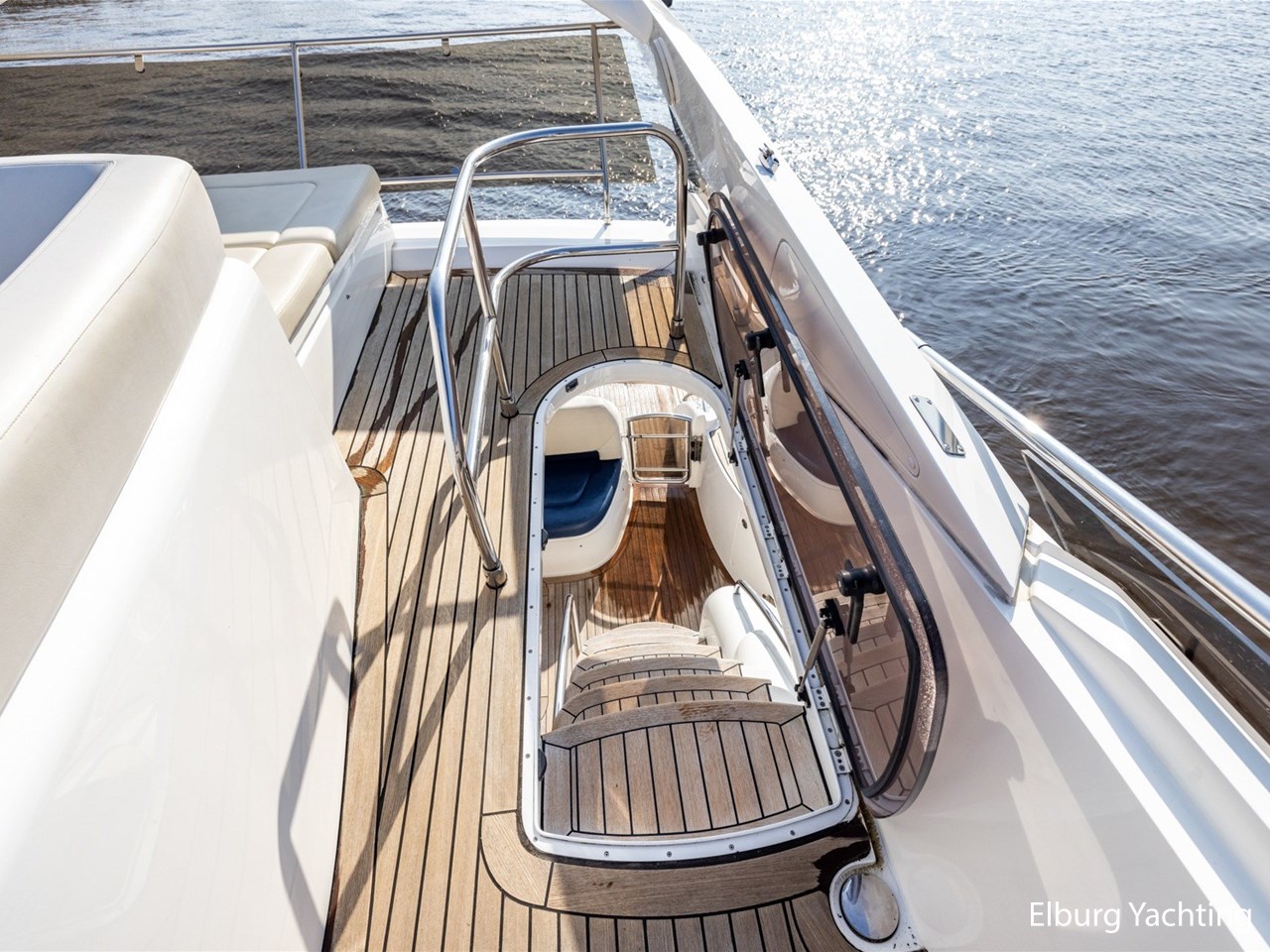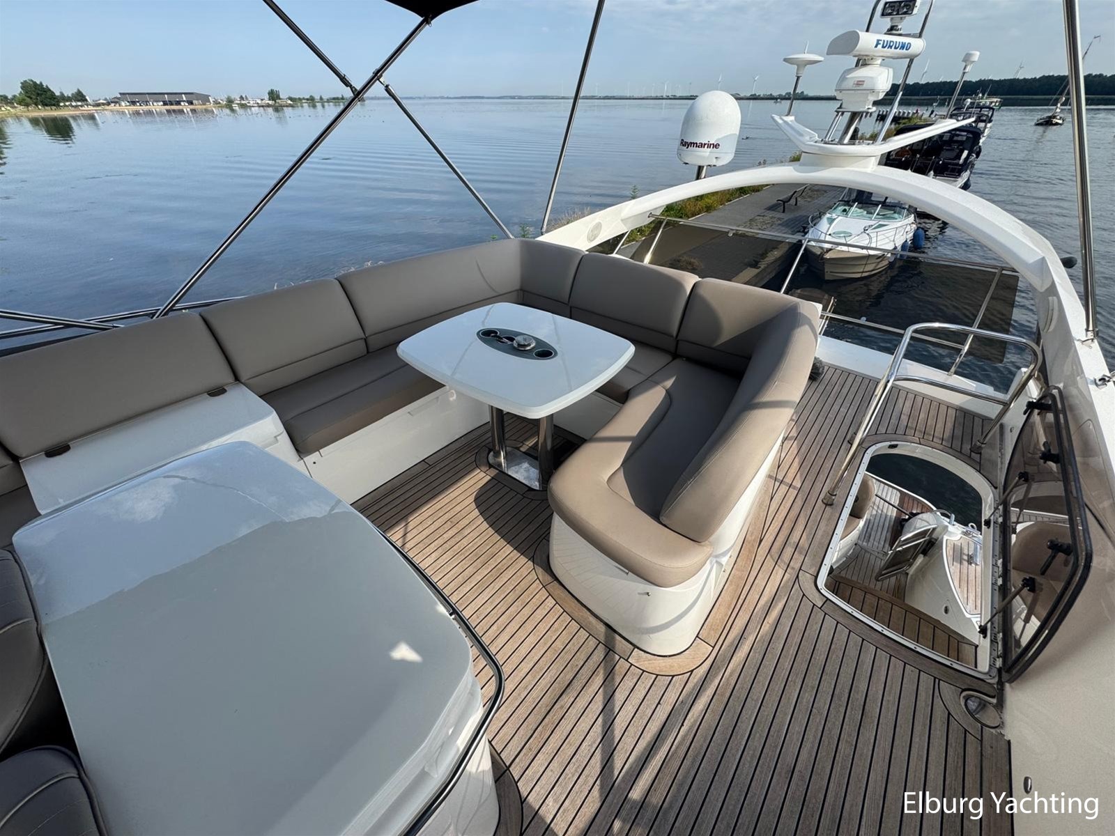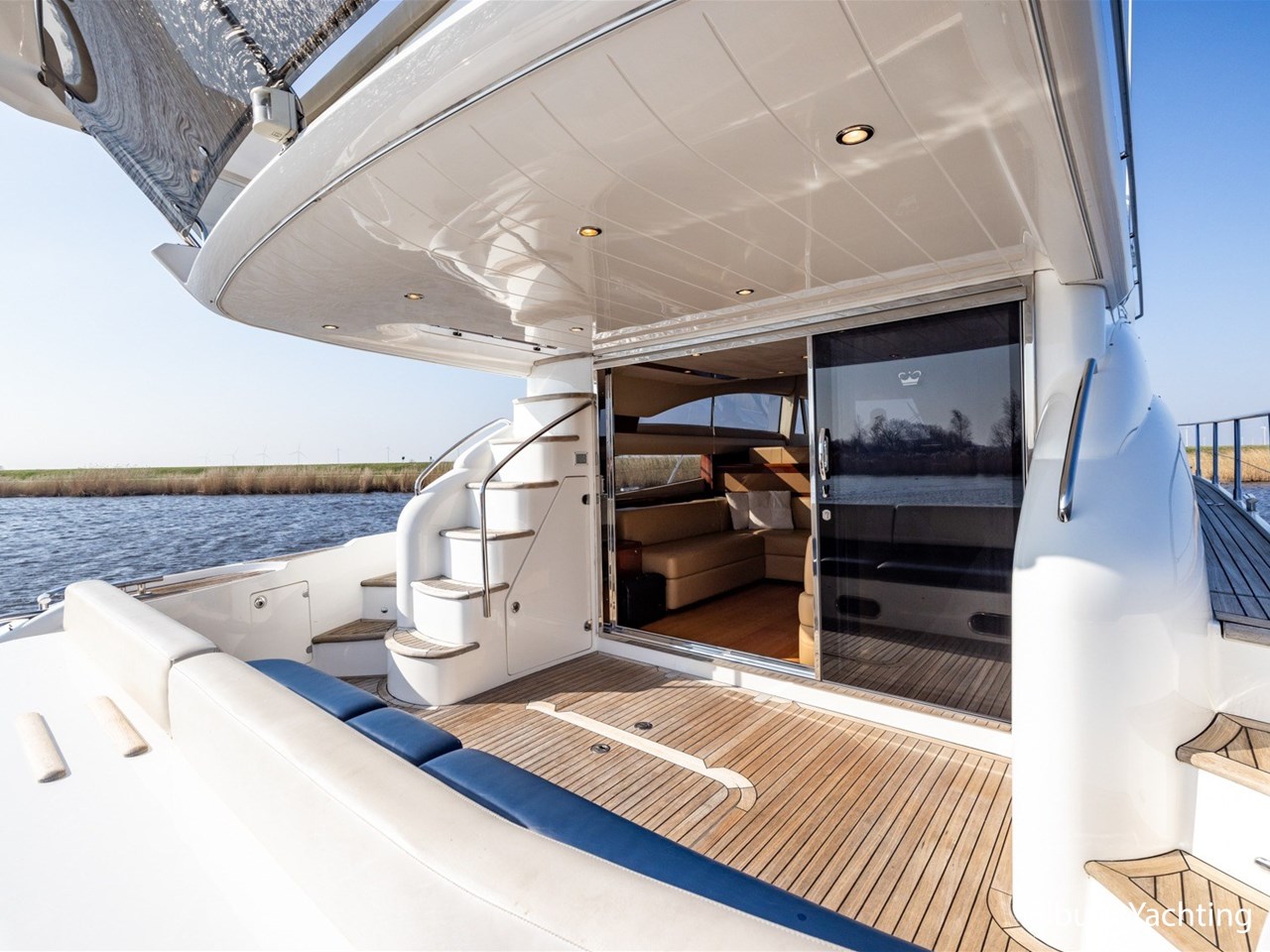 Beautiful Princess 58 Flybridge from renowned yacht builder Princess Yachts. The yacht features high-quality finishes and is fully equipped. The Princess 58 Fybridge has three spacious cabins, two of which have en-suite facilities. The yacht also has a crew cabin that can be accessed via the cockpit bench. The owners cabin is amidships with beautiful windows that provide plenty of light, great views and can be opened for ventilation. Luxurious interior. Spacious open cockpit that can be fully closed by means of a tent and has new upholstery (2024). Large stainless steel sliding door to spacious saloon, connecting indoor and outdoor space. Entering the saloon, you will find a spacious u-shaped settee with a TV on lift. The spacious dinette next to the steering position ensures that it is possible for the skipper to stay in touch with the company on board, the steering position features 2 luxury cruising seats, and a yacht controller remote control making docking and mooring easy. The yacht features: complete cockpit tent + bimini (2024), screens for the windows (2024), high-gloss cherry wood interior with beige leather upholstery, white suede ceilings, Bose audio system, fridge in saloon, new combi microwave (2024), dinette at co-sailing height, 2 leather cruising seats, rear-view camera, CruisAir air conditioning controllable in each room, Zanussi dishwasher, Bosch washer-dryer combination, lots of light through large windows in owner's cabin, one of the windows can be opened for ventilation, 2 showers in lockable cabin, spacious cockpit with lazy stairs to flybridge, wetbar with sink and grill on flybridge, refrigeration space between the benches, berth space on flybridge, upholstery completely covered with covers. For questions and/or to make an appointment, you are welcome 7 days a week at Elburg Yachting.