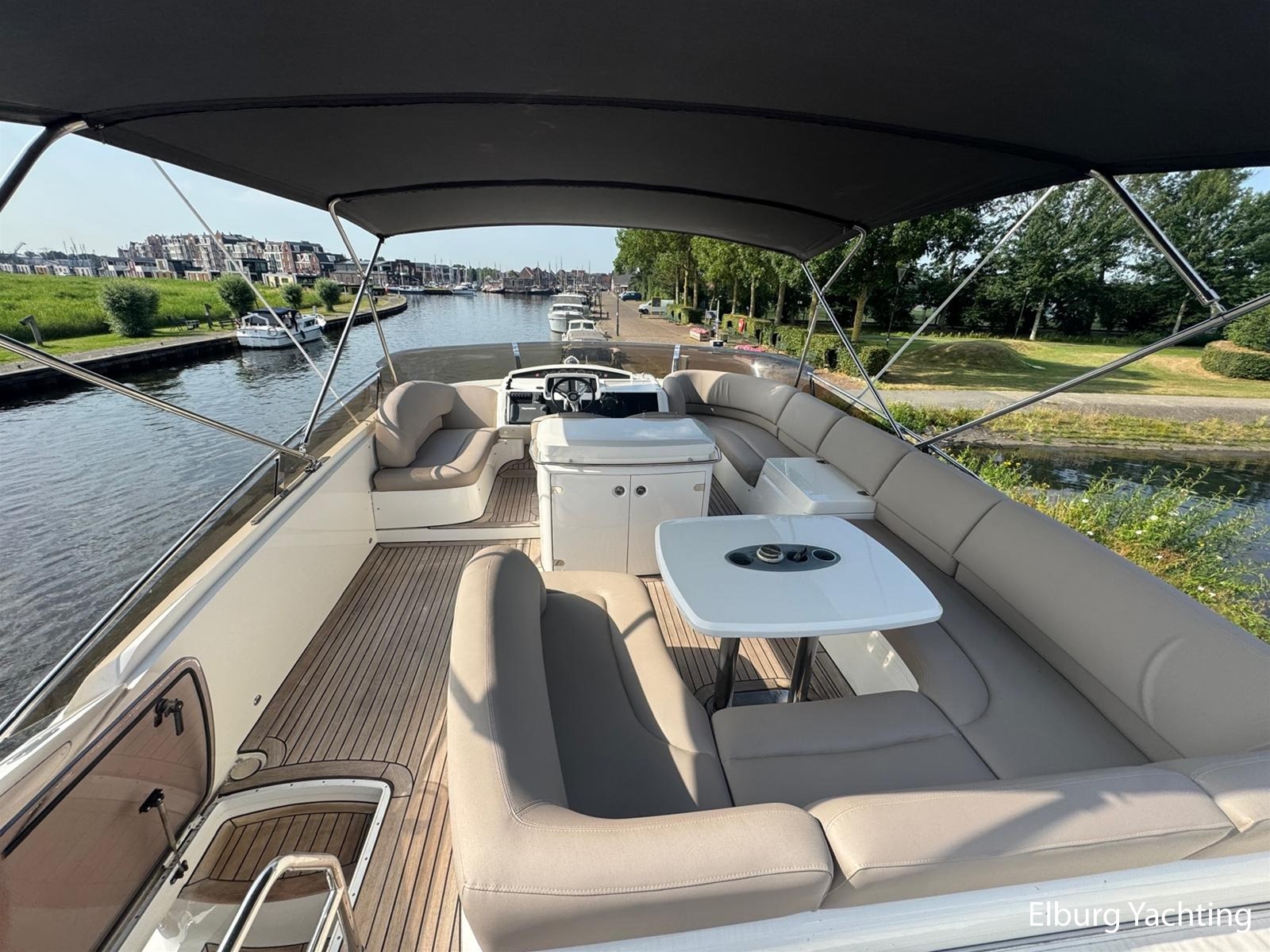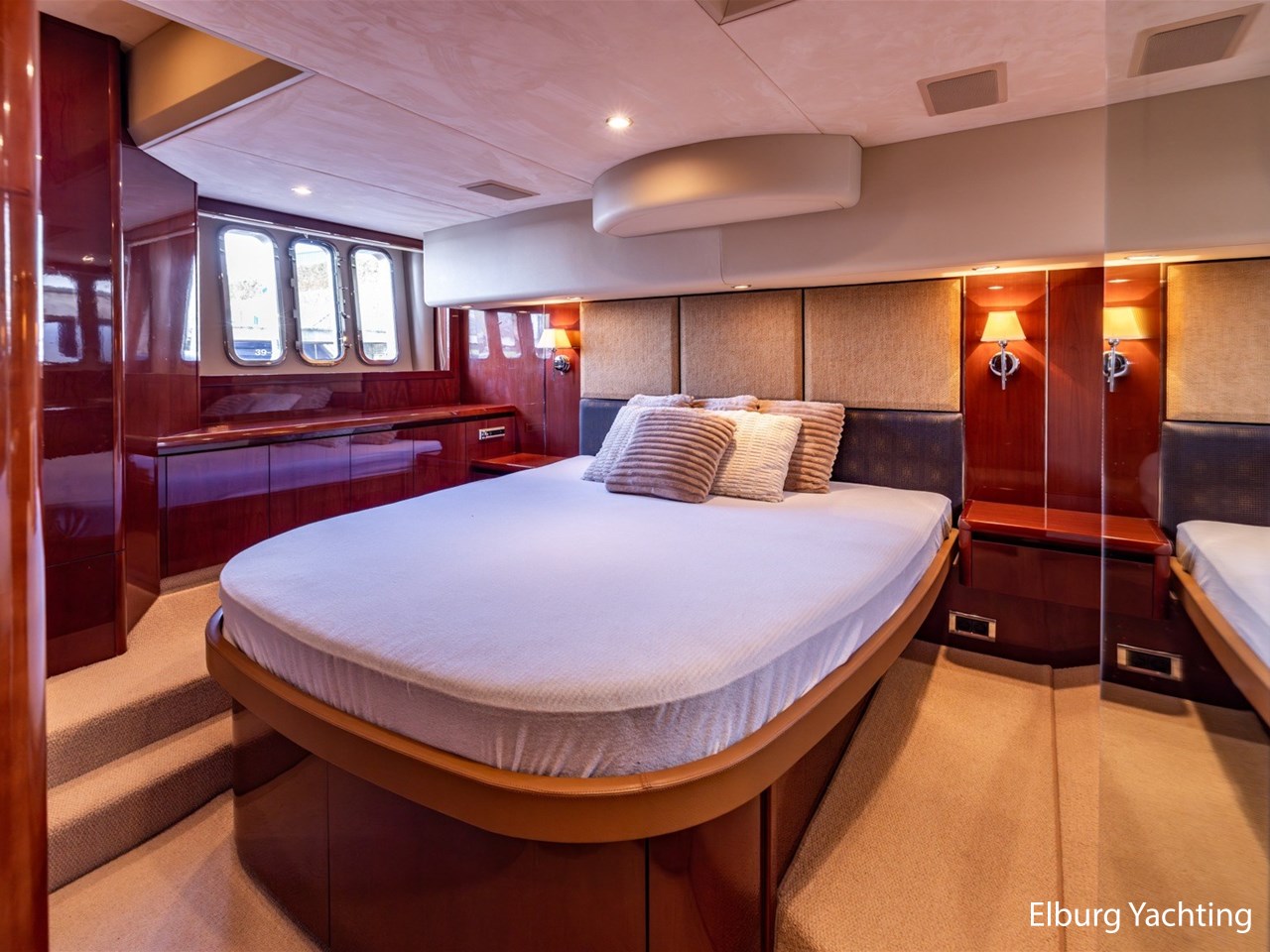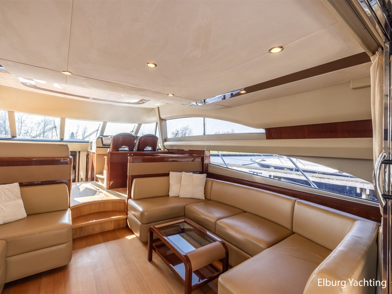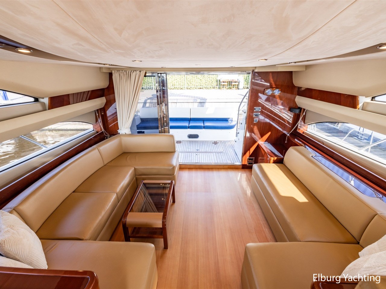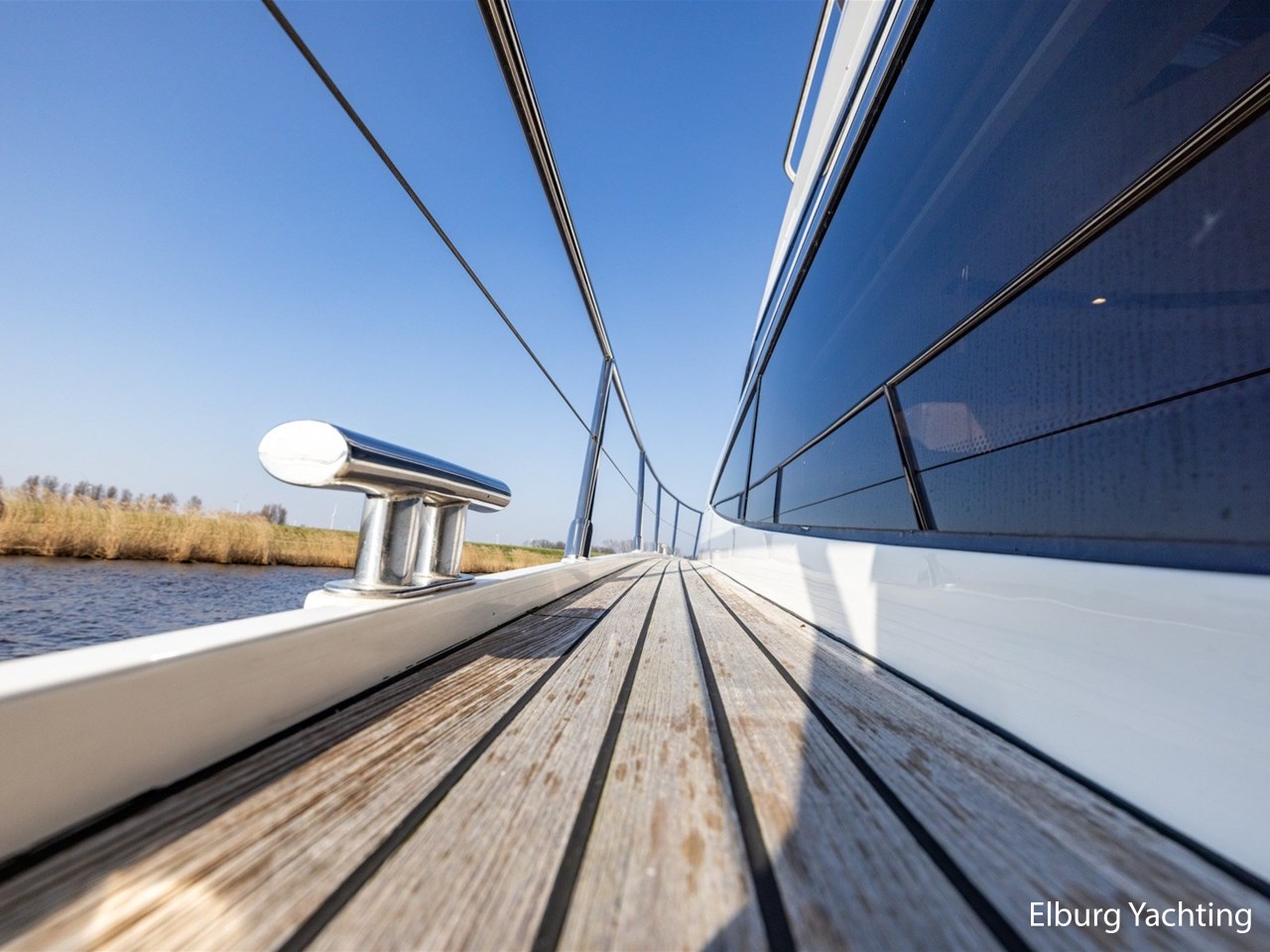 Beautiful Princess 58 Flybridge from renowned yacht builder Princess Yachts. The yacht features high-quality finishes and is fully equipped. The Princess 58 Fybridge has three spacious cabins, two of which have en-suite facilities. The yacht also has a crew cabin that can be accessed via the cockpit bench. The owners cabin is amidships with beautiful windows that provide plenty of light, great views and can be opened for ventilation. Luxurious interior. Spacious open cockpit that can be fully closed by means of a tent and has new upholstery (2024). Large stainless steel sliding door to spacious saloon, connecting indoor and outdoor space. Entering the saloon, you will find a spacious u-shaped settee with a TV on lift. The spacious dinette next to the steering position ensures that it is possible for the skipper to stay in touch with the company on board, the steering position features 2 luxury cruising seats, and a yacht controller remote control making docking and mooring easy. The yacht features: complete cockpit tent + bimini (2024), screens for the windows (2024), high-gloss cherry wood interior with beige leather upholstery, white suede ceilings, Bose audio system, fridge in saloon, new combi microwave (2024), dinette at co-sailing height, 2 leather cruising seats, rear-view camera, CruisAir air conditioning controllable in each room, Zanussi dishwasher, Bosch washer-dryer combination, lots of light through large windows in owner's cabin, one of the windows can be opened for ventilation, 2 showers in lockable cabin, spacious cockpit with lazy stairs to flybridge, wetbar with sink and grill on flybridge, refrigeration space between the benches, berth space on flybridge, upholstery completely covered with covers. For questions and/or to make an appointment, you are welcome 7 days a week at Elburg Yachting.