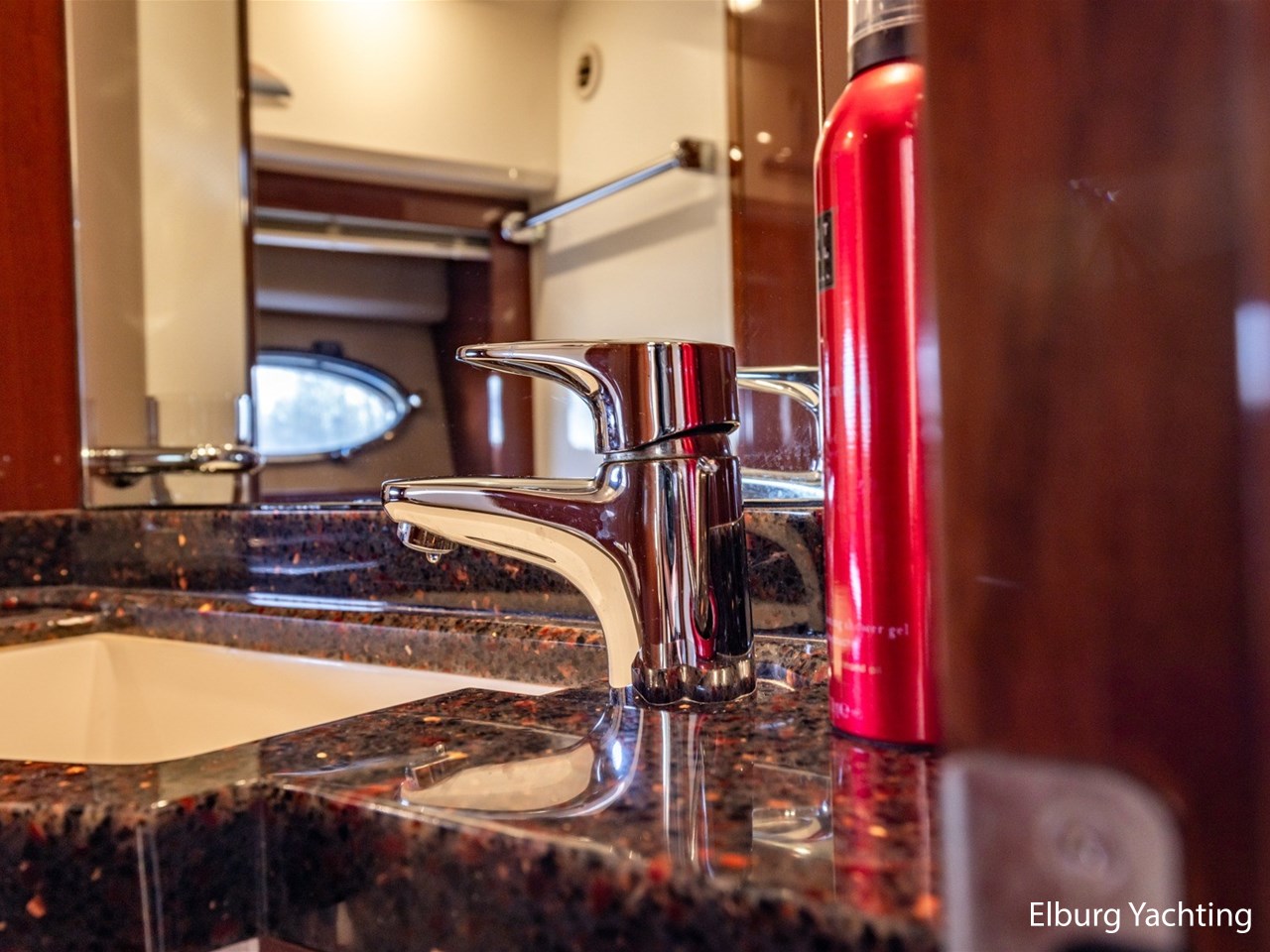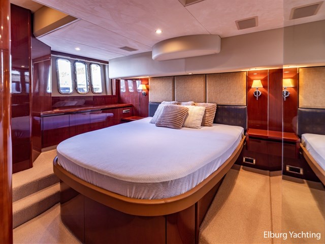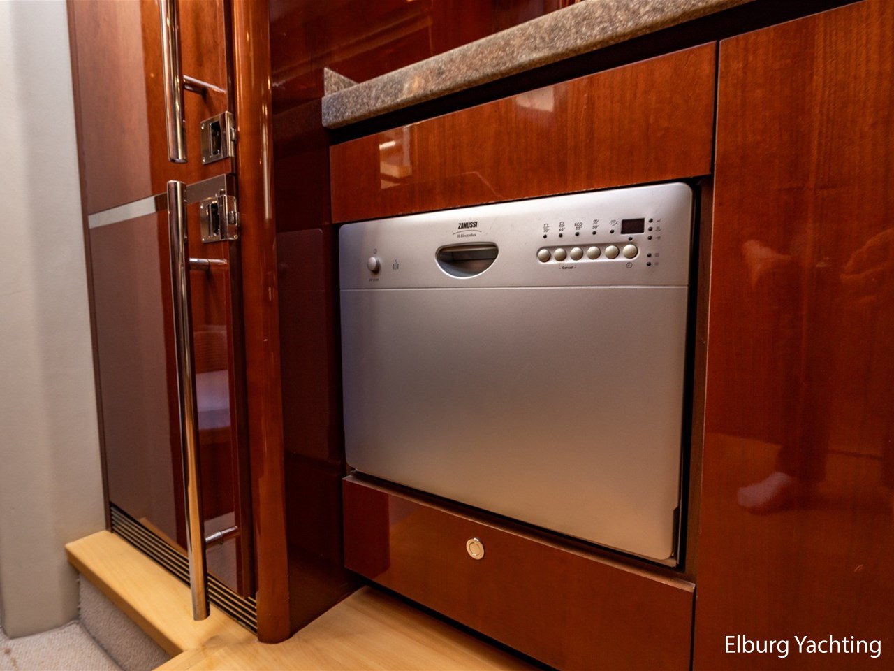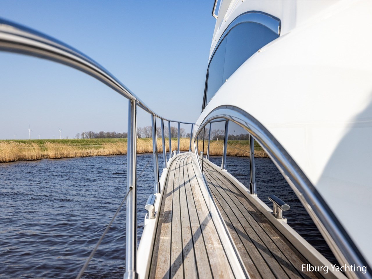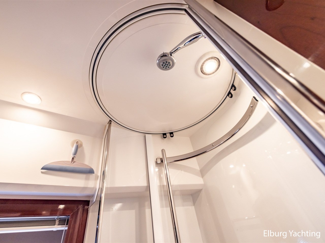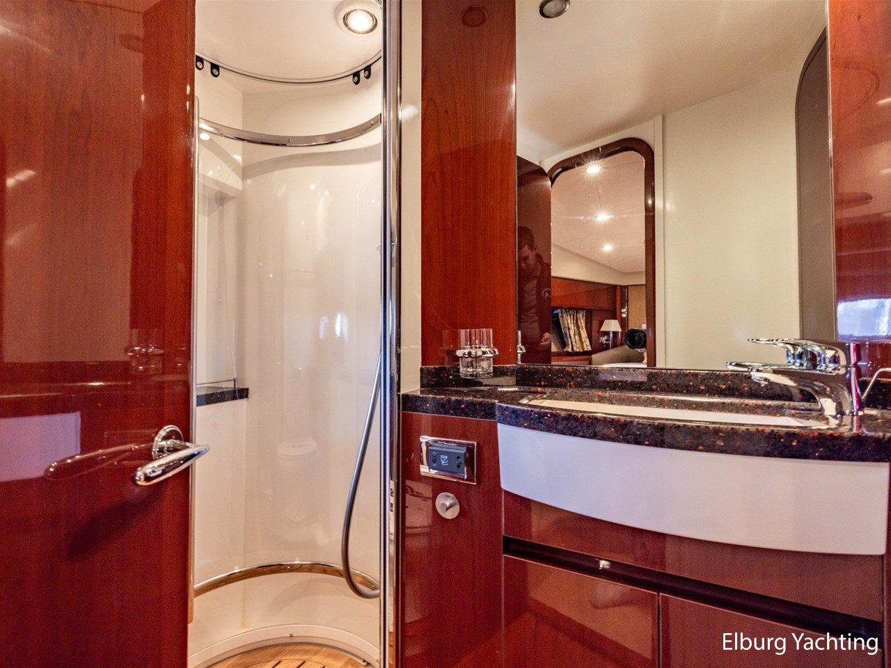 Beautiful Princess 58 Flybridge from renowned yacht builder Princess Yachts. The yacht features high-quality finishes and is fully equipped. The Princess 58 Fybridge has three spacious cabins, two of which have en-suite facilities. The yacht also has a crew cabin that can be accessed via the cockpit bench. The owners cabin is amidships with beautiful windows that provide plenty of light, great views and can be opened for ventilation. Luxurious interior. Spacious open cockpit that can be fully closed by means of a tent and has new upholstery (2024). Large stainless steel sliding door to spacious saloon, connecting indoor and outdoor space. Entering the saloon, you will find a spacious u-shaped settee with a TV on lift. The spacious dinette next to the steering position ensures that it is possible for the skipper to stay in touch with the company on board, the steering position features 2 luxury cruising seats, and a yacht controller remote control making docking and mooring easy. The yacht features: complete cockpit tent + bimini (2024), screens for the windows (2024), high-gloss cherry wood interior with beige leather upholstery, white suede ceilings, Bose audio system, fridge in saloon, new combi microwave (2024), dinette at co-sailing height, 2 leather cruising seats, rear-view camera, CruisAir air conditioning controllable in each room, Zanussi dishwasher, Bosch washer-dryer combination, lots of light through large windows in owner's cabin, one of the windows can be opened for ventilation, 2 showers in lockable cabin, spacious cockpit with lazy stairs to flybridge, wetbar with sink and grill on flybridge, refrigeration space between the benches, berth space on flybridge, upholstery completely covered with covers. For questions and/or to make an appointment, you are welcome 7 days a week at Elburg Yachting.