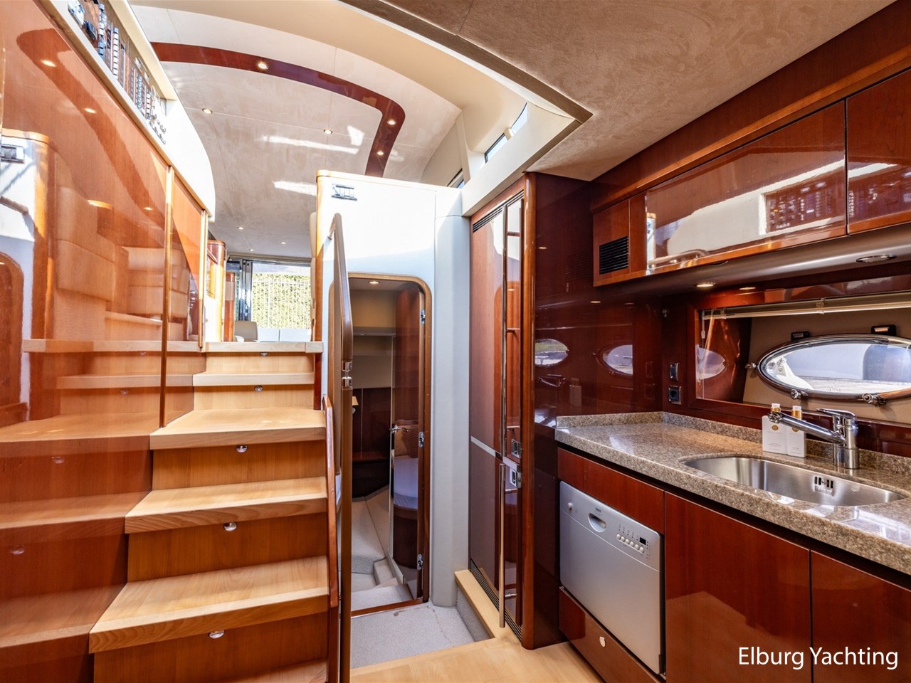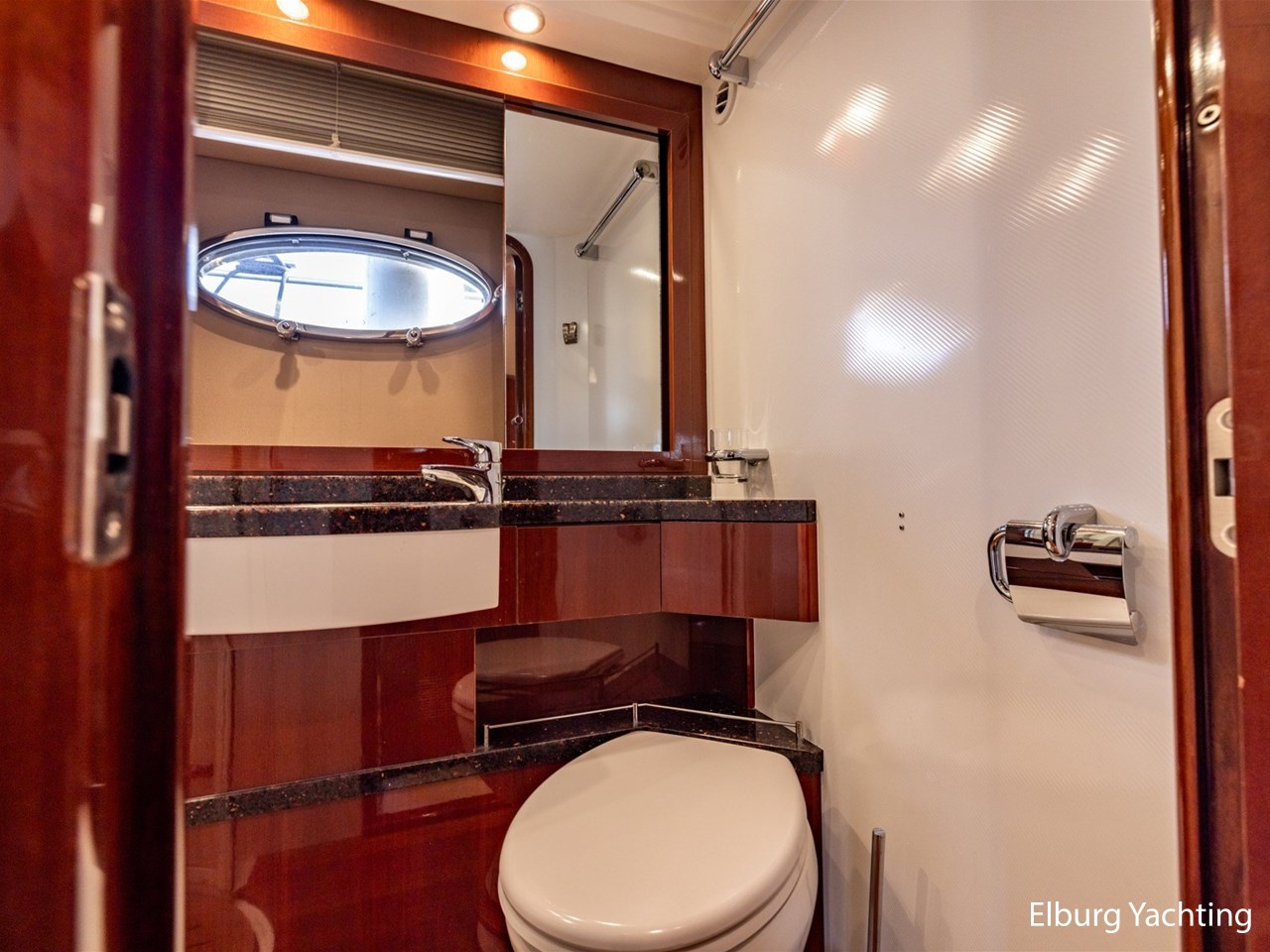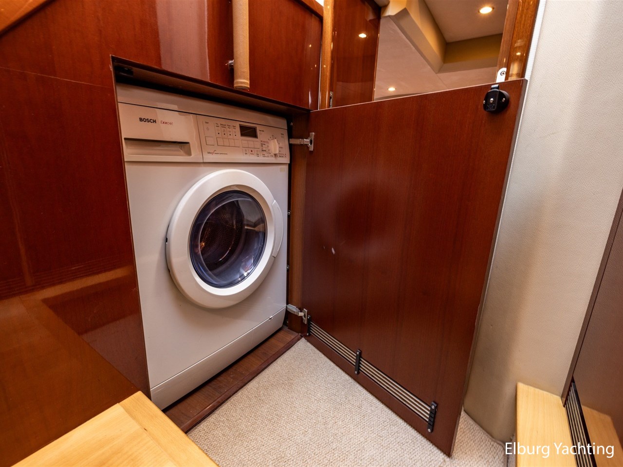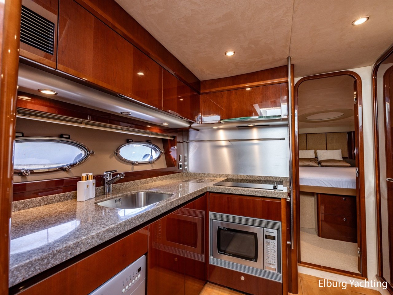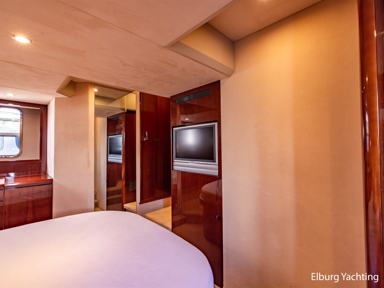 Beautiful Princess 58 Flybridge from renowned yacht builder Princess Yachts. The yacht features high-quality finishes and is fully equipped. The Princess 58 Fybridge has three spacious cabins, two of which have en-suite facilities. The yacht also has a crew cabin that can be accessed via the cockpit bench. The owners cabin is amidships with beautiful windows that provide plenty of light, great views and can be opened for ventilation. Luxurious interior. Spacious open cockpit that can be fully closed by means of a tent and has new upholstery (2024). Large stainless steel sliding door to spacious saloon, connecting indoor and outdoor space. Entering the saloon, you will find a spacious u-shaped settee with a TV on lift. The spacious dinette next to the steering position ensures that it is possible for the skipper to stay in touch with the company on board, the steering position features 2 luxury cruising seats, and a yacht controller remote control making docking and mooring easy. The yacht features: complete cockpit tent + bimini (2024), screens for the windows (2024), high-gloss cherry wood interior with beige leather upholstery, white suede ceilings, Bose audio system, fridge in saloon, new combi microwave (2024), dinette at co-sailing height, 2 leather cruising seats, rear-view camera, CruisAir air conditioning controllable in each room, Zanussi dishwasher, Bosch washer-dryer combination, lots of light through large windows in owner's cabin, one of the windows can be opened for ventilation, 2 showers in lockable cabin, spacious cockpit with lazy stairs to flybridge, wetbar with sink and grill on flybridge, refrigeration space between the benches, berth space on flybridge, upholstery completely covered with covers. For questions and/or to make an appointment, you are welcome 7 days a week at Elburg Yachting.