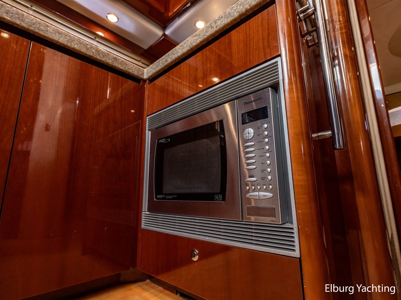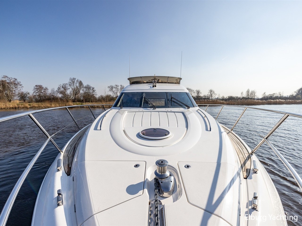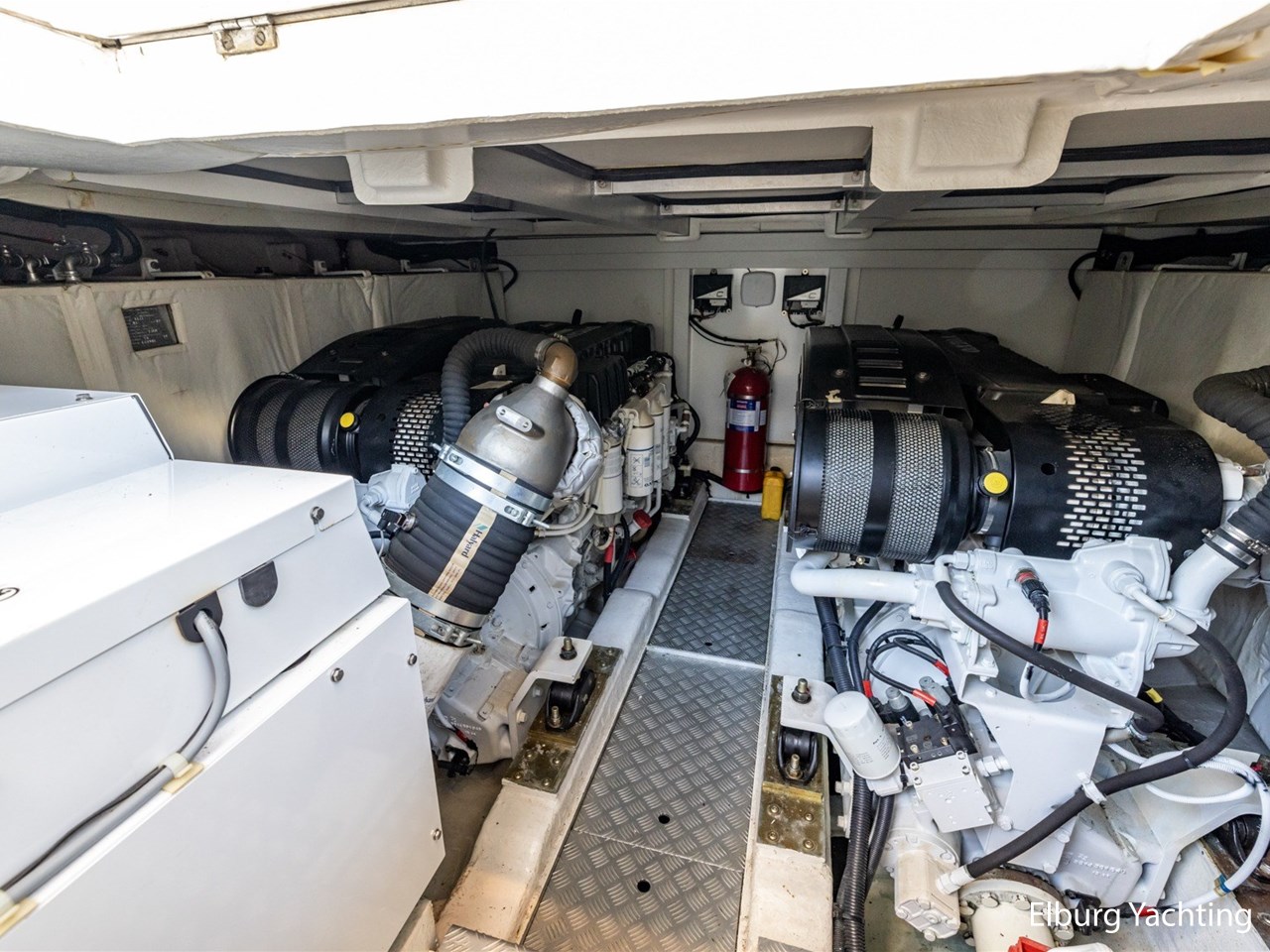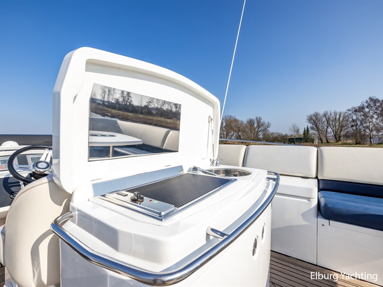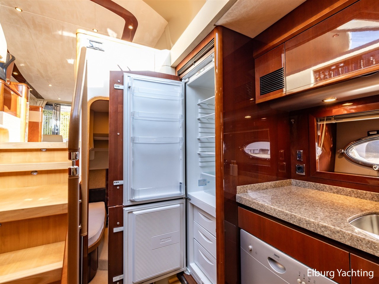 Beautiful Princess 58 Flybridge from renowned yacht builder Princess Yachts. The yacht features high-quality finishes and is fully equipped. The Princess 58 Fybridge has three spacious cabins, two of which have en-suite facilities. The yacht also has a crew cabin that can be accessed via the cockpit bench. The owners cabin is amidships with beautiful windows that provide plenty of light, great views and can be opened for ventilation. Luxurious interior. Spacious open cockpit that can be fully closed by means of a tent and has new upholstery (2024). Large stainless steel sliding door to spacious saloon, connecting indoor and outdoor space. Entering the saloon, you will find a spacious u-shaped settee with a TV on lift. The spacious dinette next to the steering position ensures that it is possible for the skipper to stay in touch with the company on board, the steering position features 2 luxury cruising seats, and a yacht controller remote control making docking and mooring easy. The yacht features: complete cockpit tent + bimini (2024), screens for the windows (2024), high-gloss cherry wood interior with beige leather upholstery, white suede ceilings, Bose audio system, fridge in saloon, new combi microwave (2024), dinette at co-sailing height, 2 leather cruising seats, rear-view camera, CruisAir air conditioning controllable in each room, Zanussi dishwasher, Bosch washer-dryer combination, lots of light through large windows in owner's cabin, one of the windows can be opened for ventilation, 2 showers in lockable cabin, spacious cockpit with lazy stairs to flybridge, wetbar with sink and grill on flybridge, refrigeration space between the benches, berth space on flybridge, upholstery completely covered with covers. For questions and/or to make an appointment, you are welcome 7 days a week at Elburg Yachting.