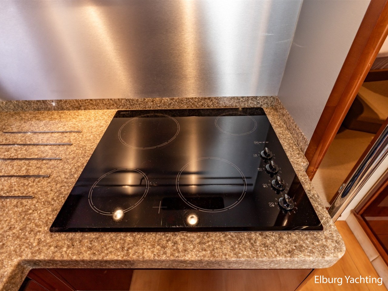 Ceran 4 pit electric burner in galley + grill on flybridge