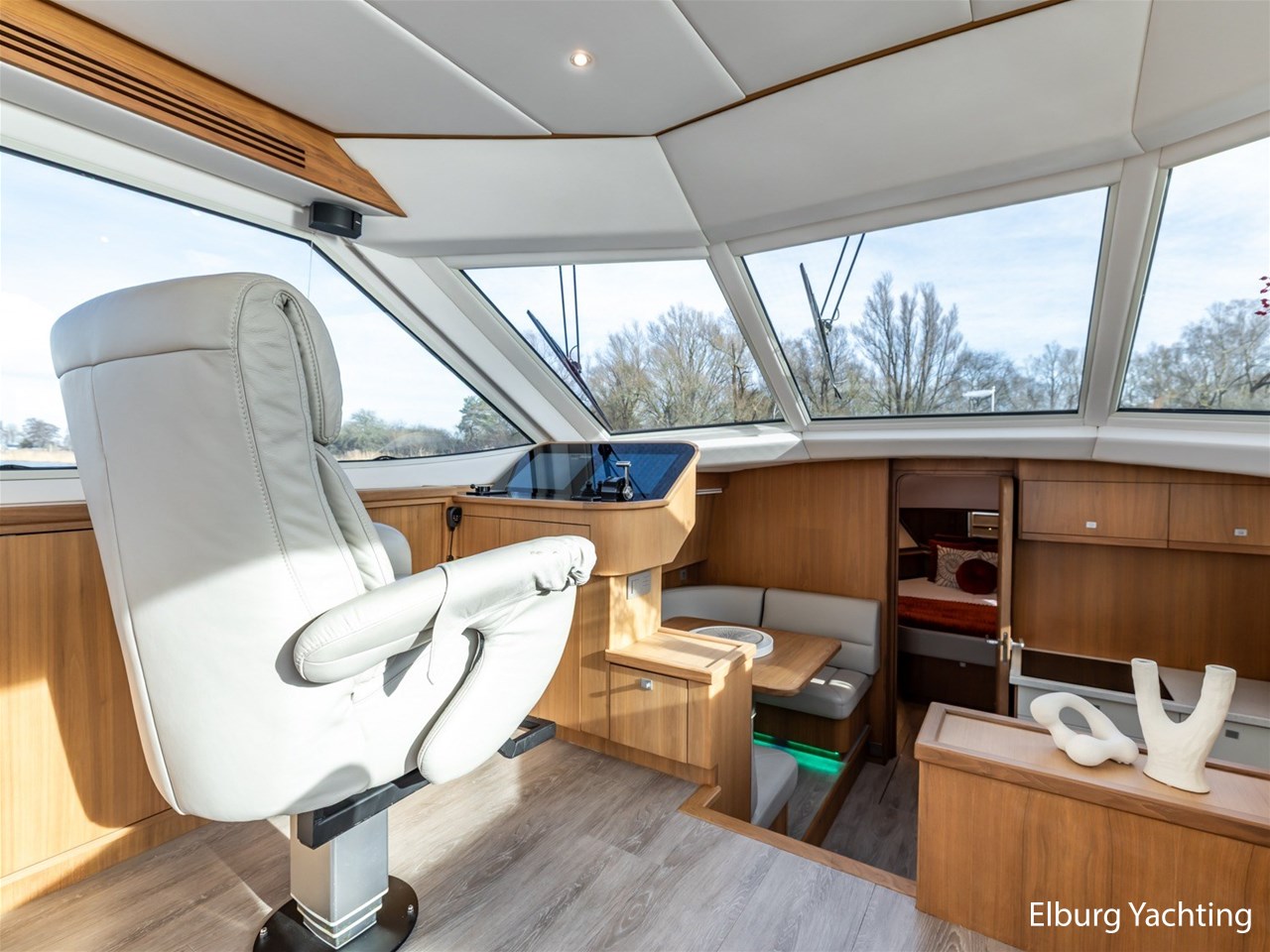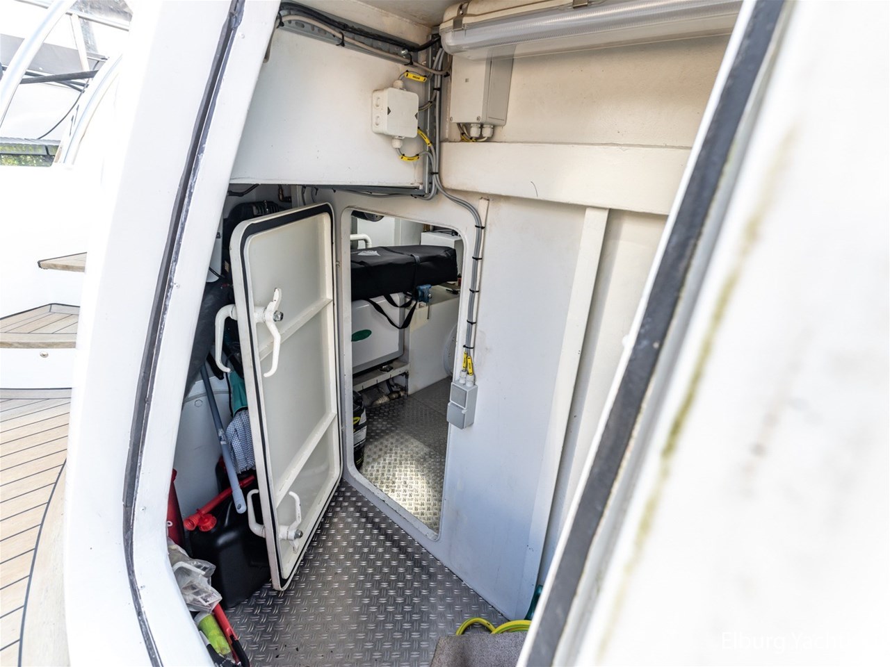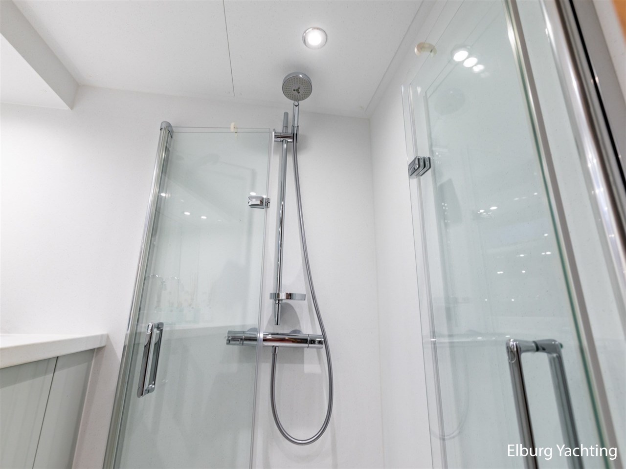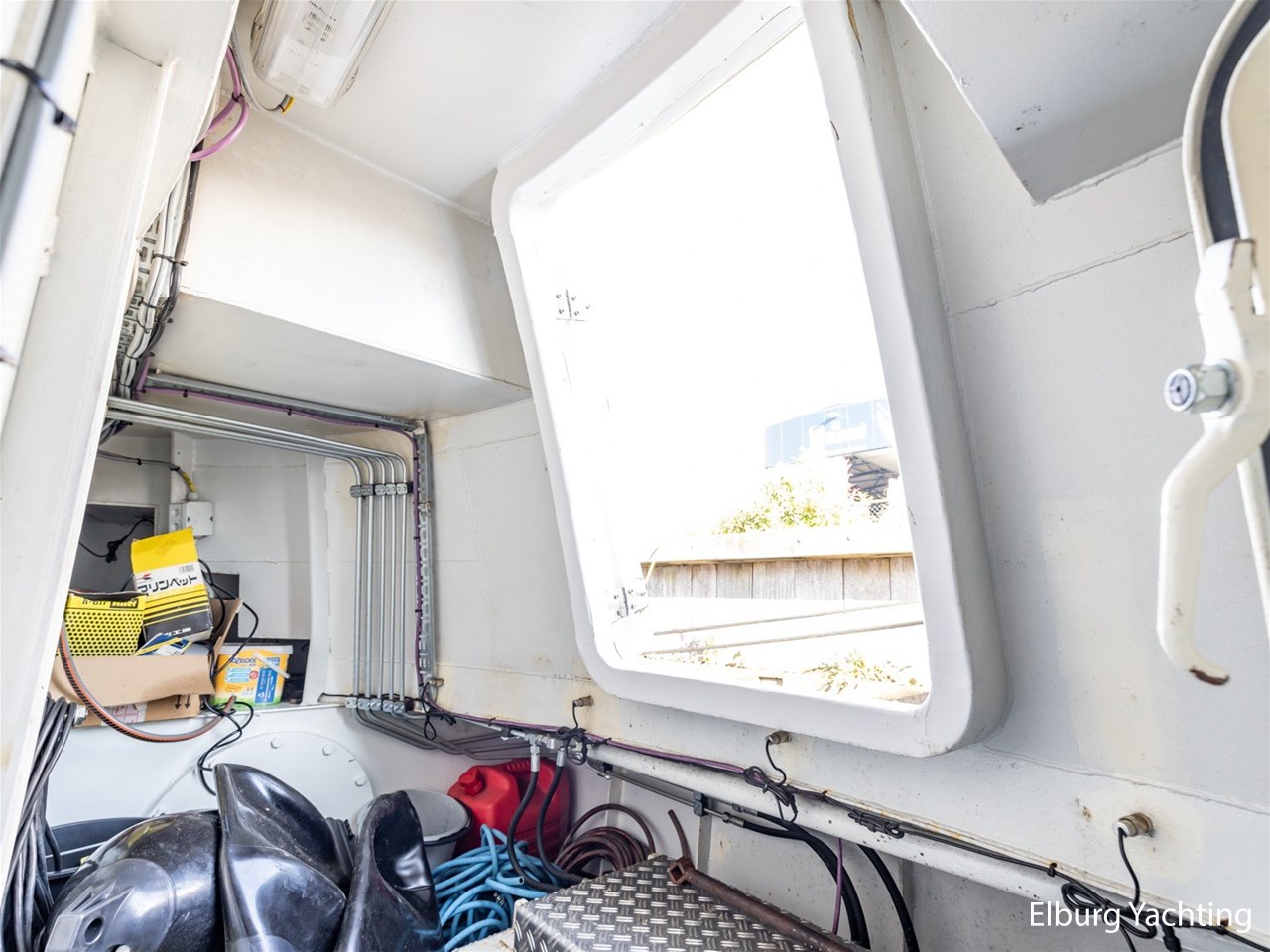 This motor yacht was designed by Vripack and built by the renowned shipyard Het Oude Maasje in Waspik (NL). This robust steel round bilge motor yacht with hydraulic fin stabilizers, elegant flared bow, high bulwark and partly covered side and aft deck is unique in its class. The yacht has two spacious 2-person cabins with shower and toilet en-suite. The saloon is spacious with two movable chairs which are electrically adjustable. The space in the saloon offers the possibility to place a fixed bench by a yacht wood worker in the future. There is good all-round visibility from the steering position and the ship can also be easily operated with a wired control unit with the functionalities rudder/engine and bow-stern thruster. This remote control can be placed on the armrest of the helmsman's seat or on two sides of the aft deck and even on the foredeck. The saloon and the aft deck can be fully connected by the foldable stainless steel doors. A complete tent around the aft deck (removable) provides a comfortable atmosphere. The aft deck can be closed off from the sidedeck with two side doors. Via the aft deck there is also access to a storage space in the aft ship and also a second passage to the engine room, which can also be reached from the inside. A nice addition to the technology on board are the two hydraulic spud poles, which make finding a mooring spot in shallow water child's play and offer almost complete (habitable) autonomy on the water. This Vripack 1700 is equipped with: Full tent around the aft deck with zip-out viewing windows, 4 x stainless steel foldable doors to saloon, outdoor lighting on the aft deck / gangways and stairs to the bathing platform, 3 x TV on lift in saloon + 1 x TV in owner's cabin, Boose audio, partly electrically operated blinds for saloon windows, luxury adjustable pilot seat, dinette table electrically adjustable in height, Miele dishwasher, corian tops in kitchen and bathroom, many 220V wall sockets, extra storage space under kitchen floor, LED lighting throughout the ship, AEG washer-dryer, 2 x access to engine room, central vacuum system, tanks with manholes, extensive hydraulic system for bow and stern thruster / stabilizers / anchor winch / mast lowering system / steering, the hydraulic system is equipped with an additional 24V hydro pump to use the single hydraulic functions without the engine running, double fuel filters + micro separator, double engine water intake, engine room with good accessibility to the technique, 2 x access in railing (SB + PS), air compressor, 2 x hydraulic spud poles, camera system, removable sunshades around saloon windows, oval stainless steel railing all around, removable lightweight gangway, 9 x zonnepaneel op salondak, hydraulically foldable radar mast. Clearance with folded radar bracket is approx. 3.50m.
