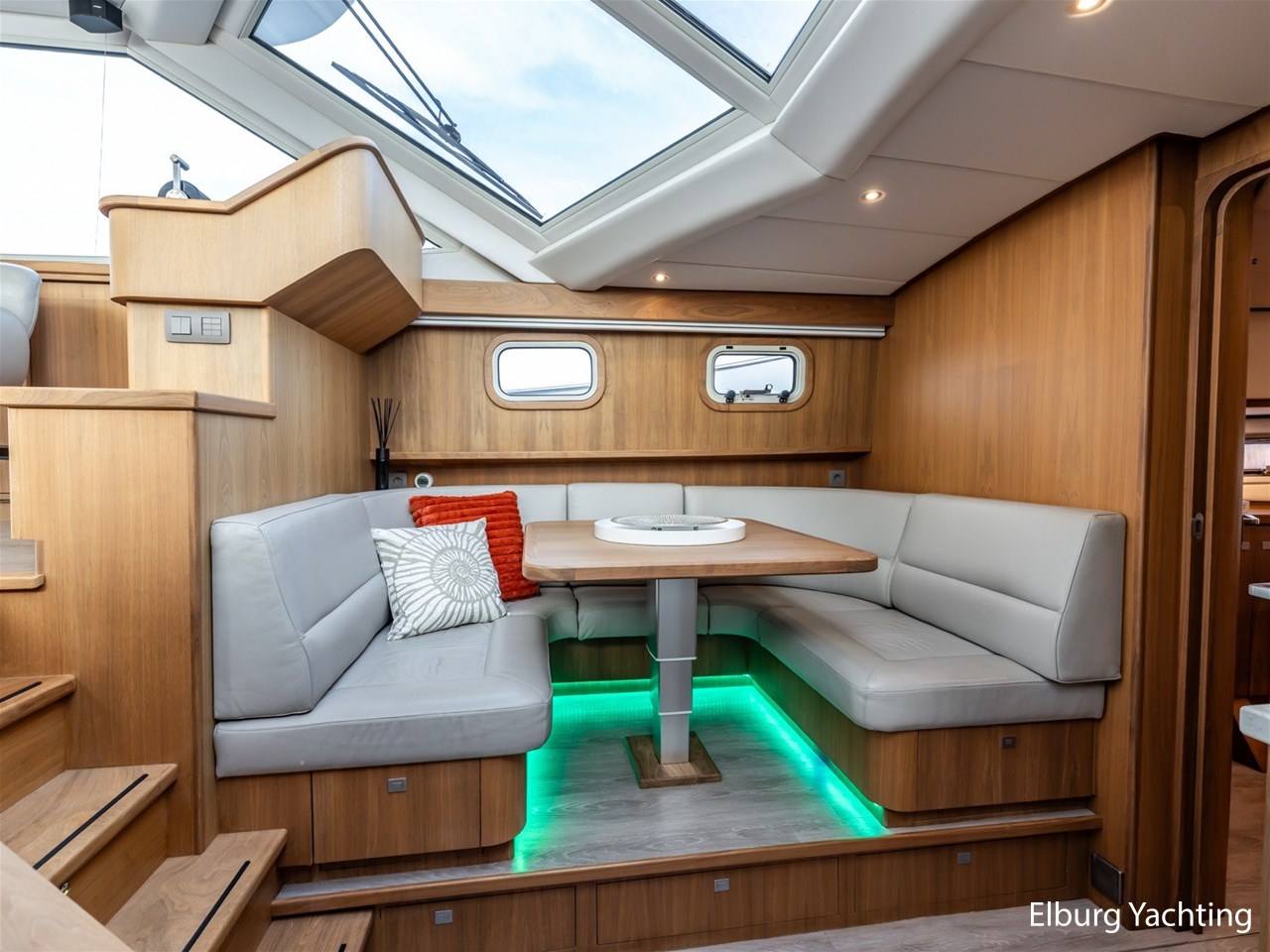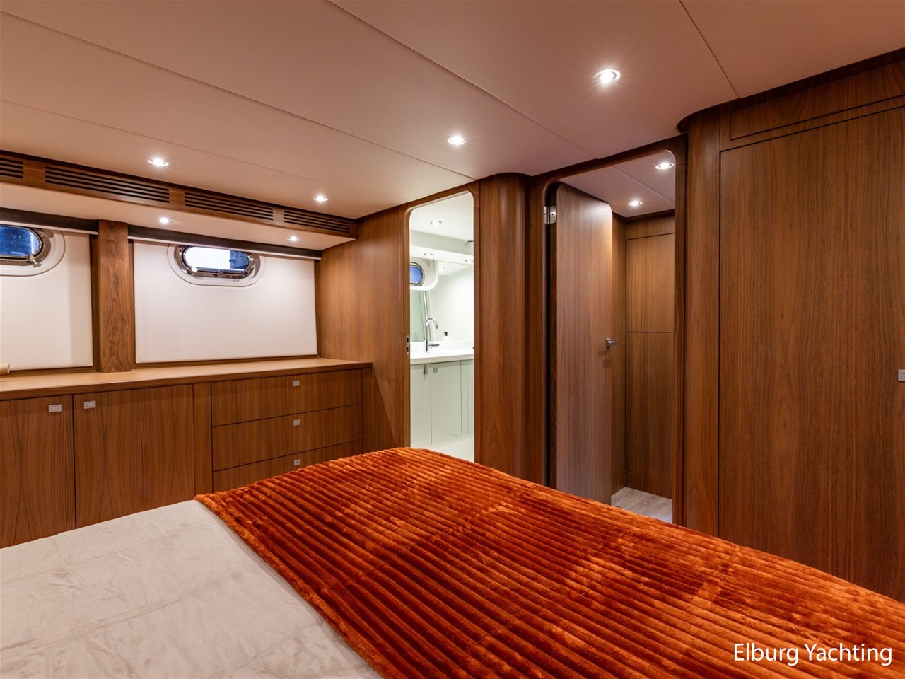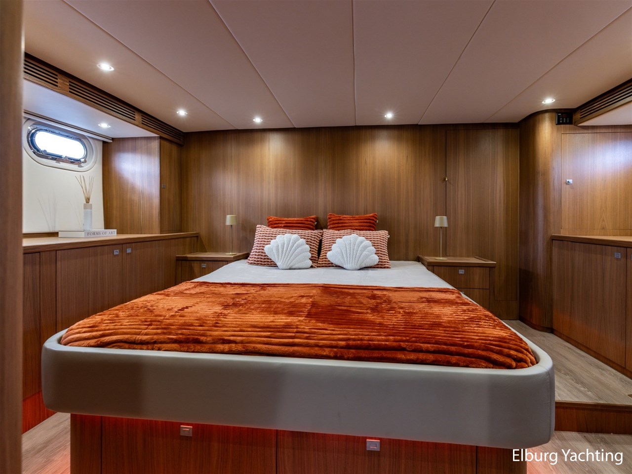 - 4 x fixed (1 x 2 pers. freestanding bed in front cabin + 1 x 2 pers. freestanding bed in owners cabin mid-ship) + dinette against galley can be used as an extra 2-pers. bed