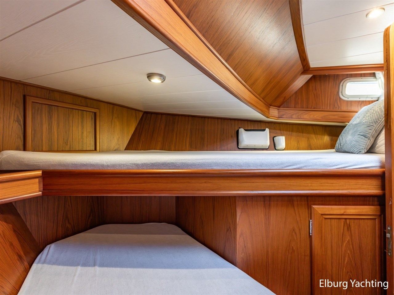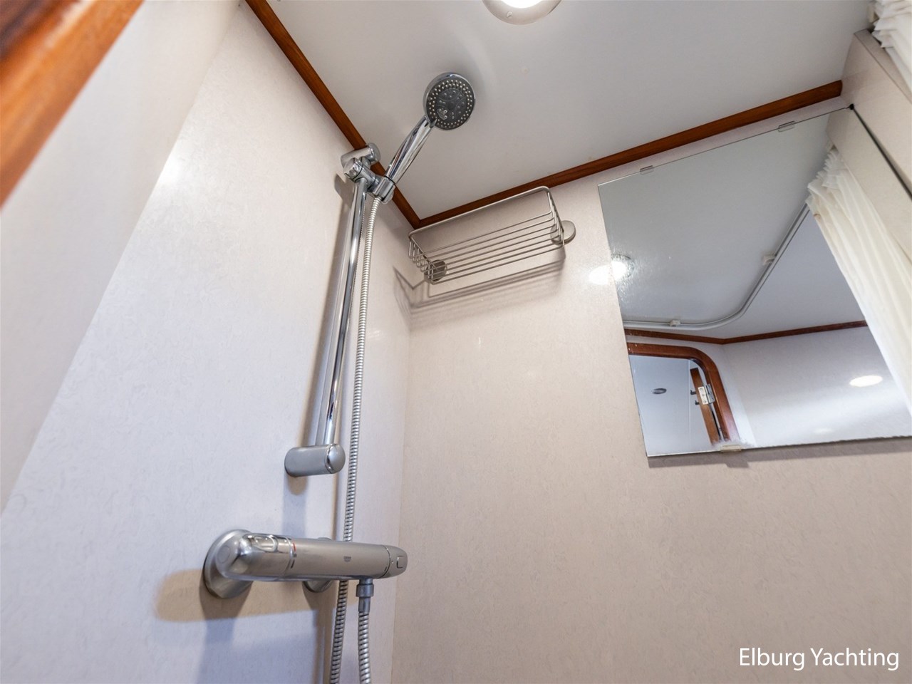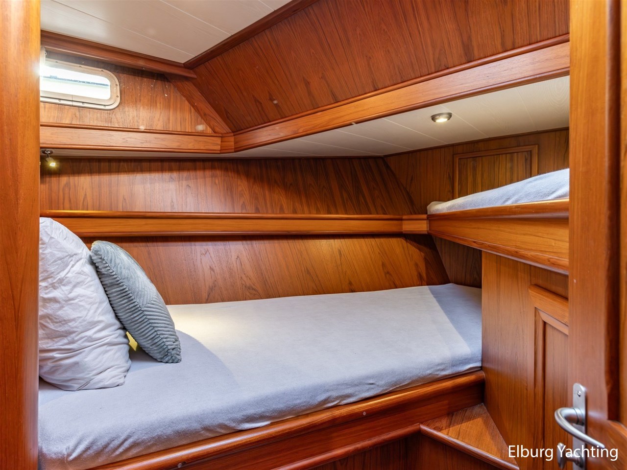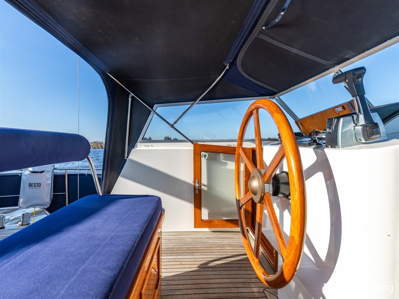 Beautifully lined Bekebrede Kotter built with a round bilged hull and flared bow. On the aft deck there is a round seating with good matching cushions, a table and enough space for a few extra chairs. An L-shaped bench is situated around the steering position so that the captain can sail in company. The entire steering position is covered and there is also a second tent available. The Raymarine equipment is up to date with a 12 inch plotter screen, autopilot, radar, AIS and a wind meter. The bow and stern thruster can also be operated with a remote control. The walk around on deck feels safe with a high and solid stainless steel railing. The flat saloon roof offers space for future solar panels. Upon entering the saloon there are two large comfortable saloon benches. The galley and the U-shaped dinette seat are openly connected to each other. Both the fore and aft cabin have their own toilet. In the owner's cabin in the aft ship you have a comfortable double French bed at your disposal, the aft cabin also has its own shower cabin. The engine room has its own entrance, the floor hatches in the saloon also provide extra space for carrying out maintenance work. This Bekebrede Spitsgatkotter 14.20 is equipped with: foldable biminitop over the aft deck, removable stainless steel side stairs, 2 x passage in railing (SB + PS), storage space under the steering bench, 4 x windscreen wiper, TV in saloon, KVH internet/WiFi dome, electrically foldable mast, clearance height with standing mast approx. 6.90m and with folded mast approx. 3.80m. Engine maintenance carried out in 04/2023.