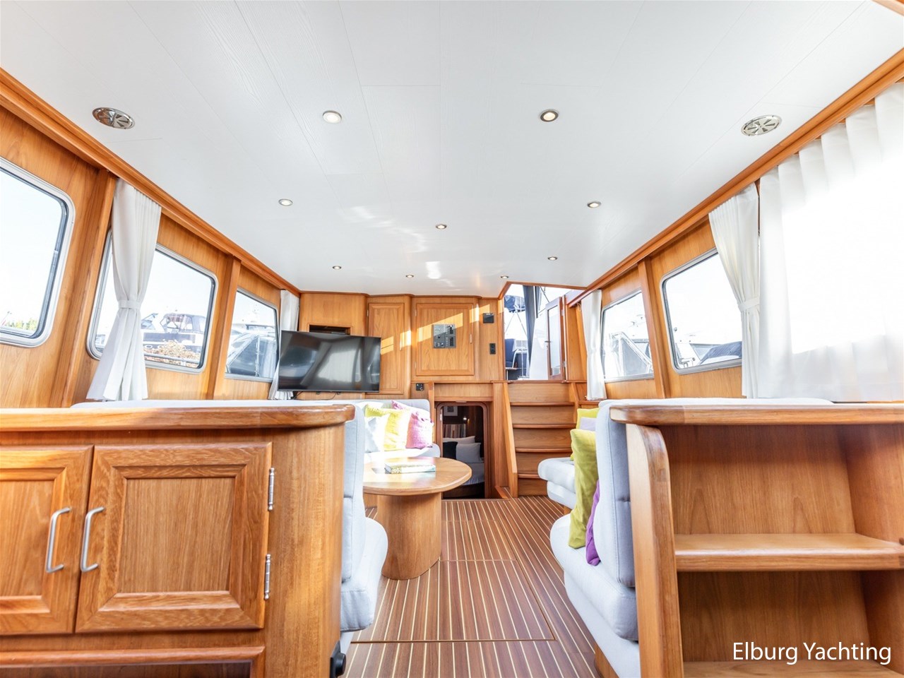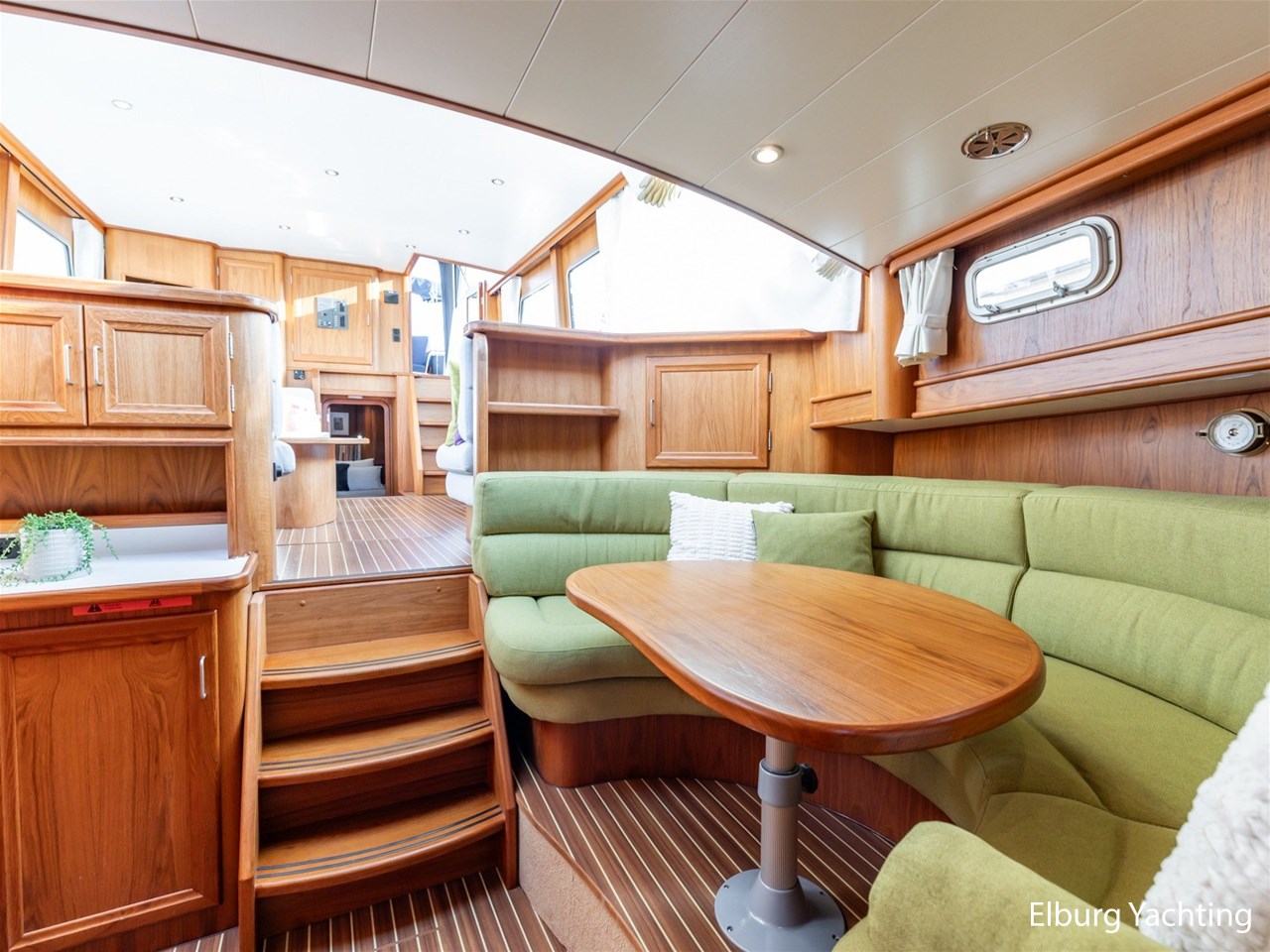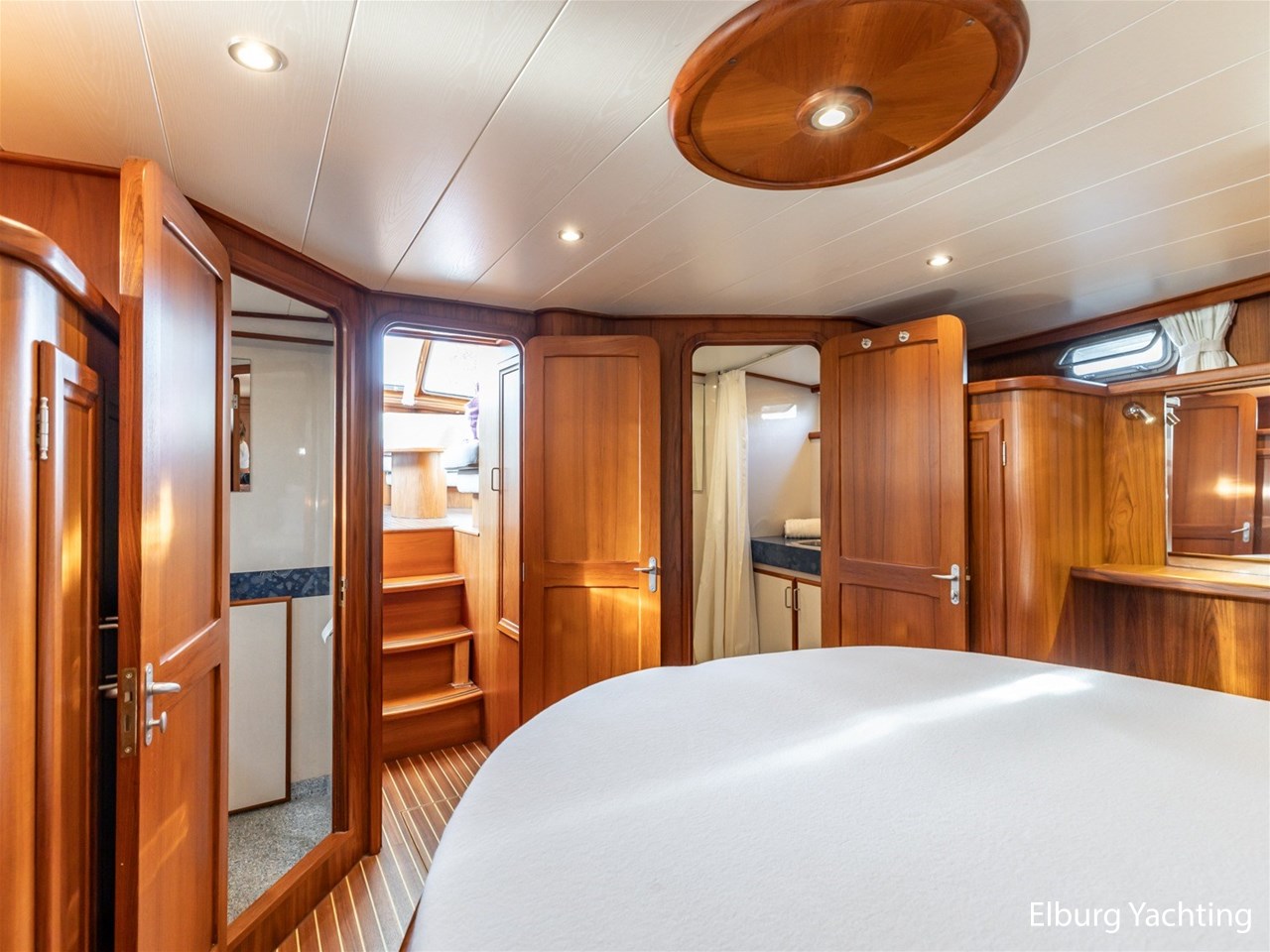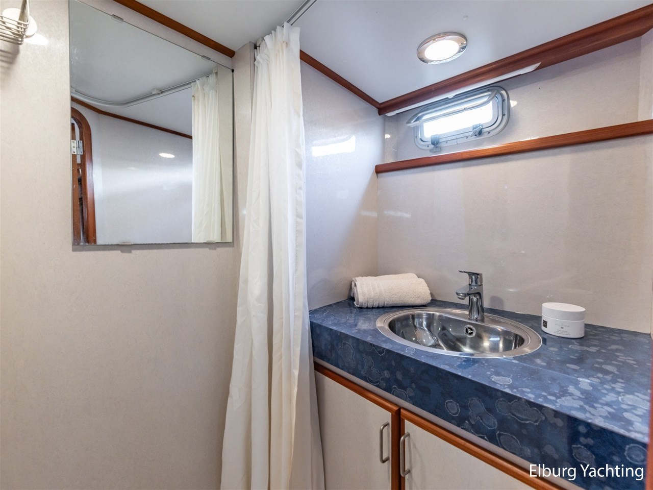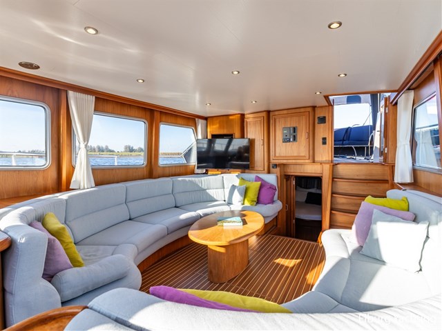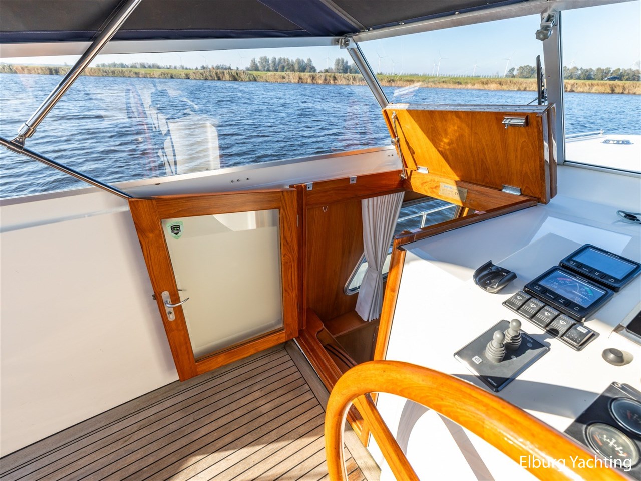 Beautifully lined Bekebrede Kotter built with a round bilged hull and flared bow. On the aft deck there is a round seating with good matching cushions, a table and enough space for a few extra chairs. An L-shaped bench is situated around the steering position so that the captain can sail in company. The entire steering position is covered and there is also a second tent available. The Raymarine equipment is up to date with a 12 inch plotter screen, autopilot, radar, AIS and a wind meter. The bow and stern thruster can also be operated with a remote control. The walk around on deck feels safe with a high and solid stainless steel railing. The flat saloon roof offers space for future solar panels. Upon entering the saloon there are two large comfortable saloon benches. The galley and the U-shaped dinette seat are openly connected to each other. Both the fore and aft cabin have their own toilet. In the owner's cabin in the aft ship you have a comfortable double French bed at your disposal, the aft cabin also has its own shower cabin. The engine room has its own entrance, the floor hatches in the saloon also provide extra space for carrying out maintenance work. This Bekebrede Spitsgatkotter 14.20 is equipped with: foldable biminitop over the aft deck, removable stainless steel side stairs, 2 x passage in railing (SB + PS), storage space under the steering bench, 4 x windscreen wiper, TV in saloon, KVH internet/WiFi dome, electrically foldable mast, clearance height with standing mast approx. 6.90m and with folded mast approx. 3.80m. Engine maintenance carried out in 04/2023.