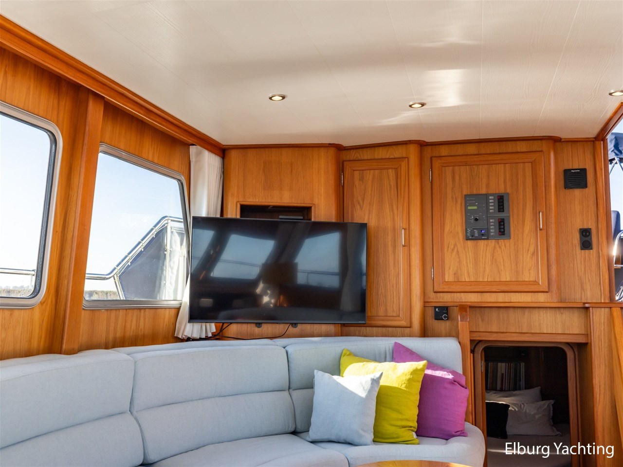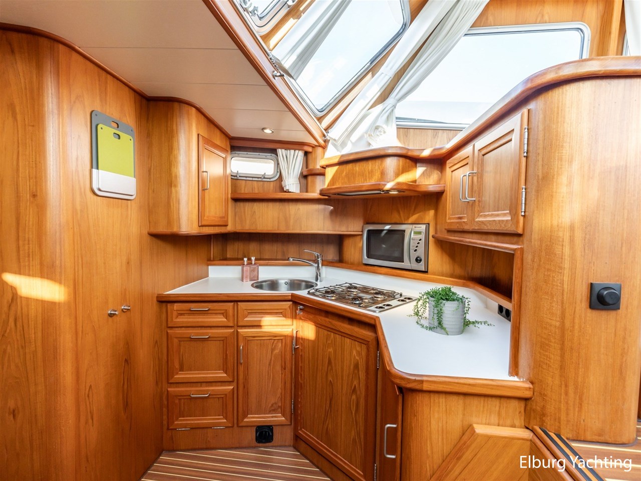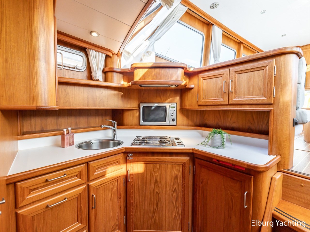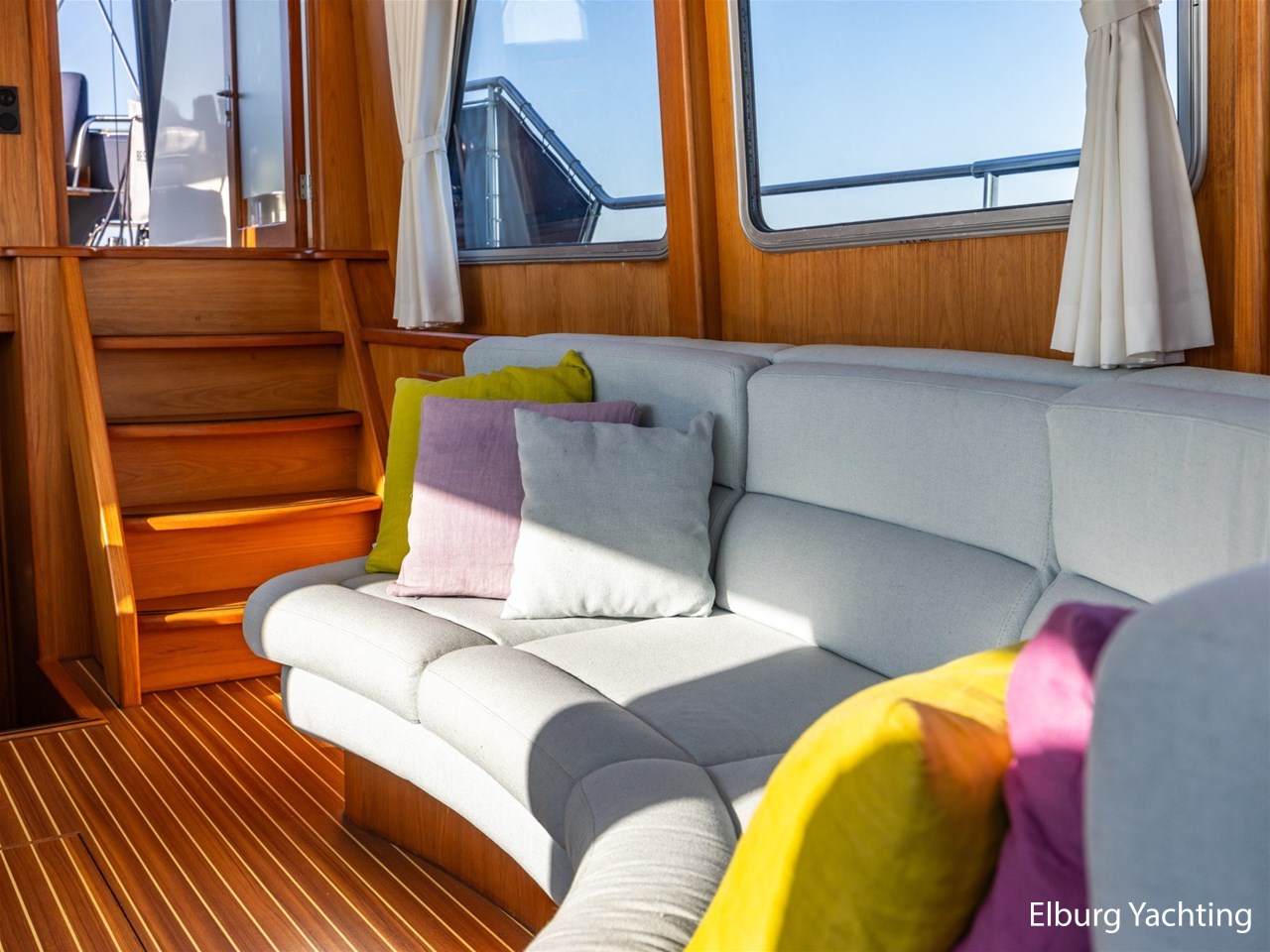 Beautifully lined Bekebrede Kotter built with a round bilged hull and flared bow. On the aft deck there is a round seating with good matching cushions, a table and enough space for a few extra chairs. An L-shaped bench is situated around the steering position so that the captain can sail in company. The entire steering position is covered and there is also a second tent available. The Raymarine equipment is up to date with a 12 inch plotter screen, autopilot, radar, AIS and a wind meter. The bow and stern thruster can also be operated with a remote control. The walk around on deck feels safe with a high and solid stainless steel railing. The flat saloon roof offers space for future solar panels. Upon entering the saloon there are two large comfortable saloon benches. The galley and the U-shaped dinette seat are openly connected to each other. Both the fore and aft cabin have their own toilet. In the owner's cabin in the aft ship you have a comfortable double French bed at your disposal, the aft cabin also has its own shower cabin. The engine room has its own entrance, the floor hatches in the saloon also provide extra space for carrying out maintenance work. This Bekebrede Spitsgatkotter 14.20 is equipped with: foldable biminitop over the aft deck, removable stainless steel side stairs, 2 x passage in railing (SB + PS), storage space under the steering bench, 4 x windscreen wiper, TV in saloon, KVH internet/WiFi dome, electrically foldable mast, clearance height with standing mast approx. 6.90m and with folded mast approx. 3.80m. Engine maintenance carried out in 04/2023.
