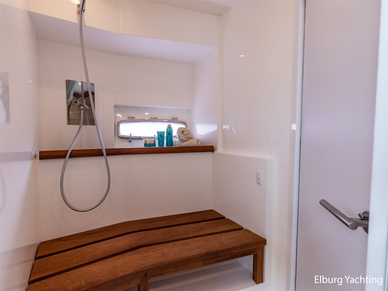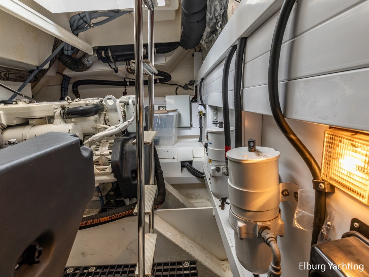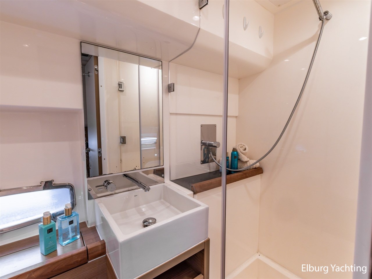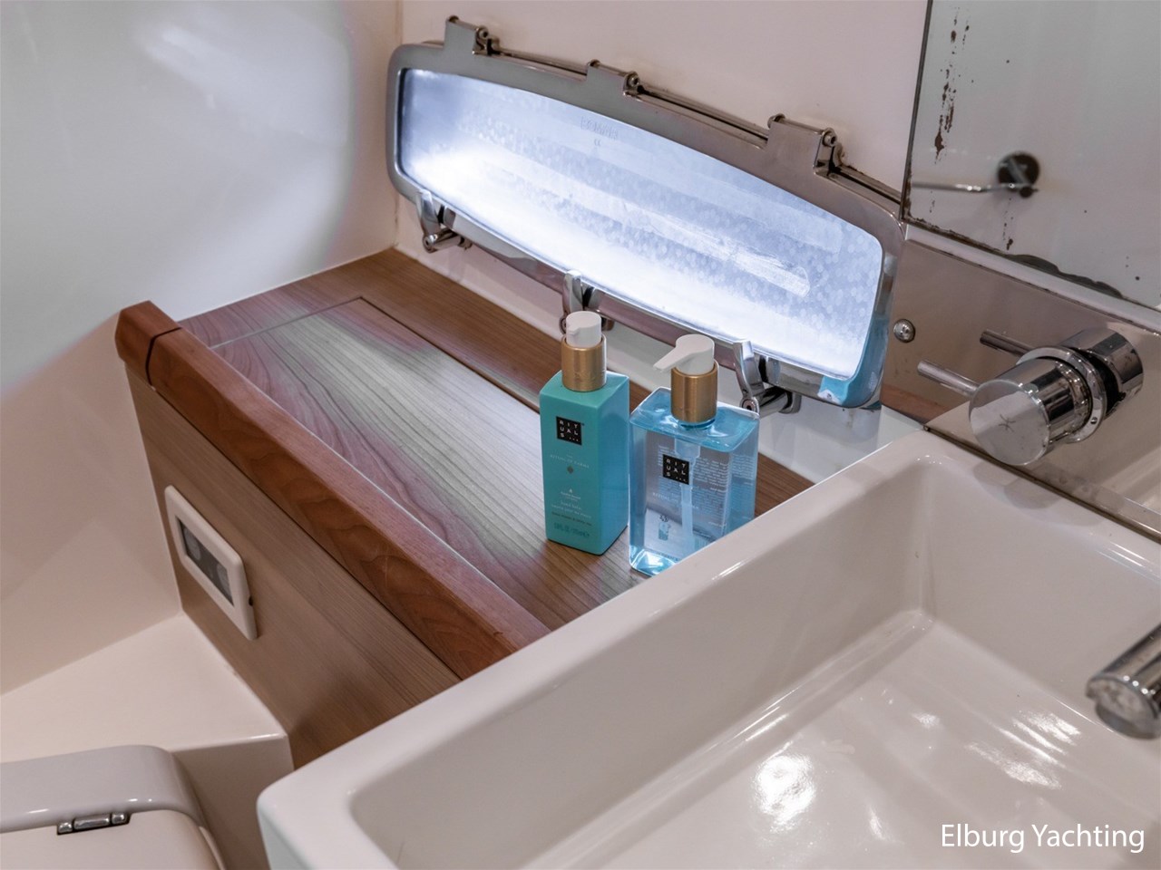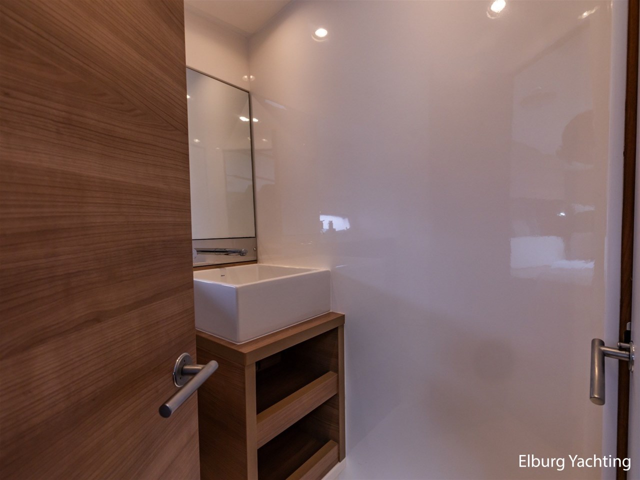 This bright and modern Sealine offers huge deck space, which can be sailed either open (large sliding roof, aft) or closed. Either way, the boat is well and easily walkable, with spacious gangways and easy steps to the bathing platform. The yacht further features a ship-wide owner's cabin with windows in the hull, a good guest cabin with french bed, and finally a spacious combination galley/dinette. Further equipment includes; camera system with 4 cameras (bow camera, port, starboard, stern camera), well-walkable gangway with handle on superstructure, 2 x pocket window in saloon, one of which is next to the steering position, stainless steel sea rail, various storage compartments around bathing platform, low-maintenance yacht, beautiful hinges and locks, handleless cupboard doors, ship-wide owner's cabin with lots of light and space, private seating, an ensuite bathroom which is unprecedented on a 47-footer, beautiful finish, cockpit tent that can be zipped away in parts, wetbar with outdoor grill, refrigerator and cooling compartment, Fusion sound system, electronic throttles with joystick control for mooring, trim tabs, clear dashboard, smartcraft vesselview tank indicators, large sunbed in deck saloon, panoramic windscreen and large windows all around in deck saloon.