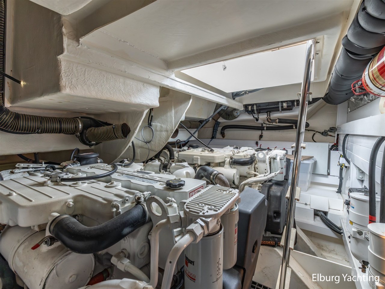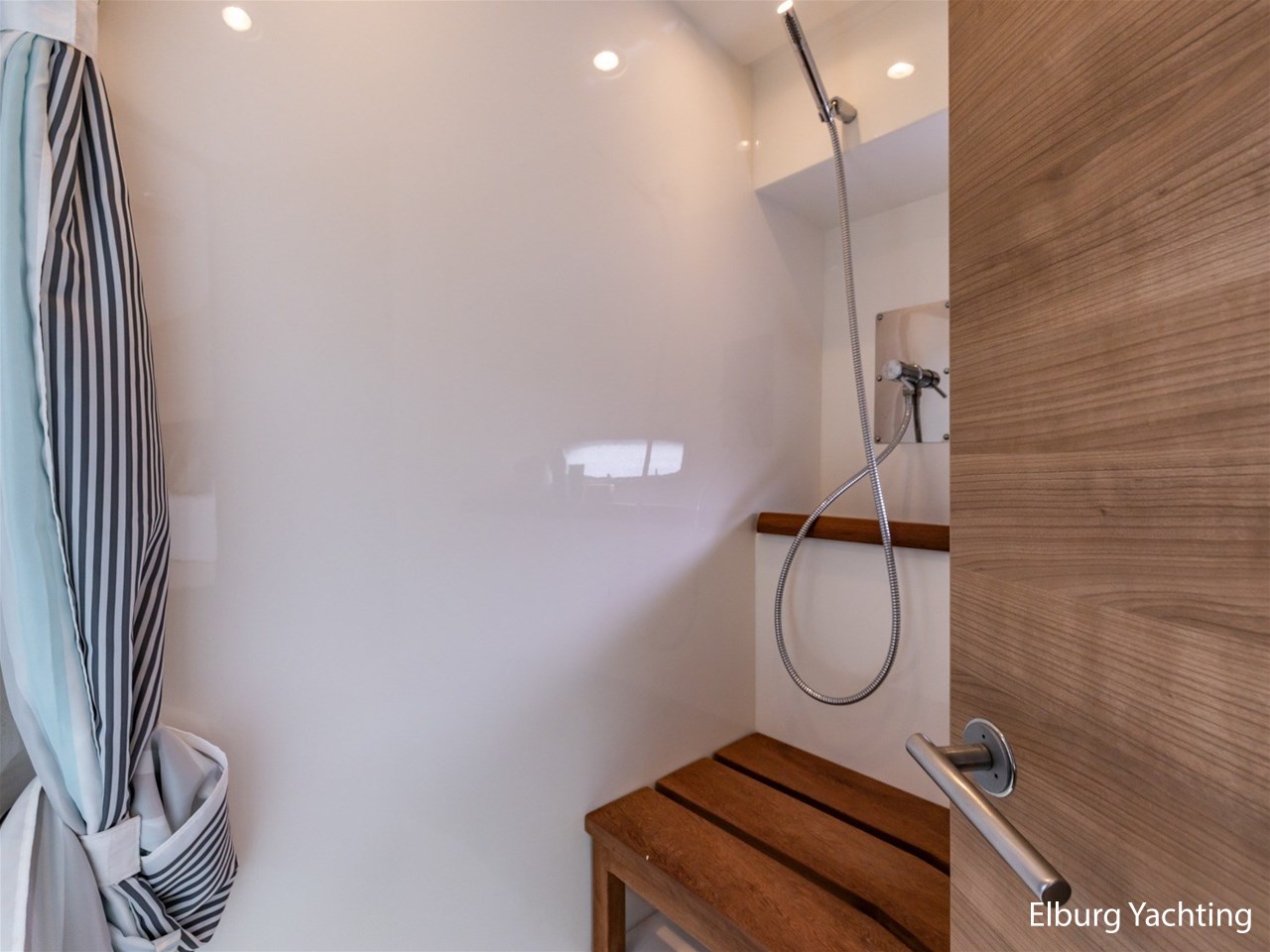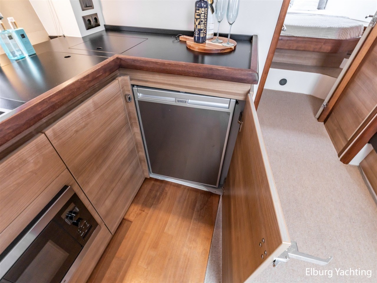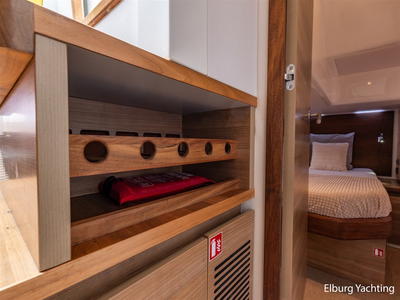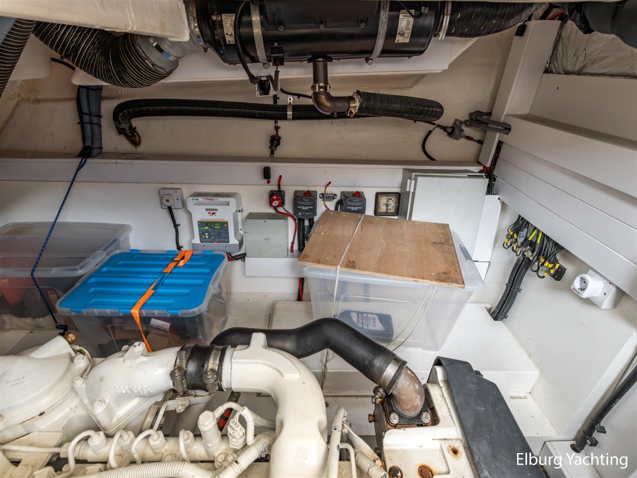 This bright and modern Sealine offers huge deck space, which can be sailed either open (large sliding roof, aft) or closed. Either way, the boat is well and easily walkable, with spacious gangways and easy steps to the bathing platform. The yacht further features a ship-wide owner's cabin with windows in the hull, a good guest cabin with french bed, and finally a spacious combination galley/dinette. Further equipment includes; camera system with 4 cameras (bow camera, port, starboard, stern camera), well-walkable gangway with handle on superstructure, 2 x pocket window in saloon, one of which is next to the steering position, stainless steel sea rail, various storage compartments around bathing platform, low-maintenance yacht, beautiful hinges and locks, handleless cupboard doors, ship-wide owner's cabin with lots of light and space, private seating, an ensuite bathroom which is unprecedented on a 47-footer, beautiful finish, cockpit tent that can be zipped away in parts, wetbar with outdoor grill, refrigerator and cooling compartment, Fusion sound system, electronic throttles with joystick control for mooring, trim tabs, clear dashboard, smartcraft vesselview tank indicators, large sunbed in deck saloon, panoramic windscreen and large windows all around in deck saloon.