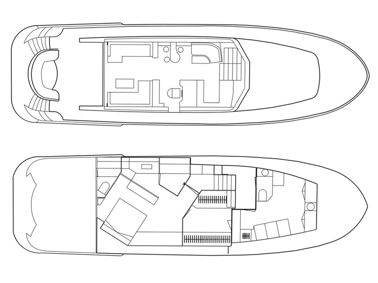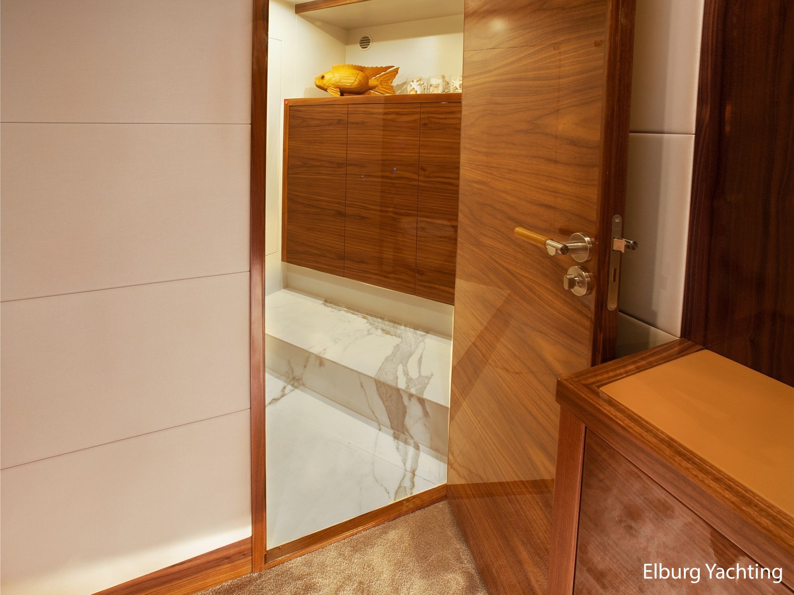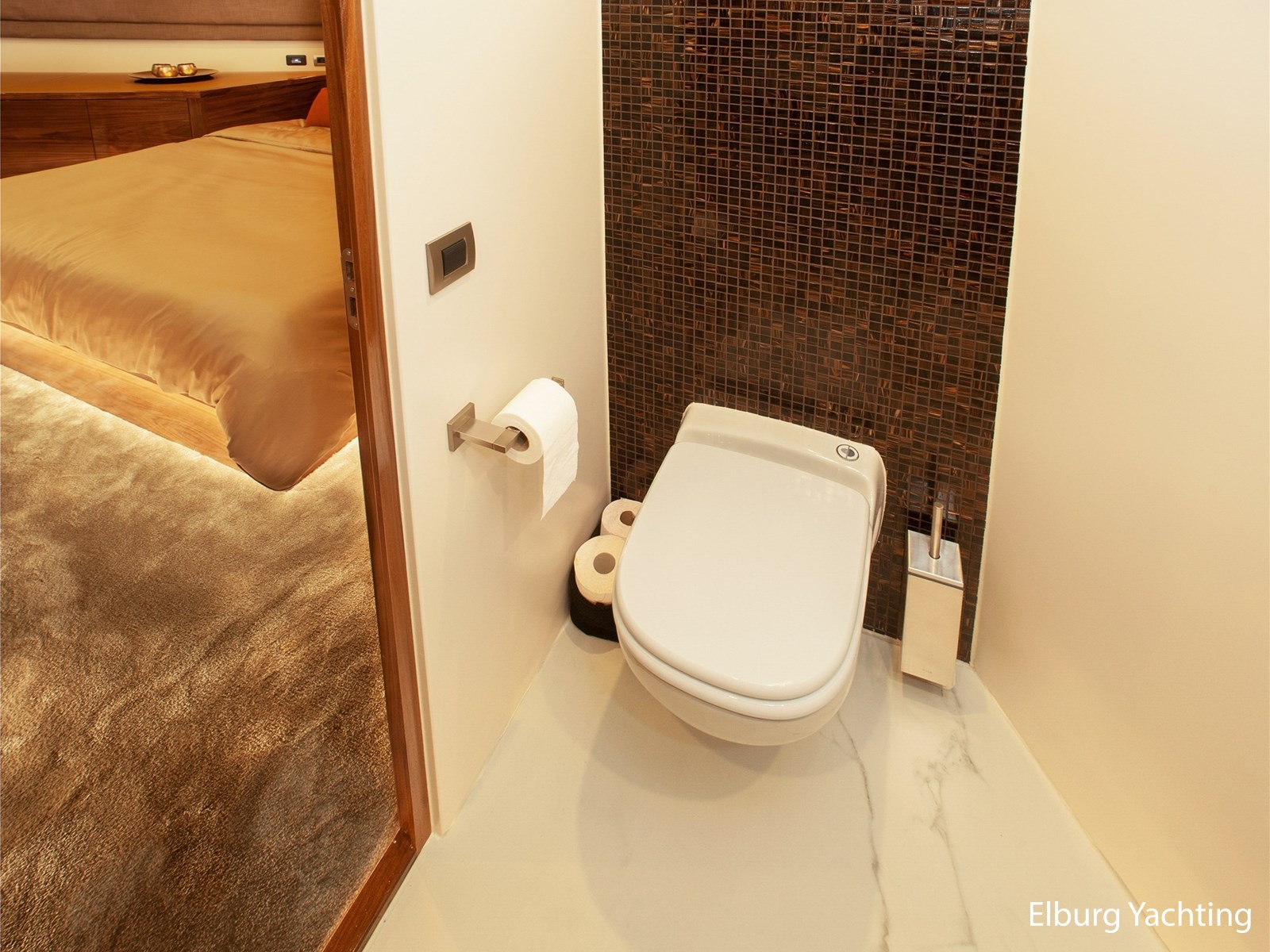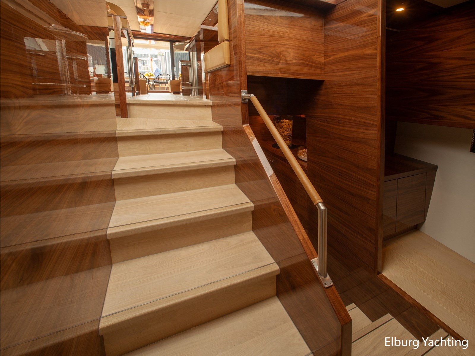 The deck-level saloon offers spectacular 360-degree views, enhancing the sense of space and light through the large windows. Wide sidedecks all around make it safe and easy to move around on a single level. The foredeck offers ample space for lounging, complete with a comfortable sofa for enjoying the view. The aft deck is also generously sized, with a semi-circular sofa for five people and a covered area providing shade on sunny days. Stylish stairs on both sides of the yacht lead to the spacious bathing platform, which also provides access to the professionally equipped engine room with good headroom. You'll enjoy a daily inspection here and see at one glance that all the technology is in working order. This vessel holds a valid CVO certificate.