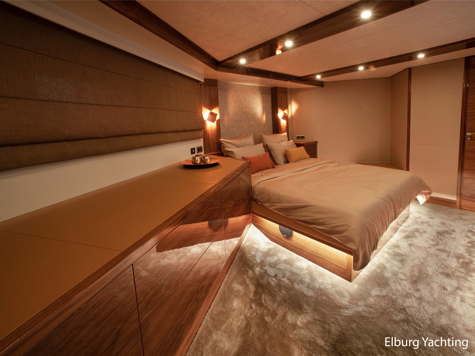 - 1 x 2 person freestanding bed a mid ship, possibility to create an extra bed in the front is possible on drawings