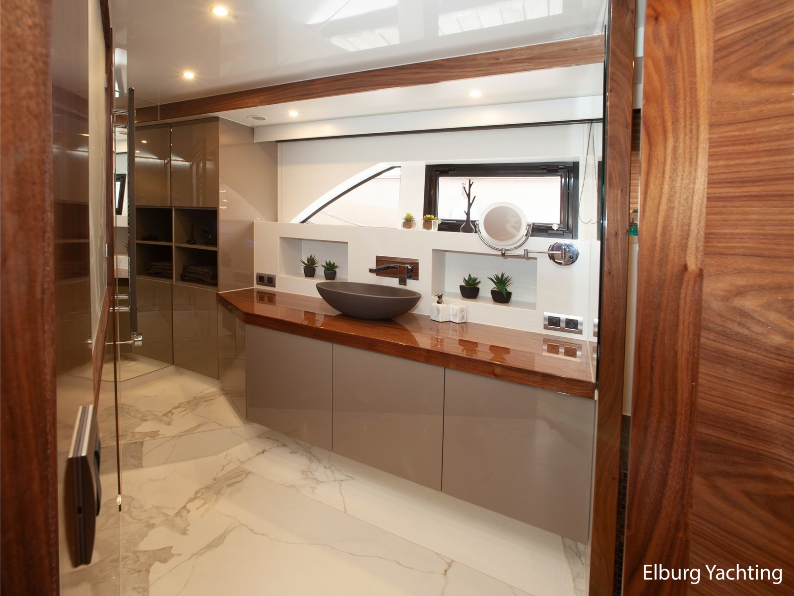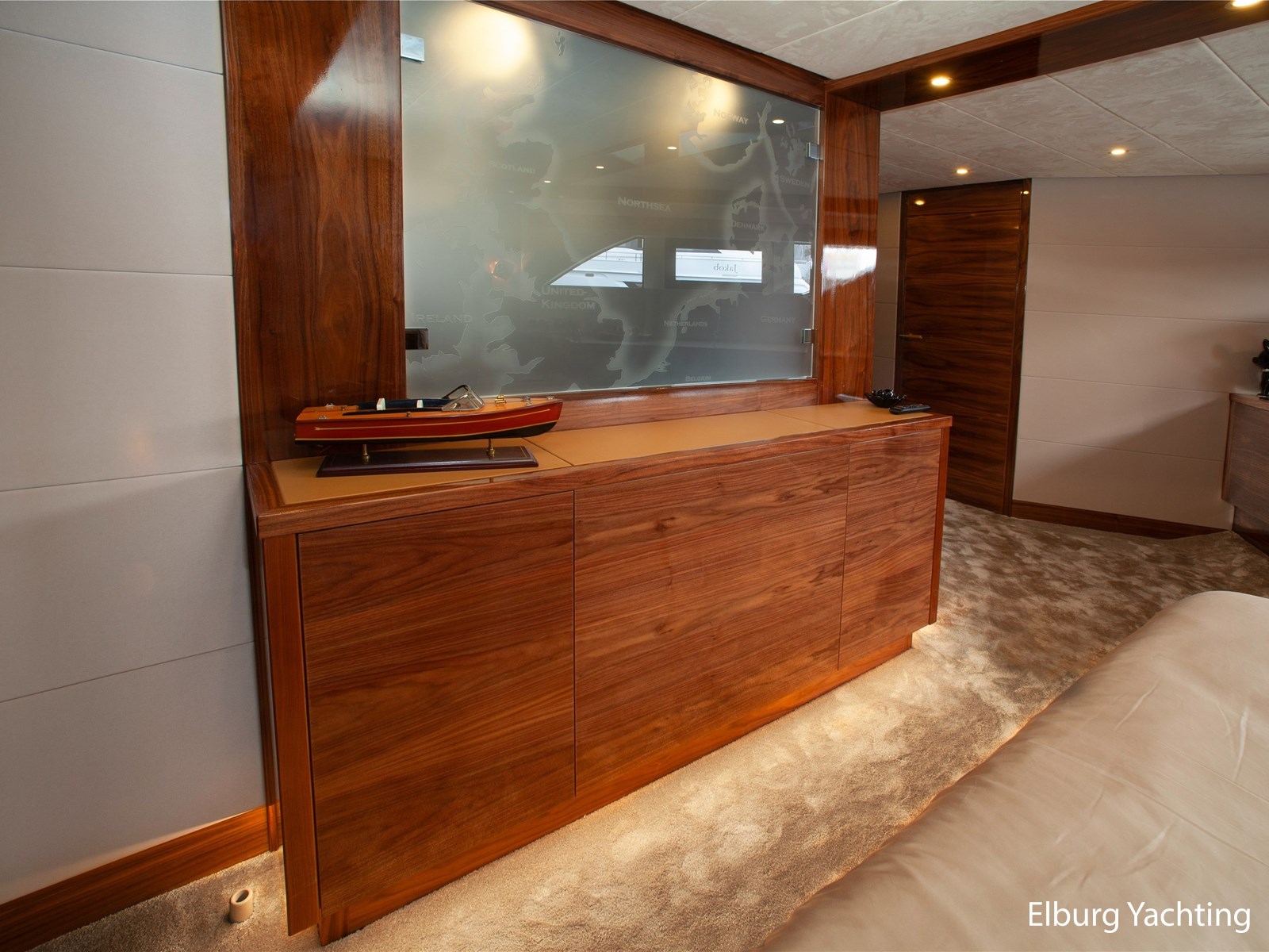 This Van den Hoven Executive 2100 is designed for those who want to enjoy long-term and comfortable stays on board. This yacht is build in 2019 features a single, very spacious master cabin amidships complete with a large walk-in closet and a full bathroom. The space in the forepeak currently serves as storage but is ready to be converted into a second bedroom if desired. In addition, a part of the walk-in closet can be converted into a third bedroom. Such requests can be discussed with the Van den Hoven shipyard.