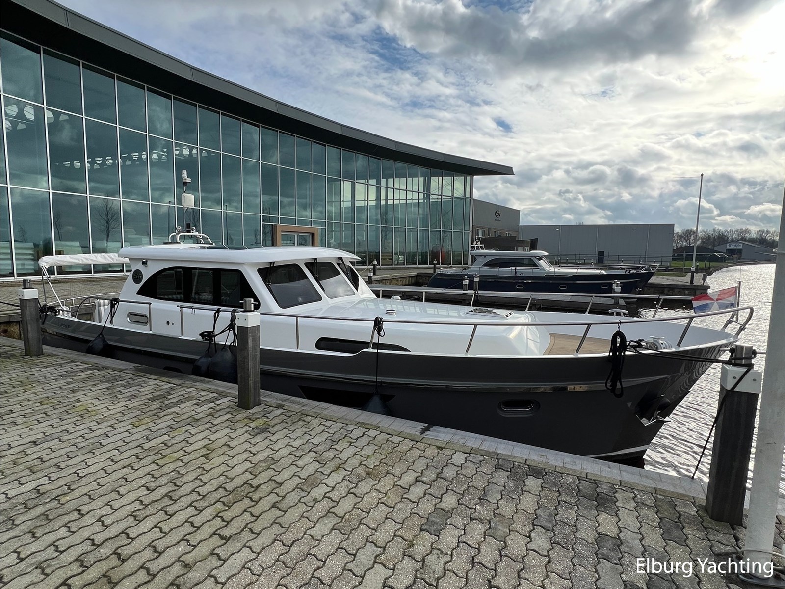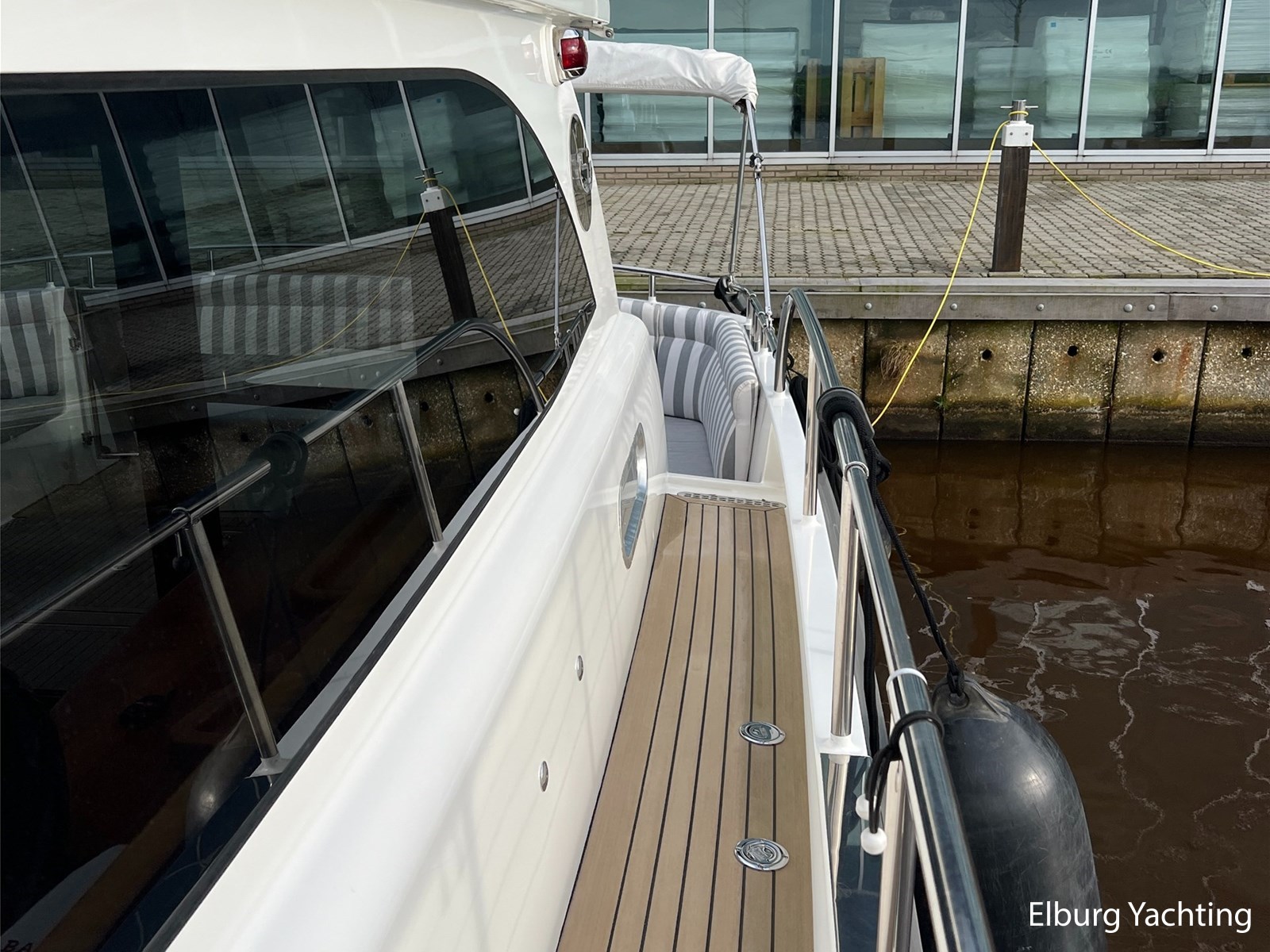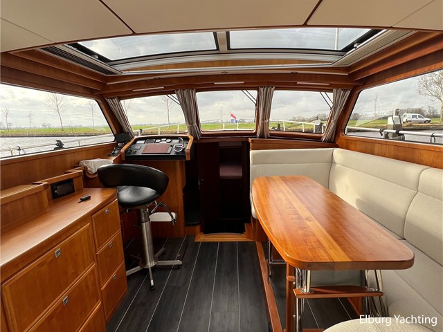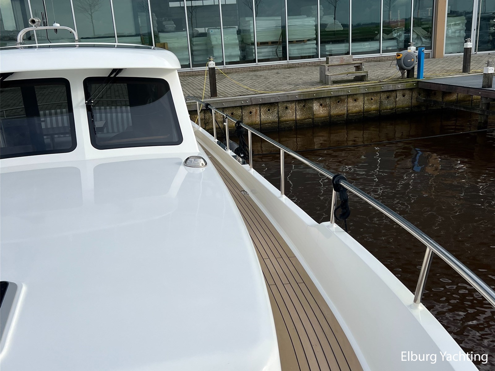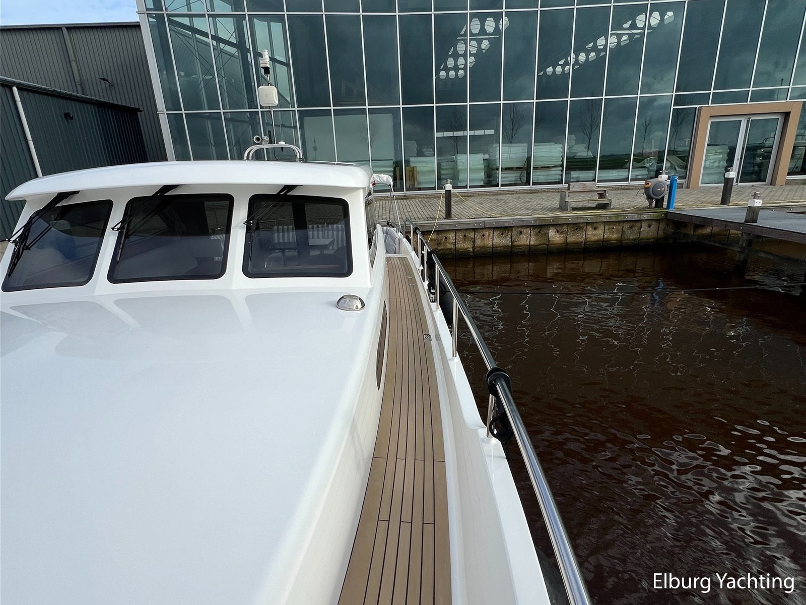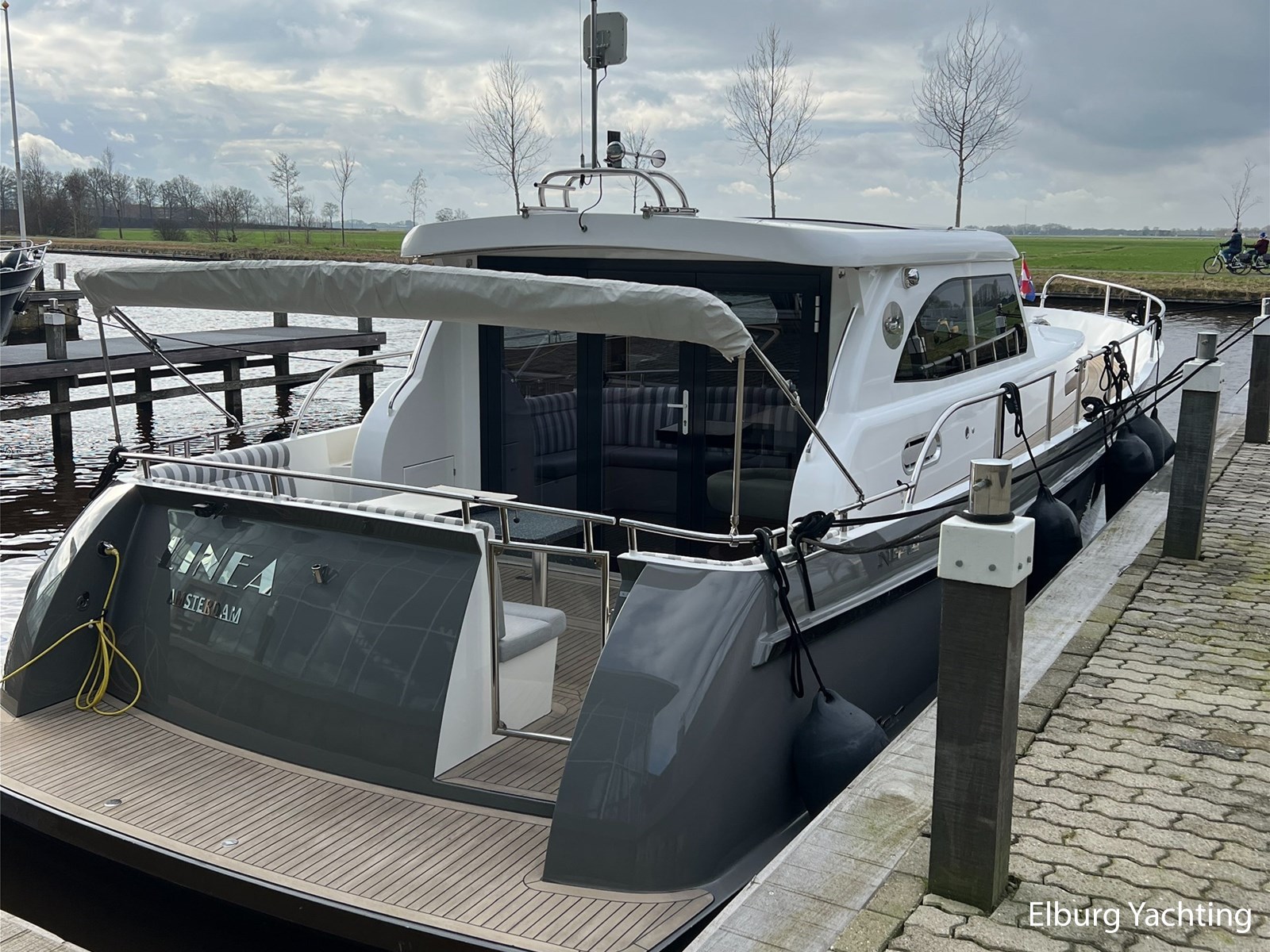 Beautifully lined Steeler NG40 built in 2013 by the renowned Steeler Yachts yard in Steenwijk. This timeless model is known for its comfortable open cockpit with the ground-level passage to the saloon + wheelhouse. All around, the yacht is fitted with a luxurious stainless steel sea railing. The cockpit floor, the integrated swimming platform, the spacious gangways and the foredeck are fitted with a Flexiteek deck. Inside, a chic wooden interior has been chosen in combination with a dark marine floor with light upholstery, this choice creates contrast in the interior. The yacht is equipped with a Follow-up steering system, preparation for the possible installation of a steering wheel has been made. Further forward in the yacht, the galley with Corian worktop is situated on the port side, guest cabin and wet room are placed to starboard and the owner's cabin is located at the front of the spacious yacht. The large windows + electrically opening roof hatch in the yacht provide plenty of natural light on board. Furthermore, the yacht comes with, among other things, Siemens wash/dry combination (under the stairs to the galley), TV lift built-in with remote control, Digitenne connected to the TV, wine cooler, alumium window frames, portholes with mosquito screen, r. v.s. deck ventilation, r.v.s. folding mast, r.v.s. baffle plate for anchor with electric windlass, high-quality Awl Grip paint system, Bimini top over cockpit, generous cockpit table, spacious storage hatch in cockpit. For questions and/or to make an appointment, you are welcome 7 days a week at Elburg Yachting.